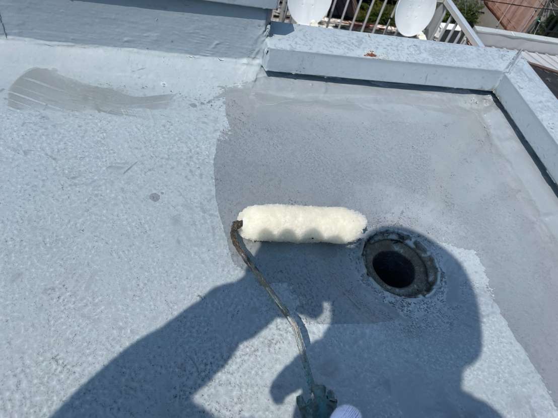 今日の作業も、引き続き防水作業を行っています。