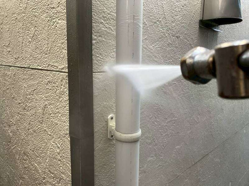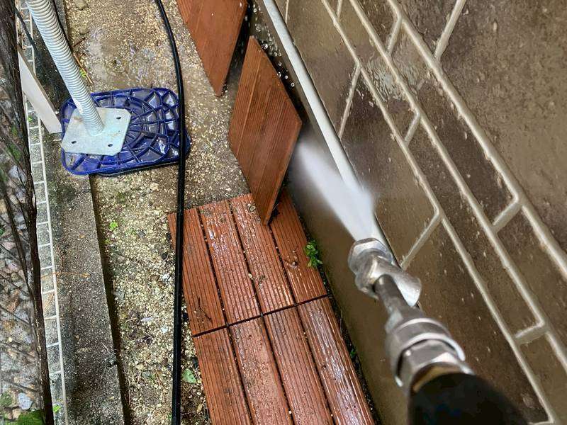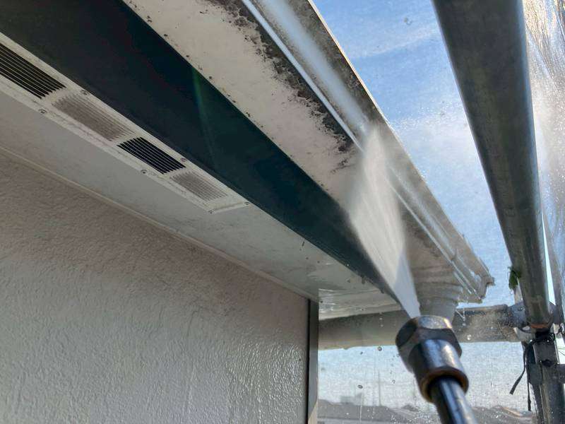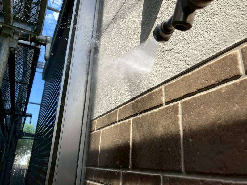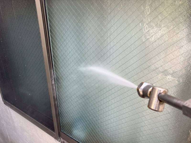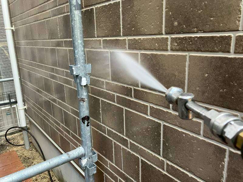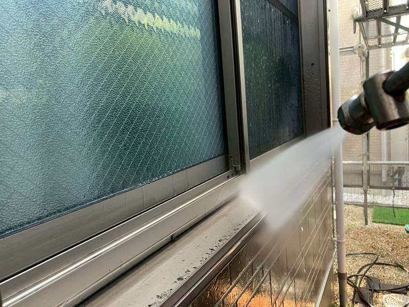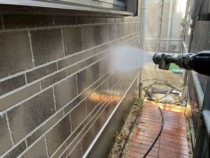 Y様邸は、今日までの作業で、仮設足場の組み立て・洗浄作業が完了しています。