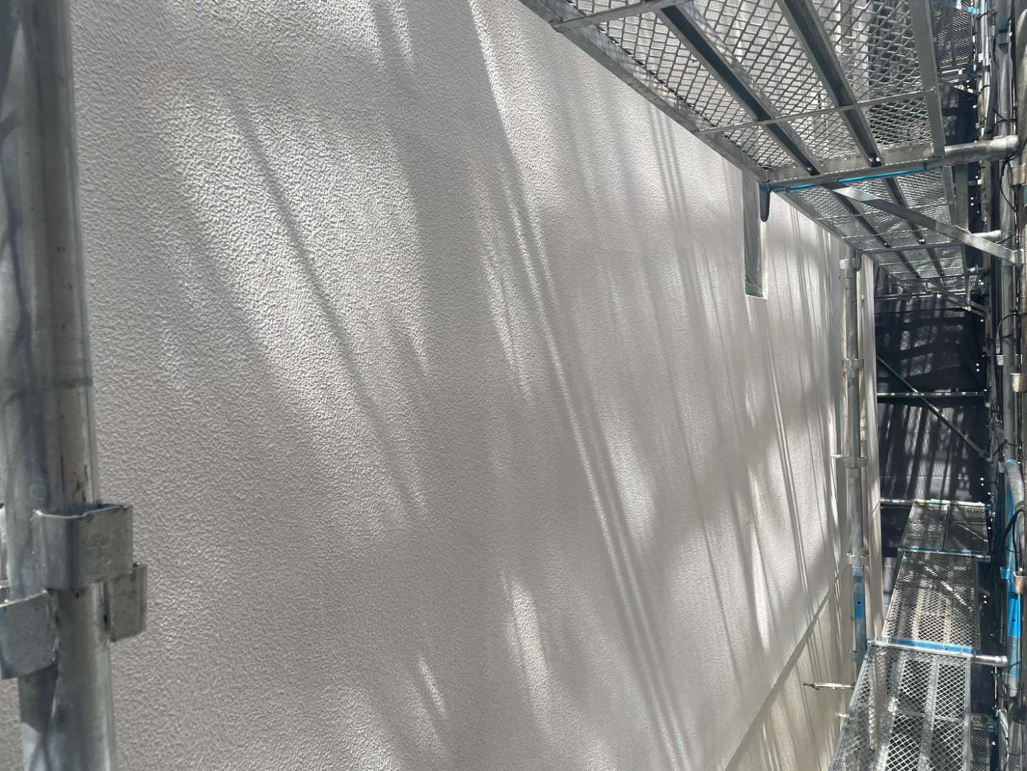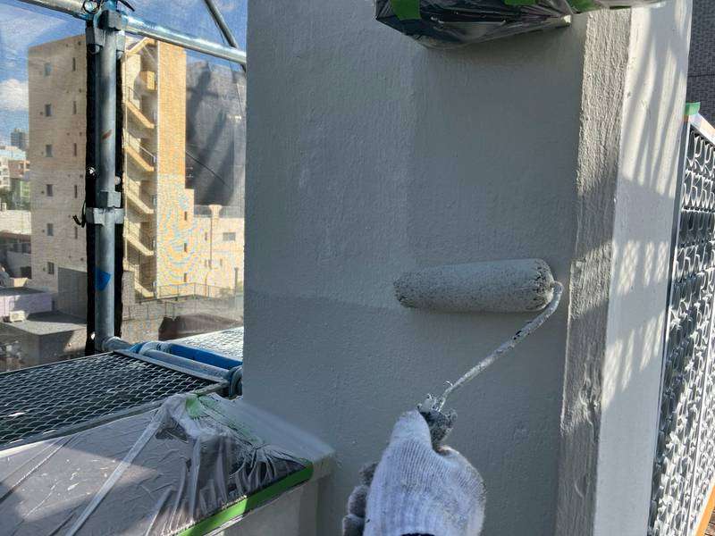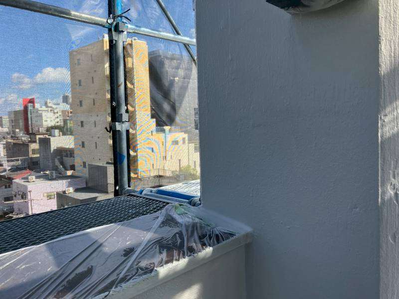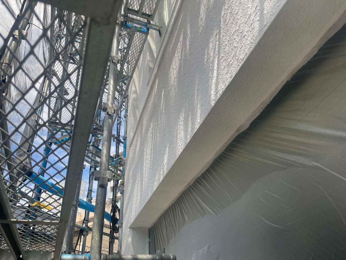 Jビル様の作業は、外壁の下塗り塗装・中塗り塗装作業を行っていました。
