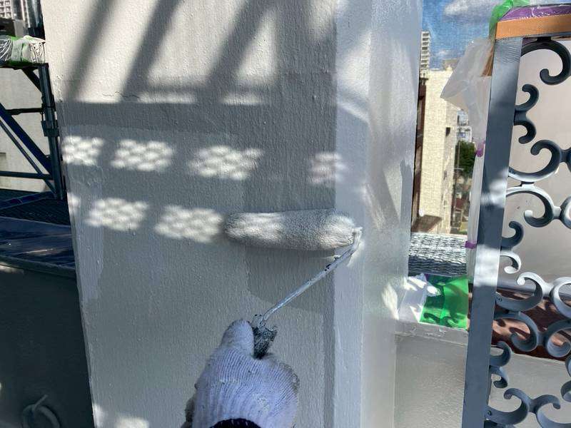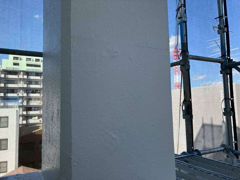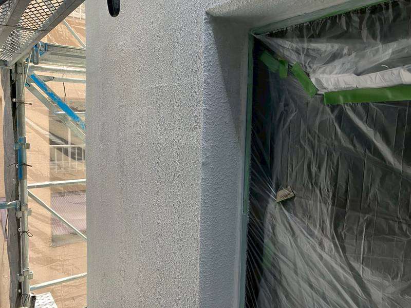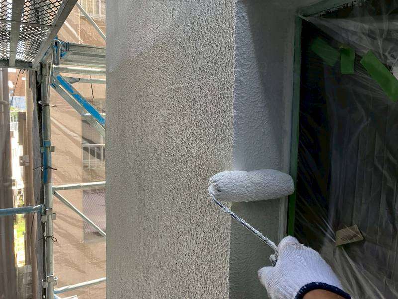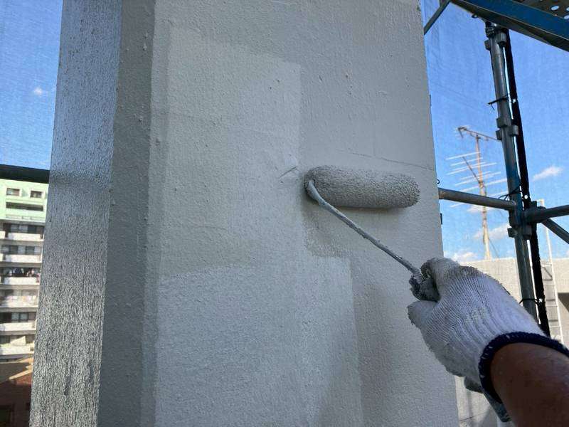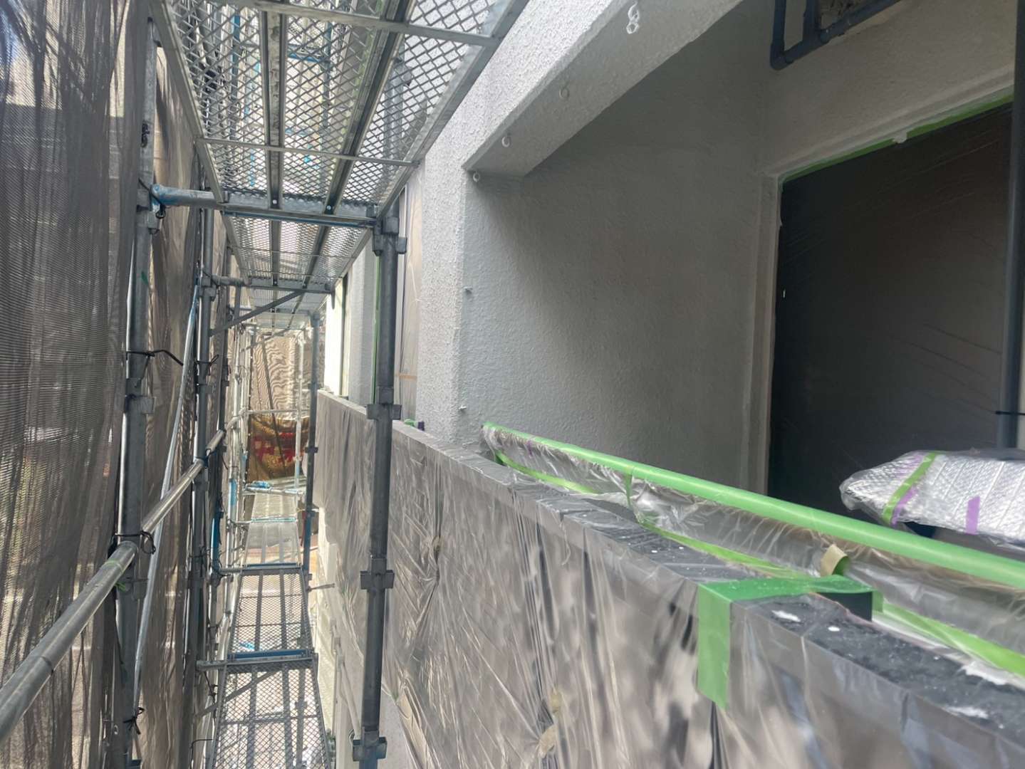 Jビル様の作業は、外壁の下塗り塗装・中塗り塗装作業を行っていました。