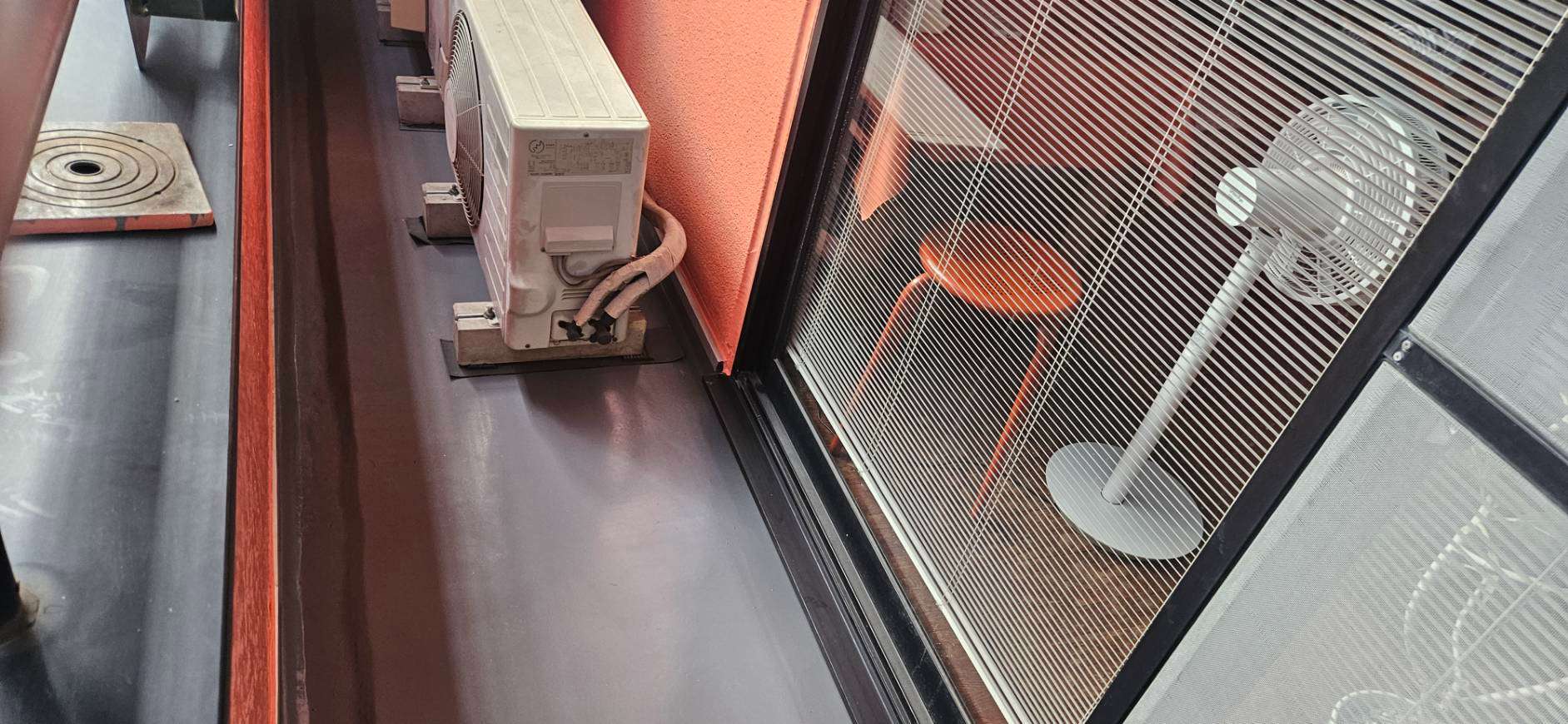 エアコン配管カバーを取り外して塗装、配線の補修作業も行っています。
