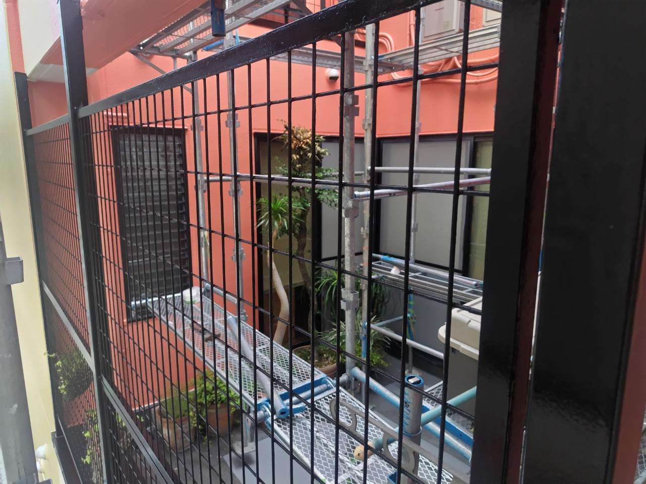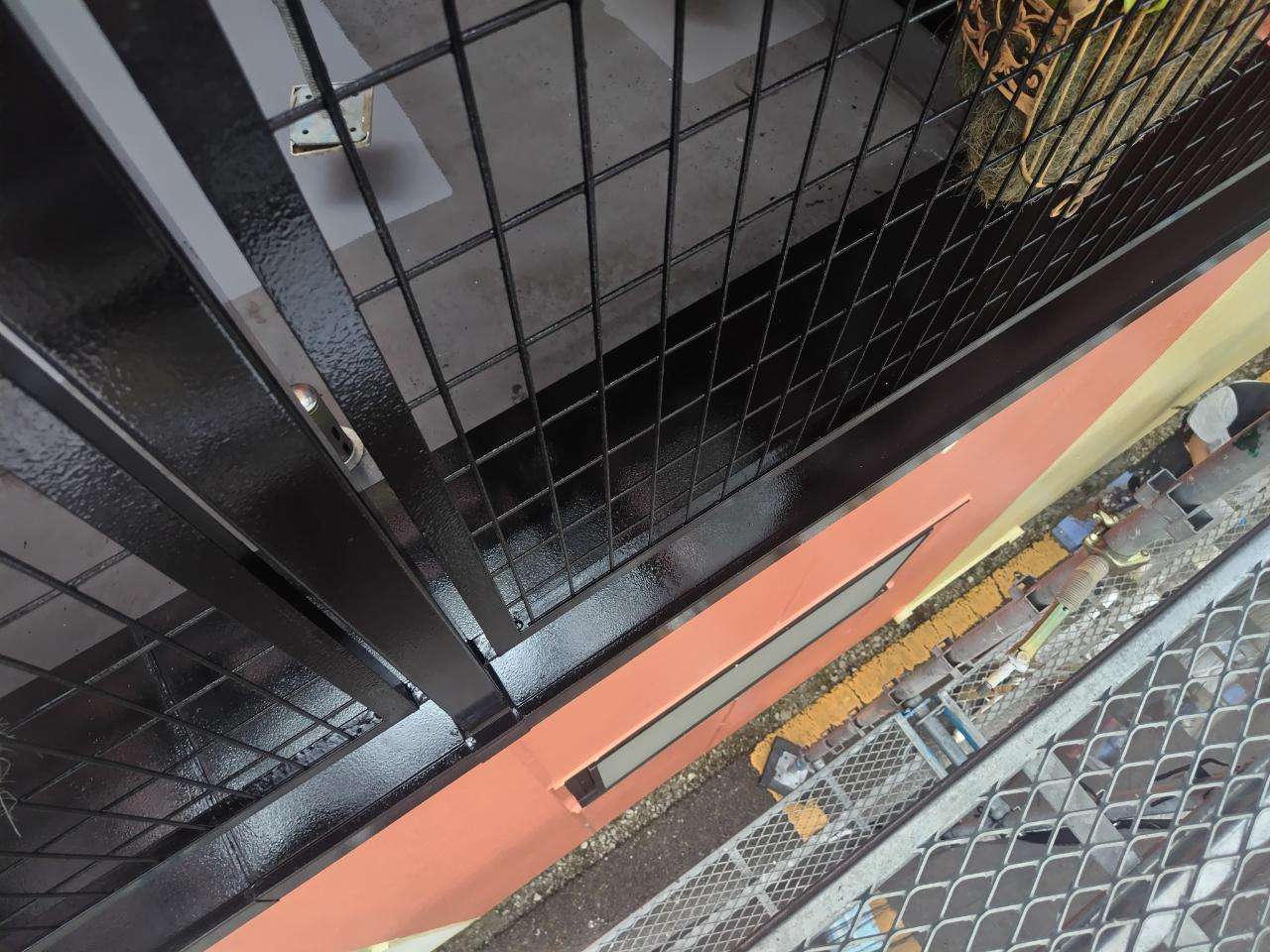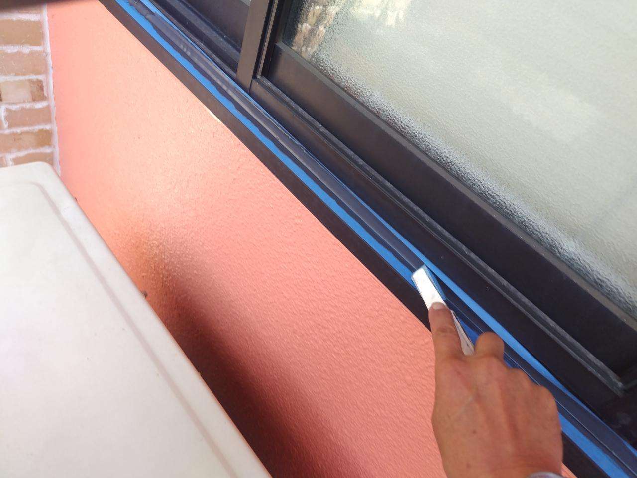 K様邸の昨日の作業は、面台部分のコーキング打替え・1F店舗の軒天1回目塗装・付帯部塗装のドア、フェンスの上塗り2回目塗装・ベランダのトップコート塗装・バルコニー部のプライマー塗装作業を行っていました。