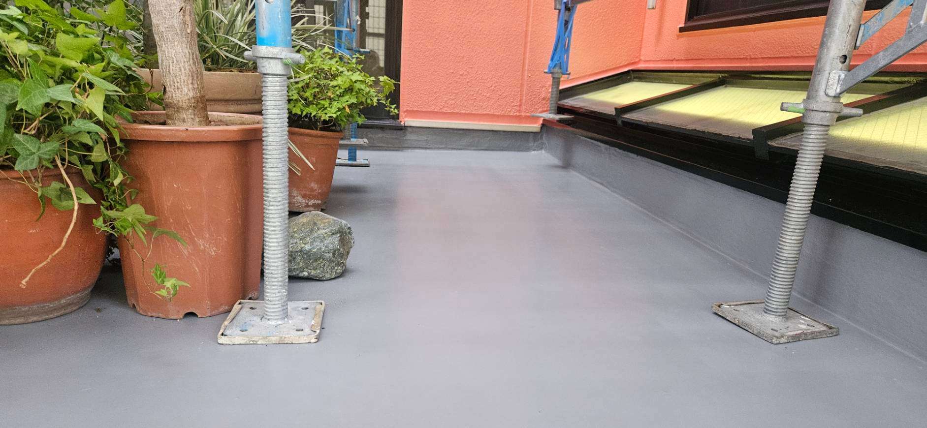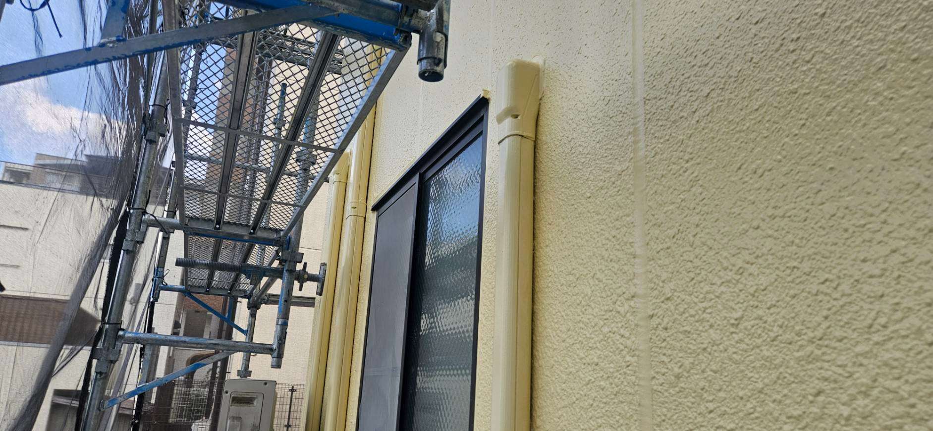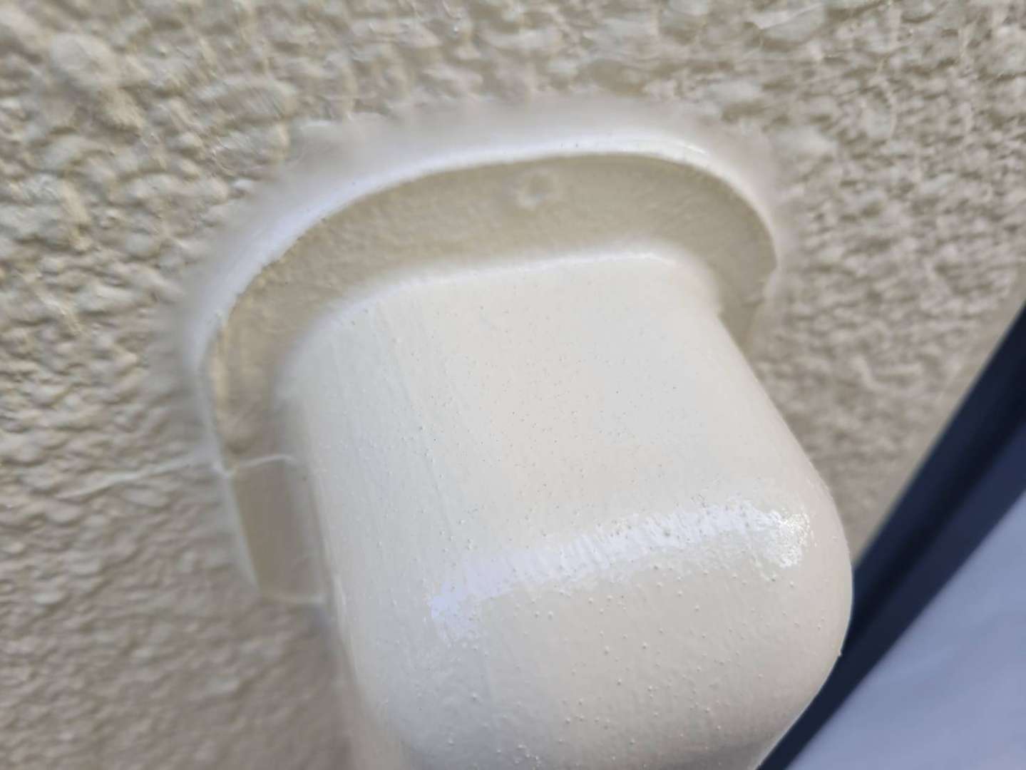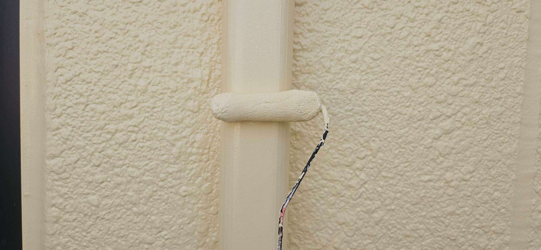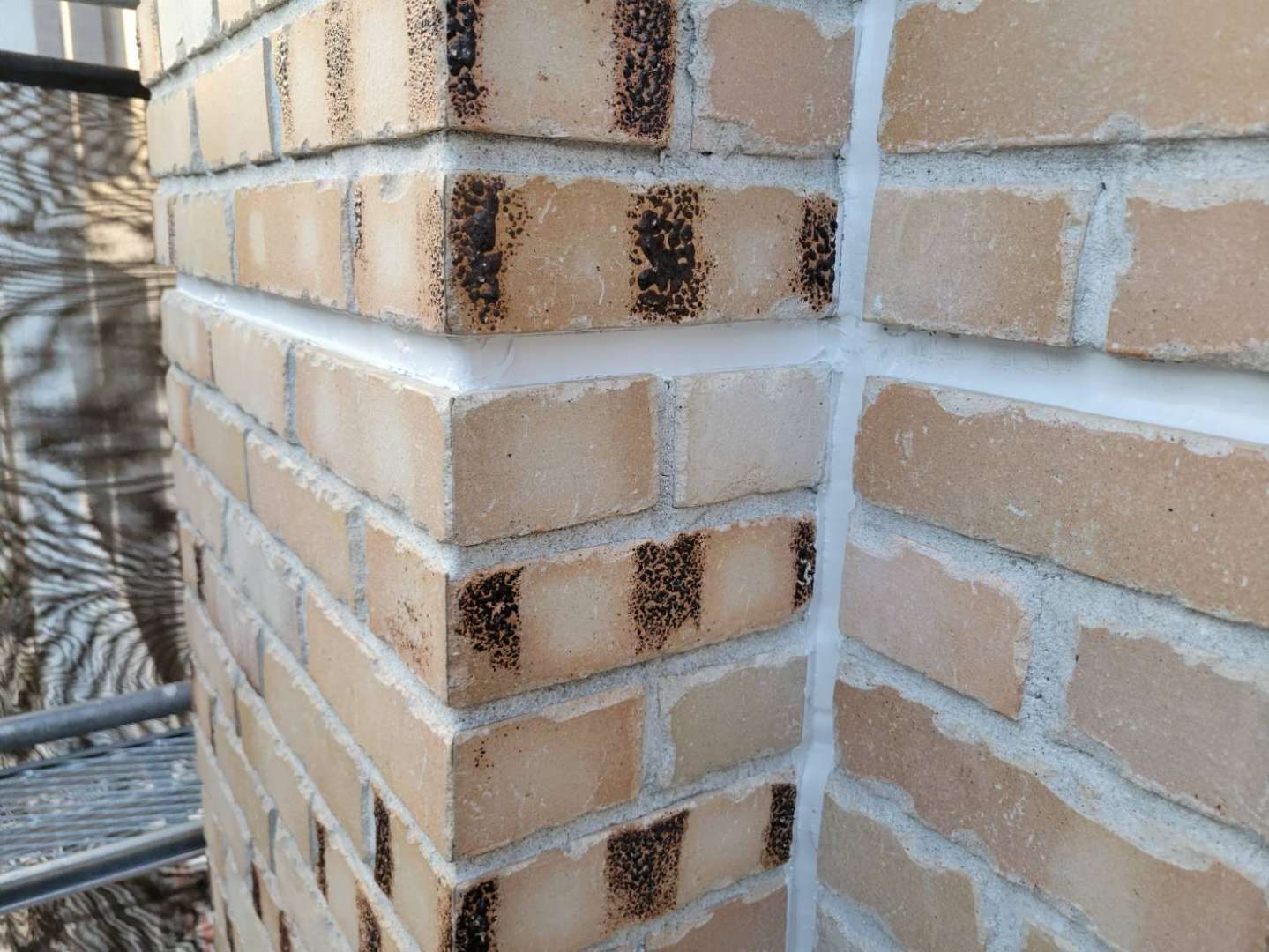 K様邸の昨日の作業は、タイル部のコーキング(シーリング)補修・付帯部塗装・アクセントカラー部塗装・バルコニーのトップコート塗装作業を行っていました。