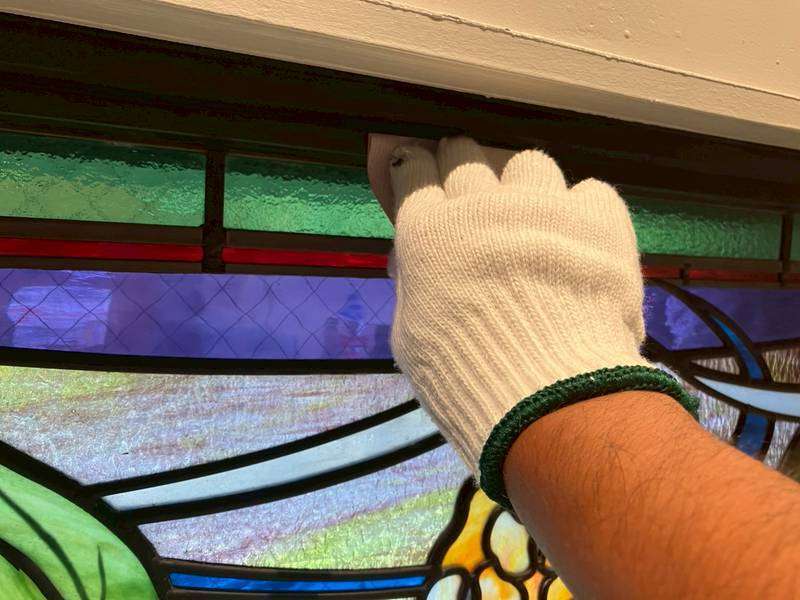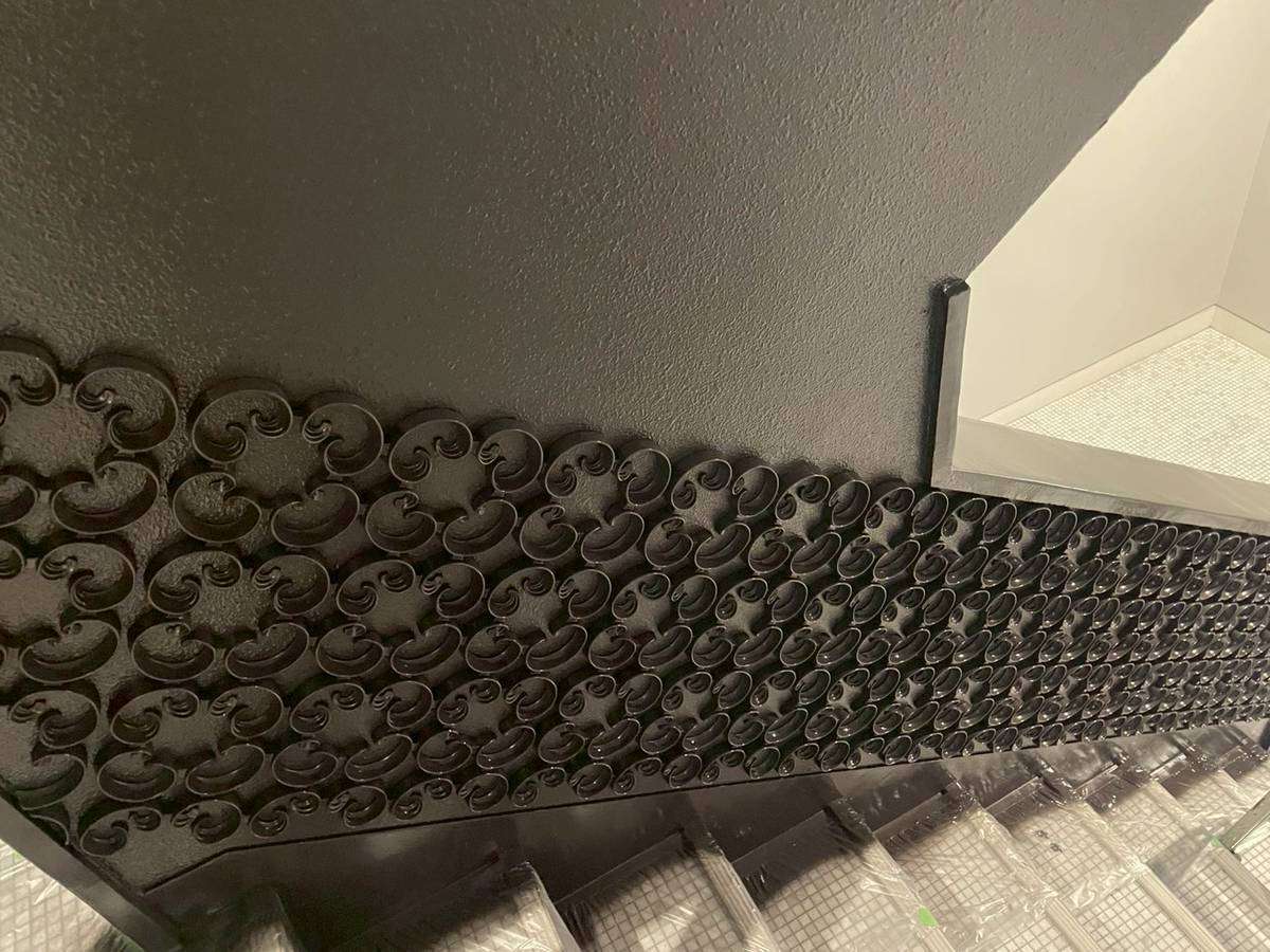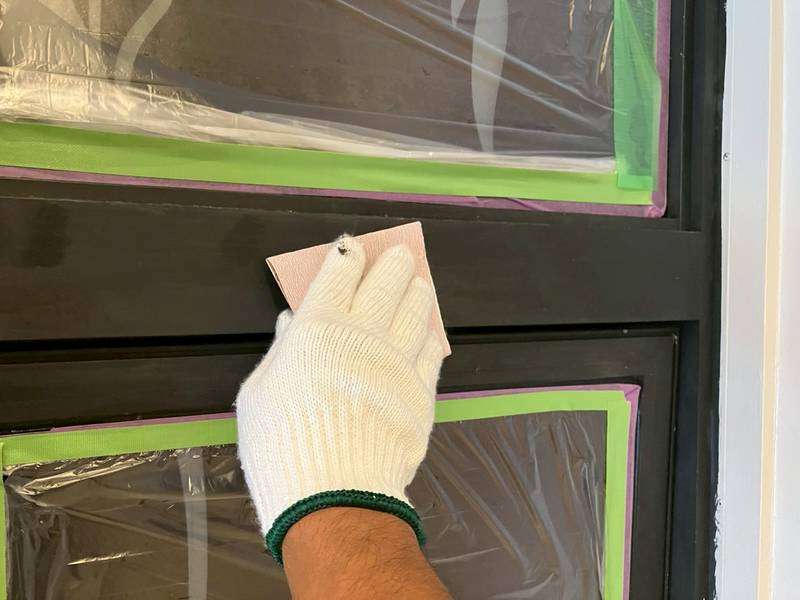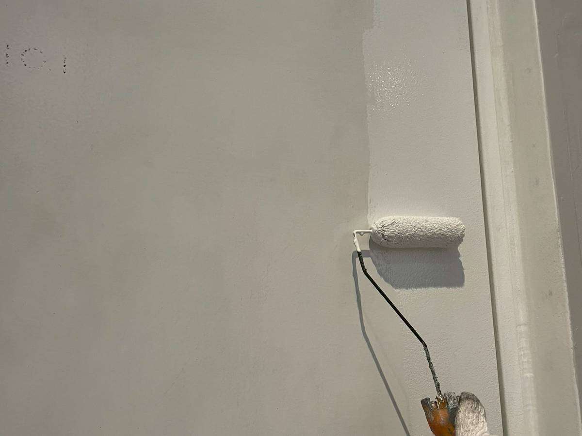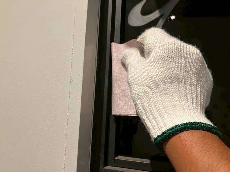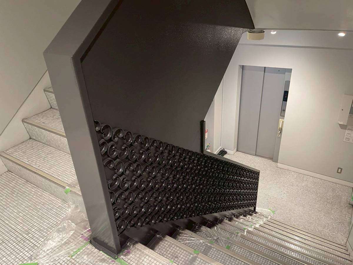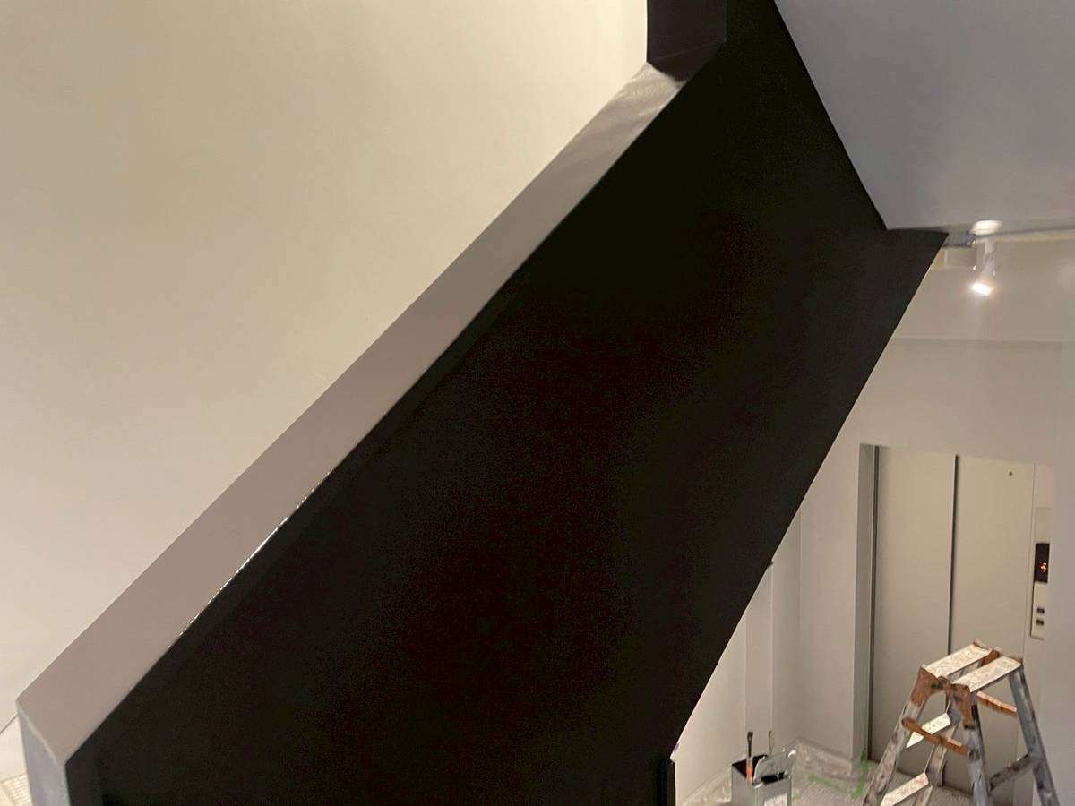 Jビル様の昨日までの作業内容は、階段室の窓枠のペーパー掛けと上塗り1回目塗装、階段室手すり、壁部の中塗り塗装、上塗り塗装、鉄扉のペーパー掛け、塗装作業を行っていました。