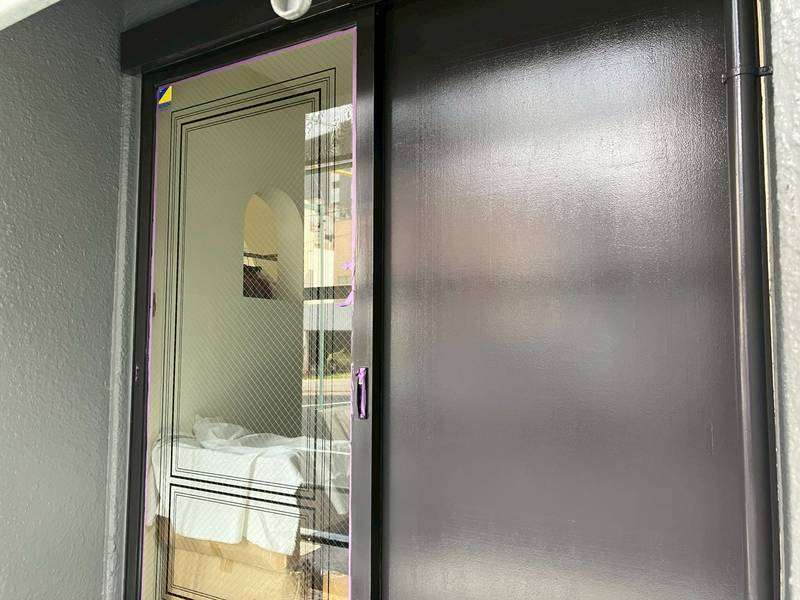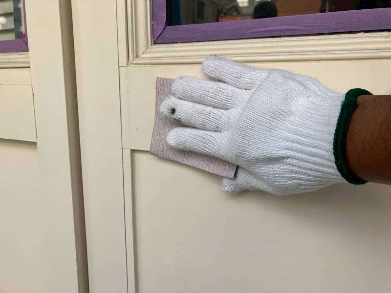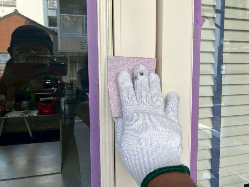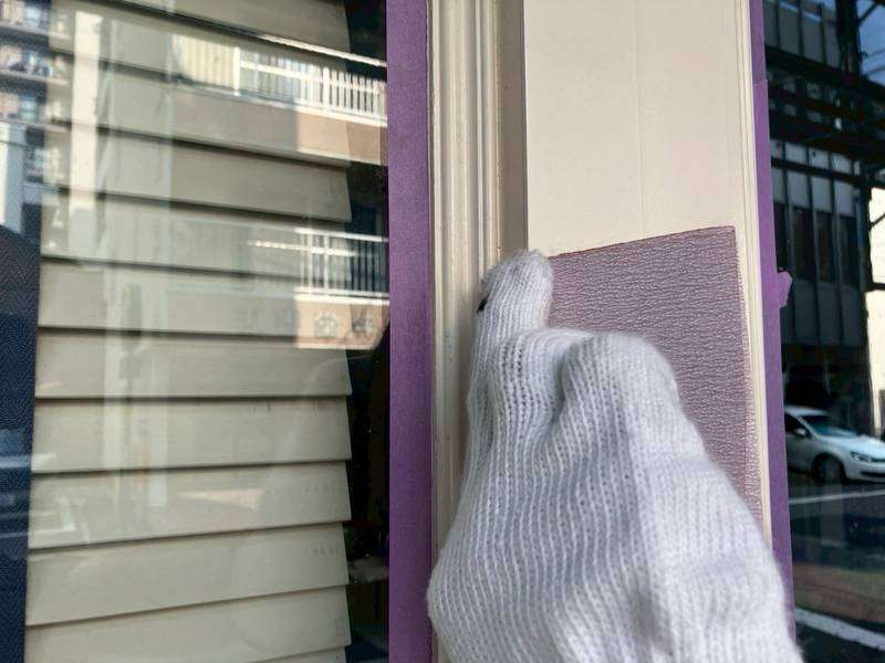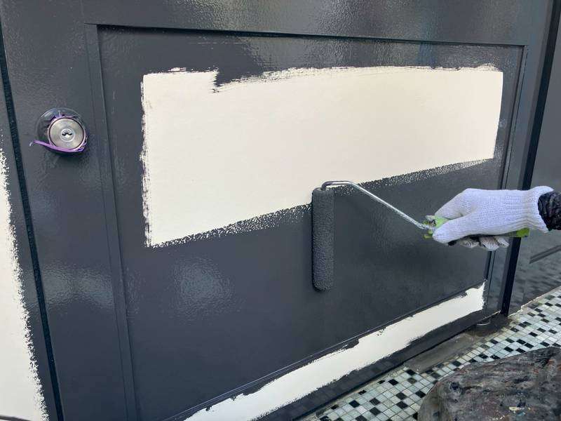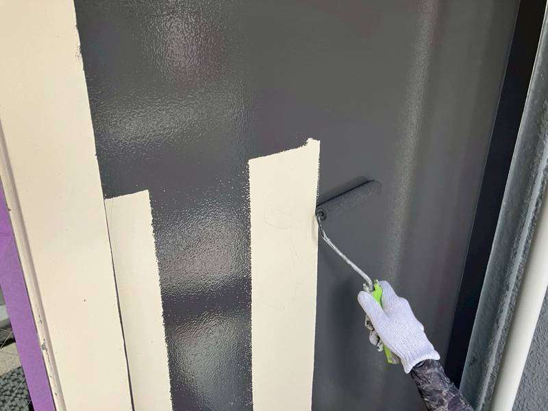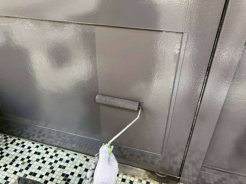 Jビル様の昨日の作業は、1階店舗のペーパー掛け・上塗り1回目・2回目塗装と