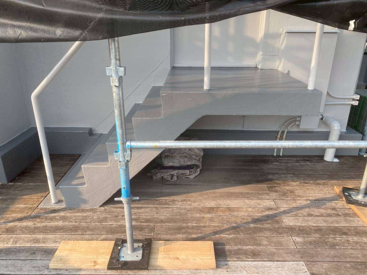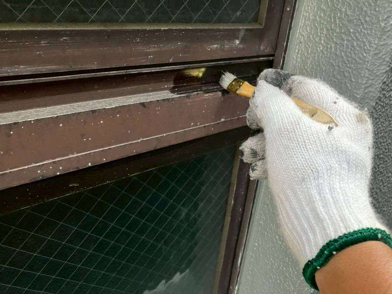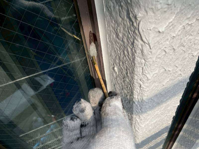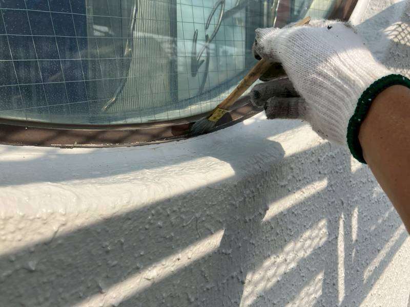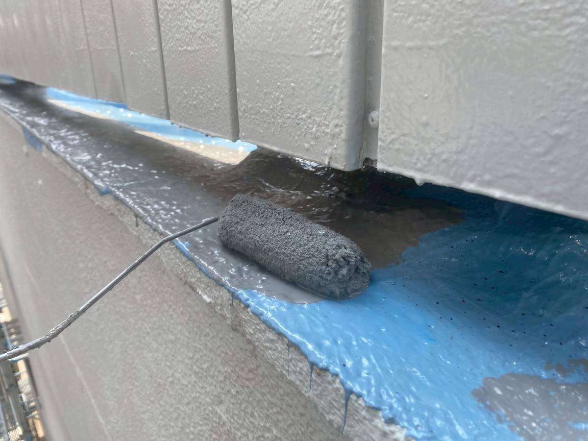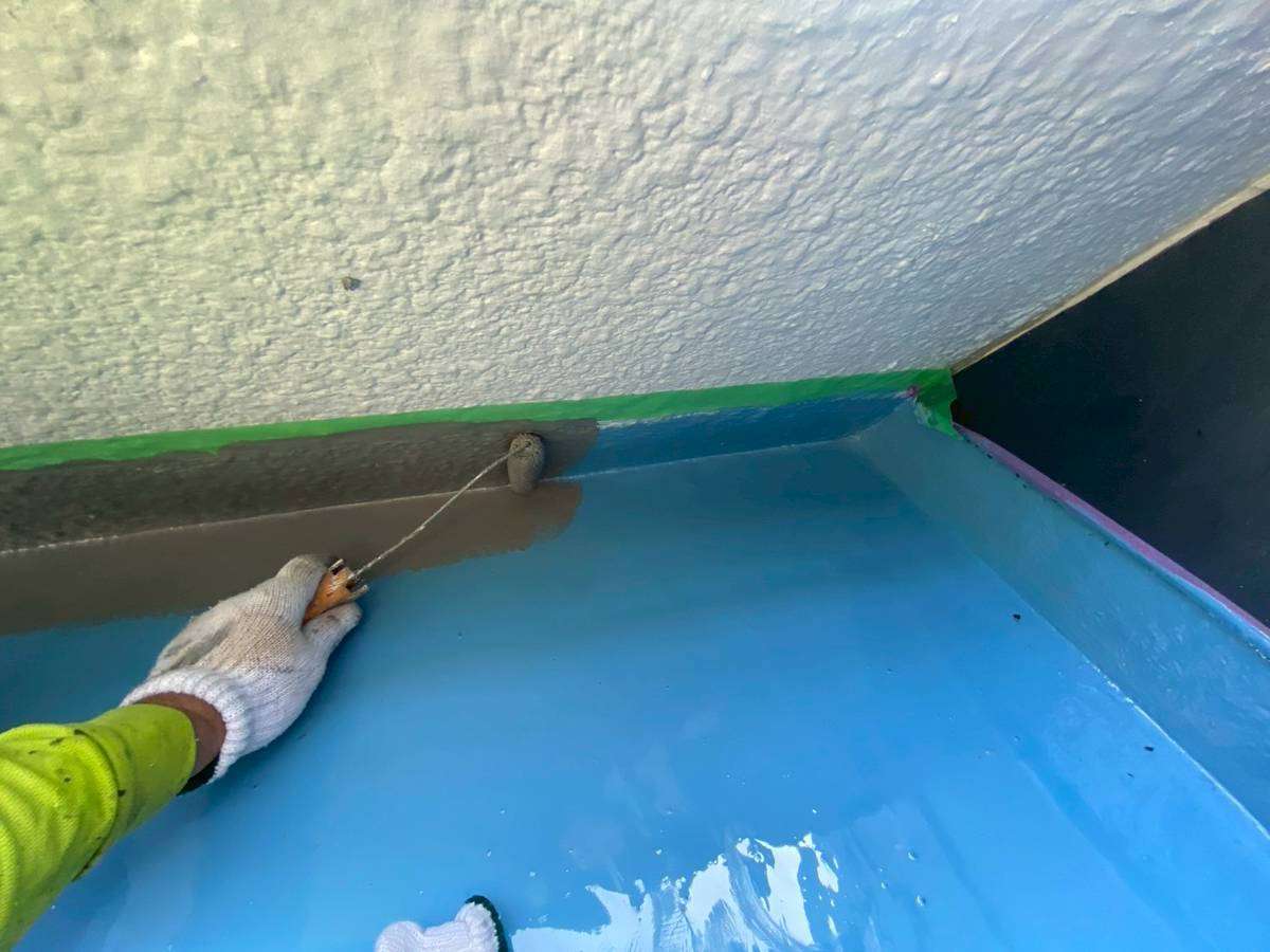 今日の作業は、引き続き付帯部塗装・防水作業を予定しています。