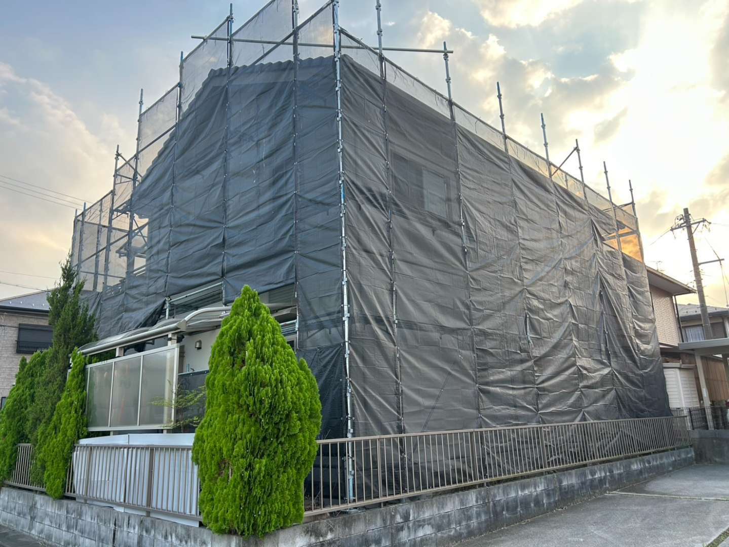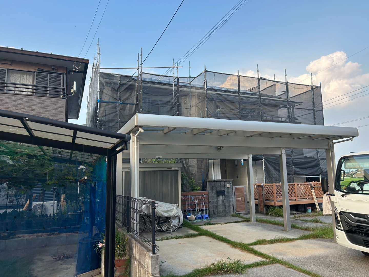 N様邸の昨日の作業は、架設足場の組立・設置作業を行いました。