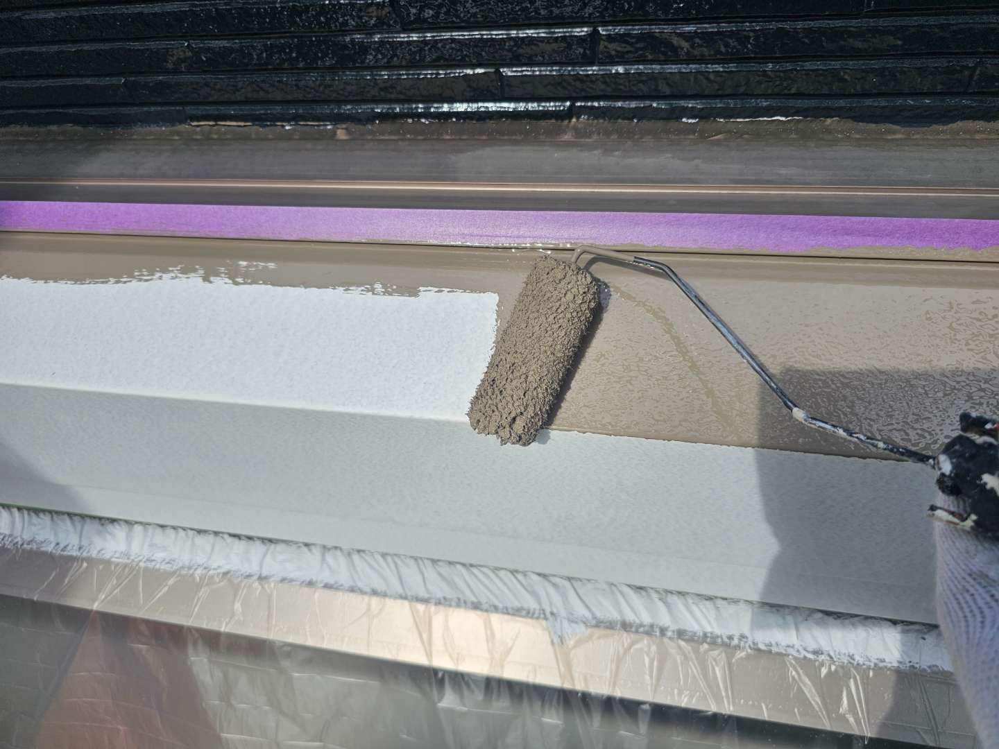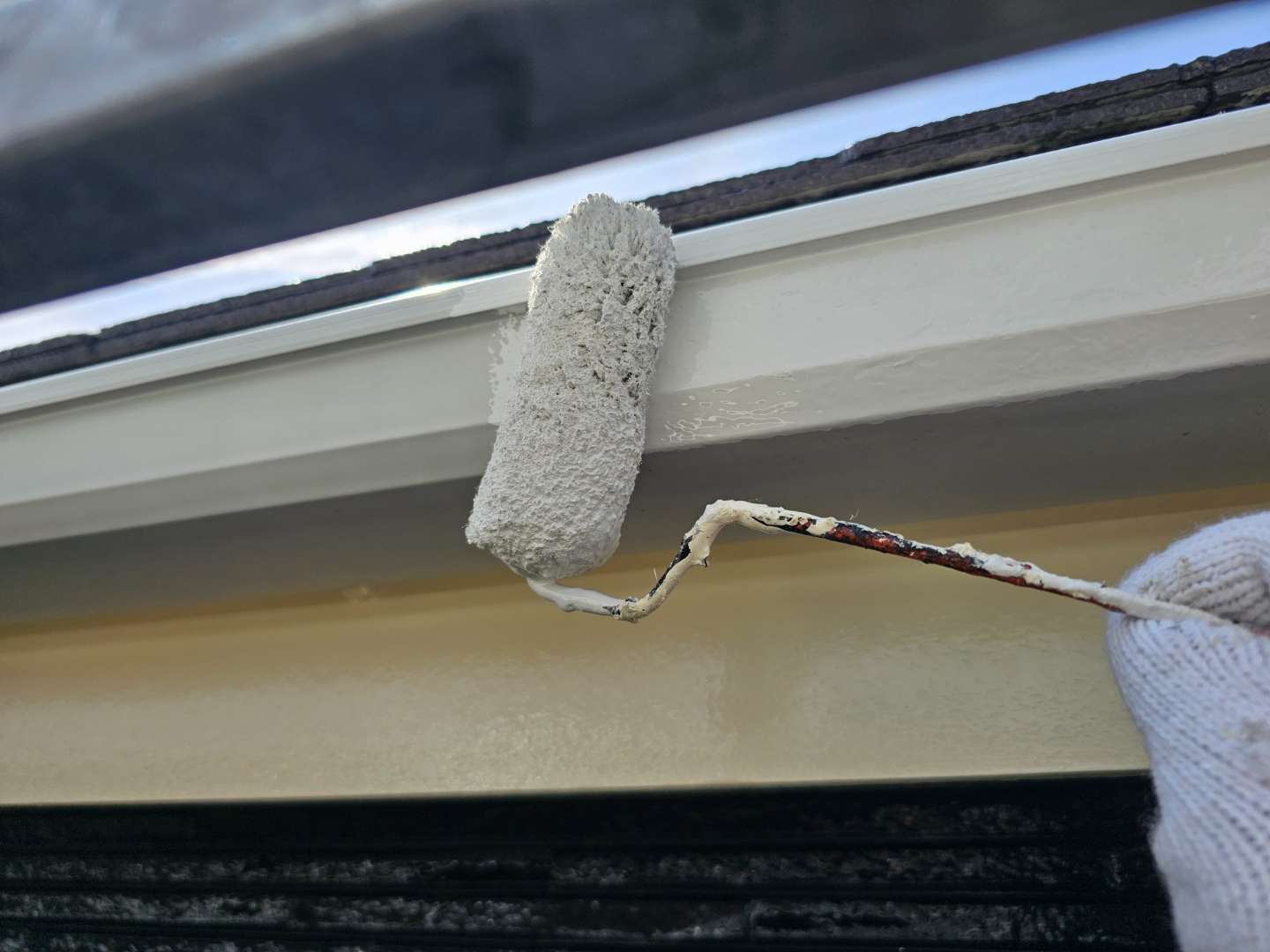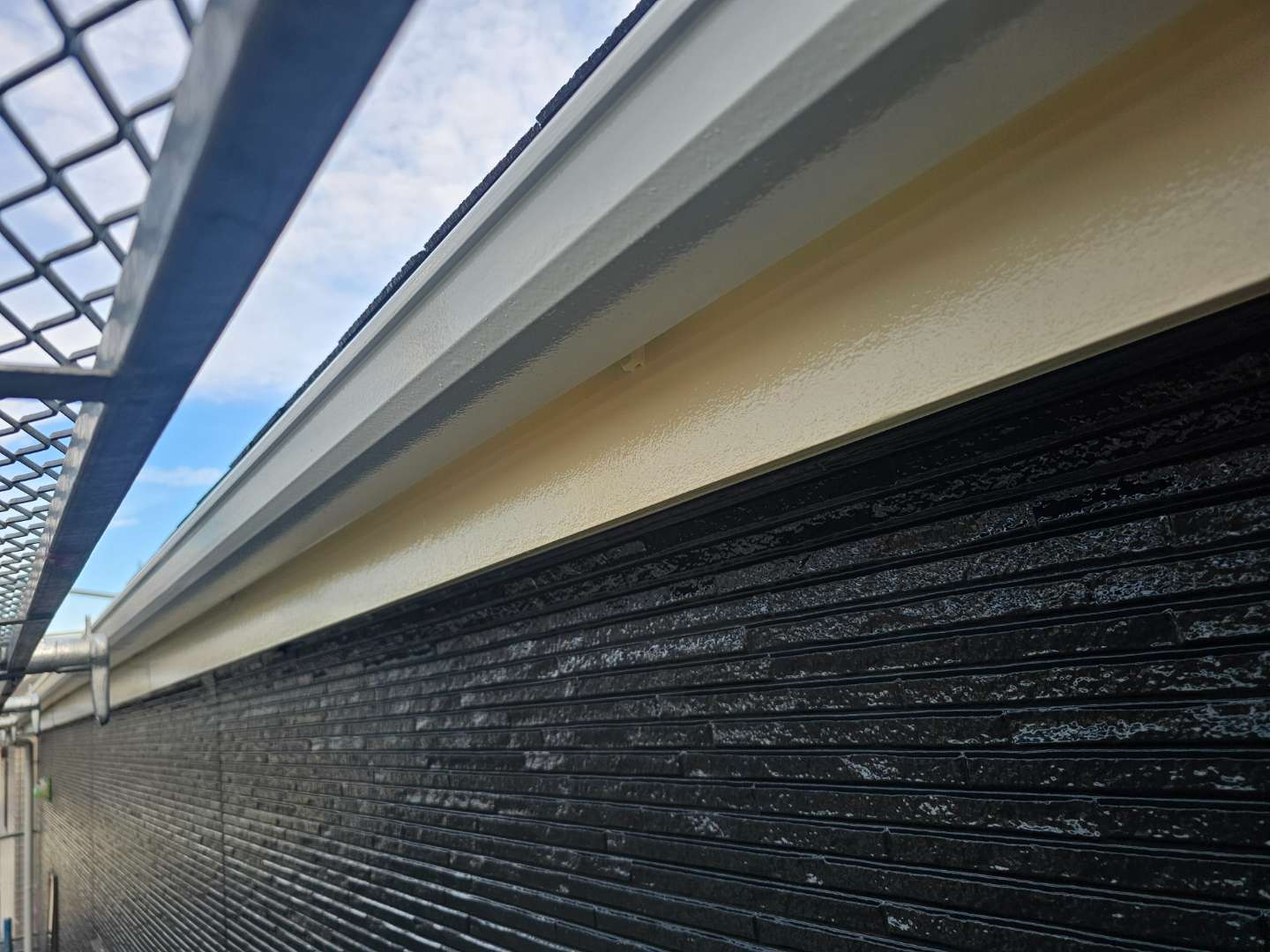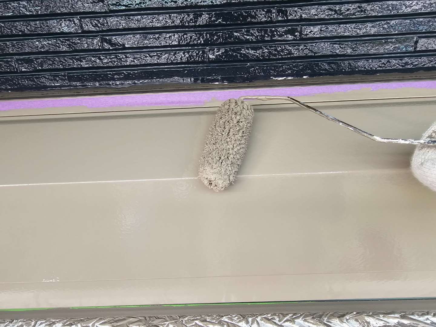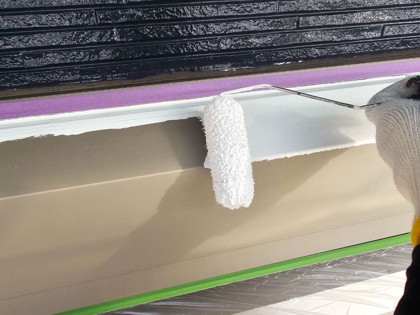 大垣市K様邸の昨日までの作業内容は、付帯部(雨樋・軒天換気口・シャッターボックス・水切り)の下塗り塗装、上塗り塗装1回目、2回目塗装作業を行っています。