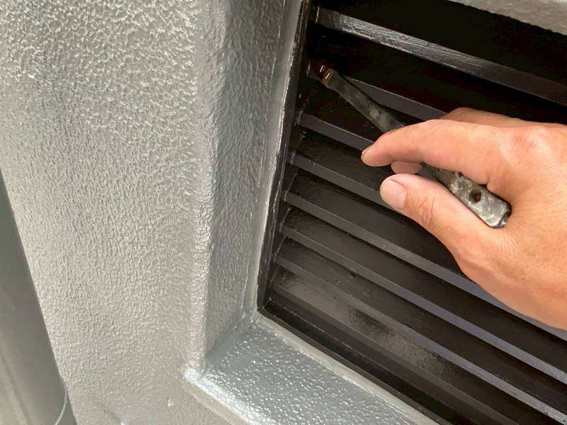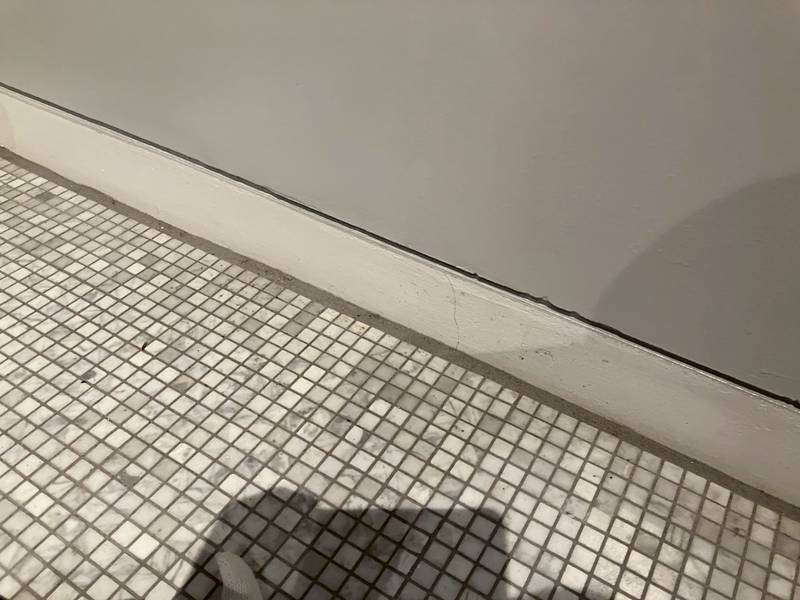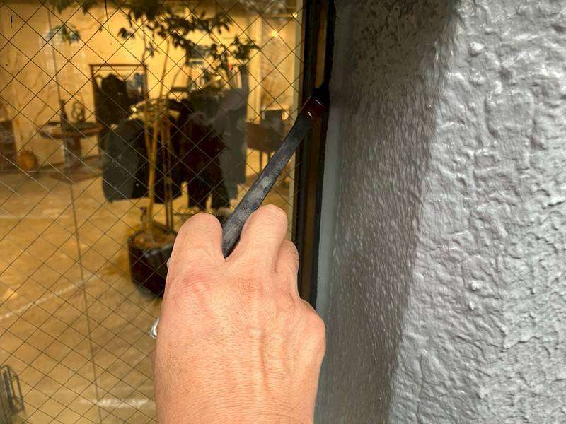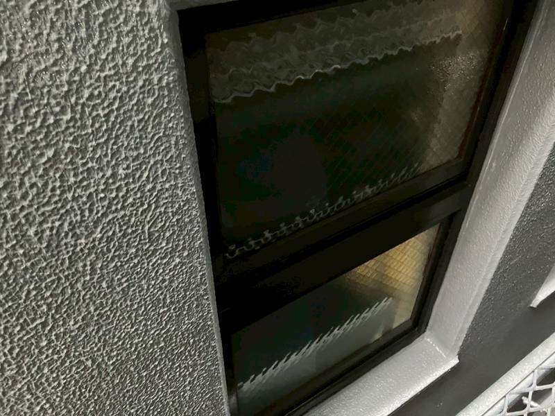 Jビル様の昨日の作業は、通路・階段の巾木の上塗り塗装と付帯部塗装で窓廻り・