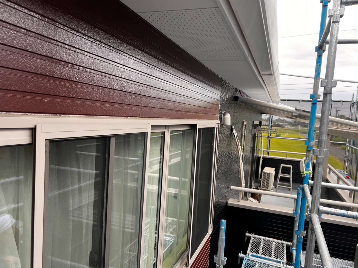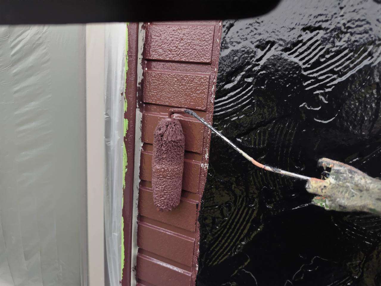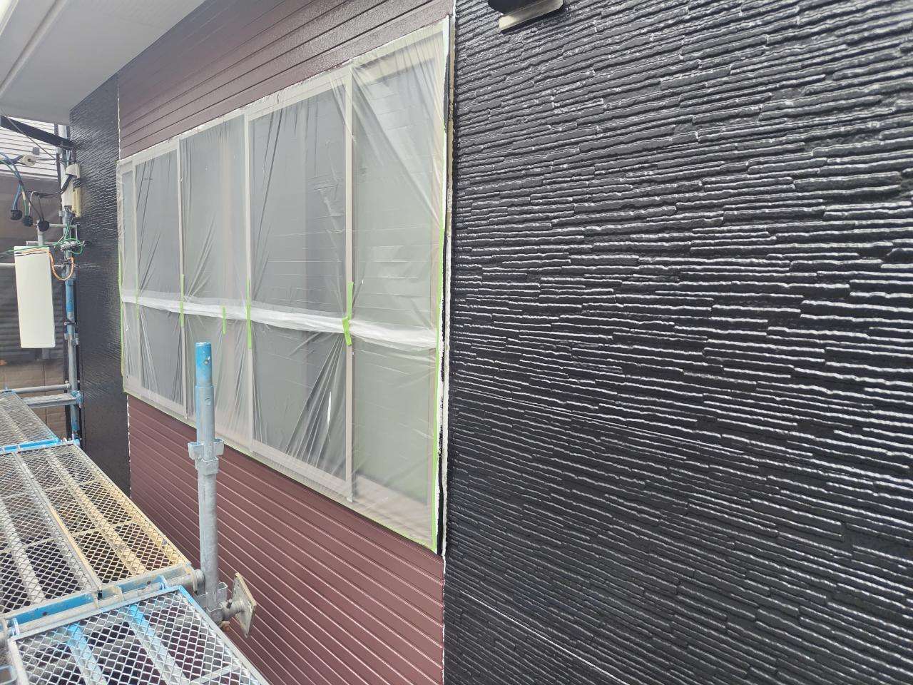 N様邸の昨日の作業は、外壁の上塗り塗装作業を行いました。