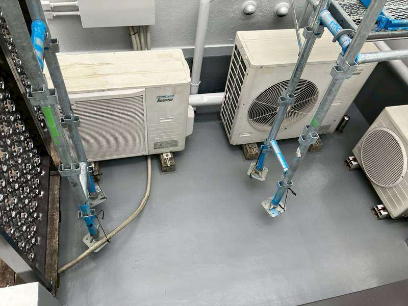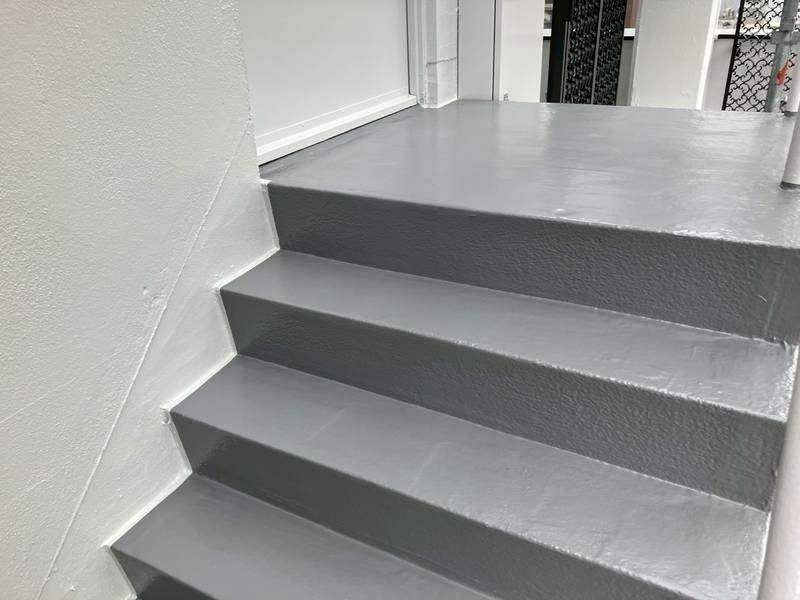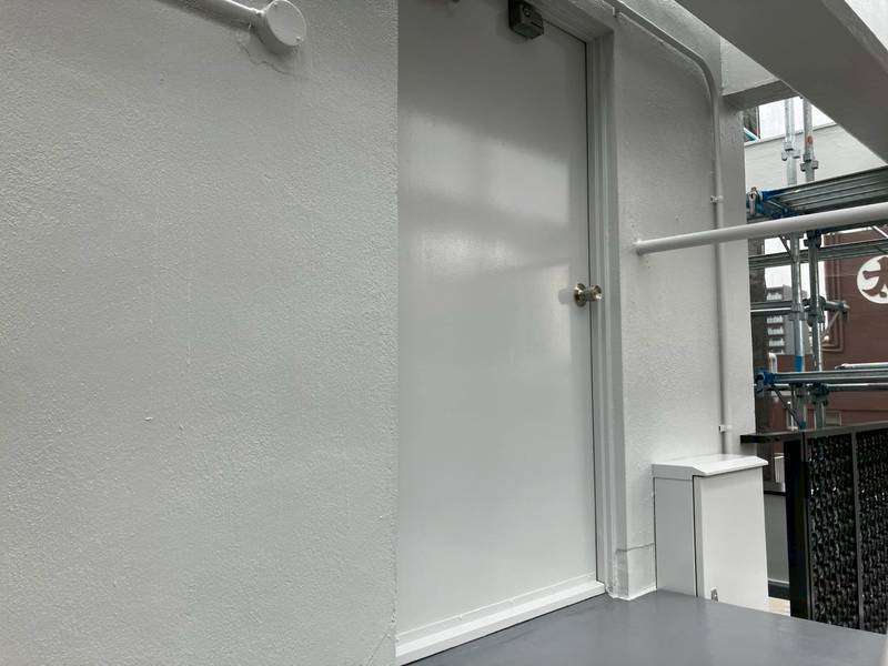Jビル様の昨日の作業は、1階店舗の色替え塗装・室内の天井塗装・ウッドデッキのケレン作業・塗装部の点検作業を行いました。