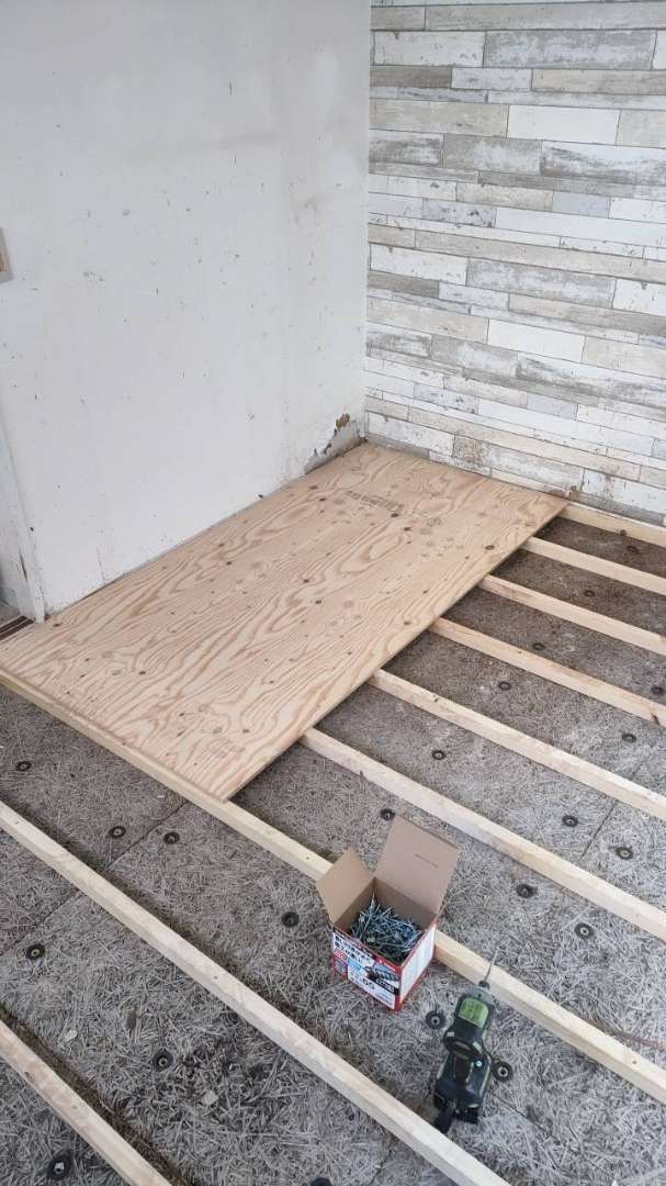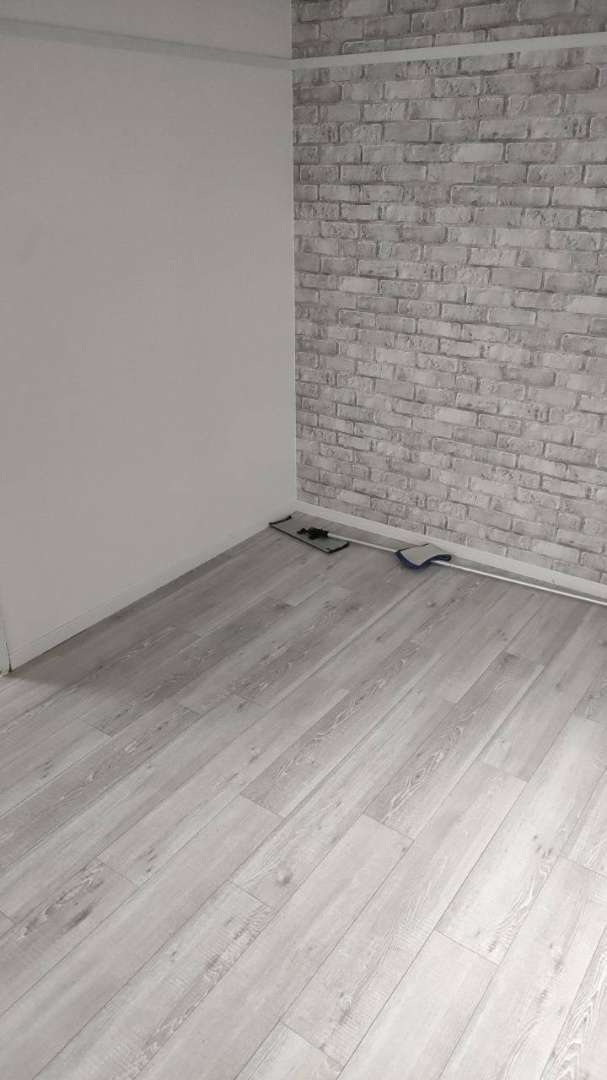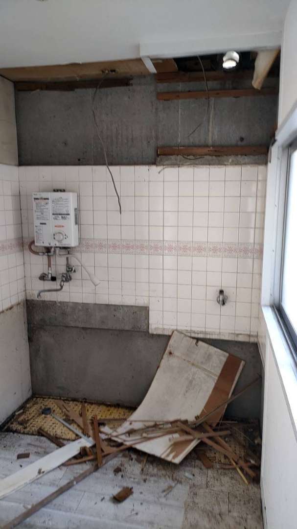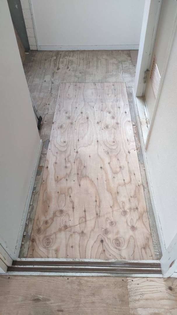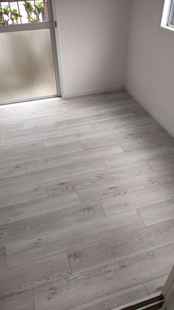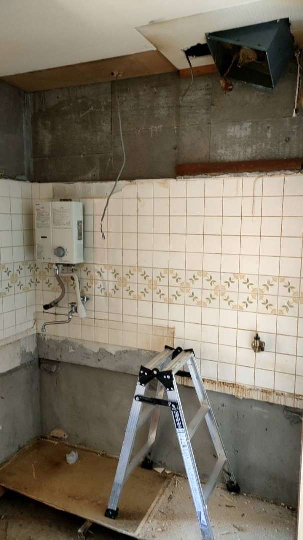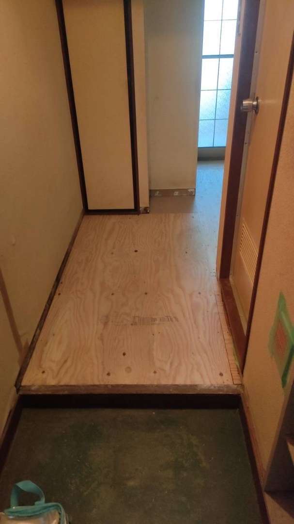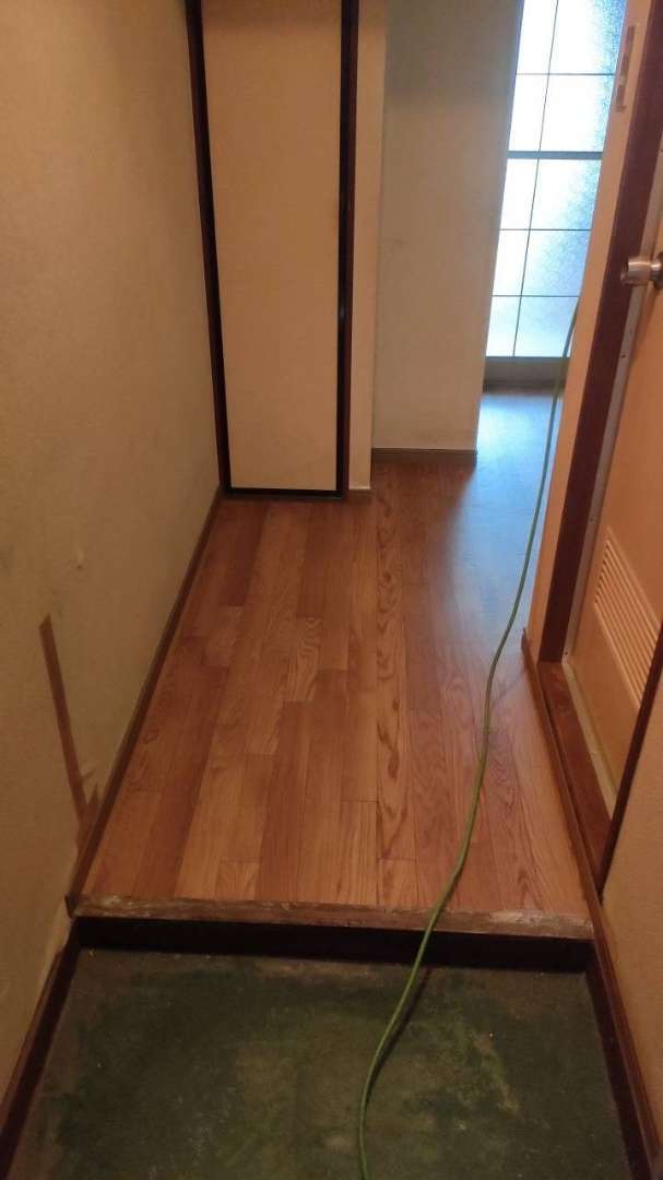 2室のキッチンの取替え、床の造作・張替え、クッションフロア・タイルフロア貼り、クロス貼替えを施工しました。作業は、完了です。