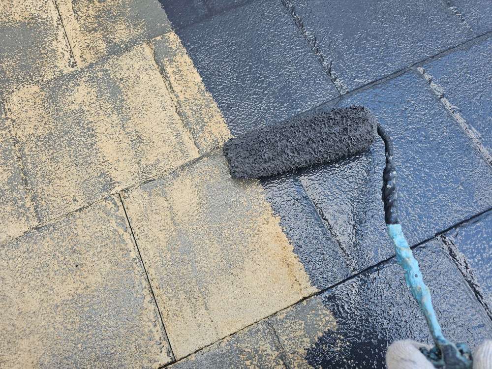 K様邸の昨日の作業は、外壁の下塗り・屋根の中塗り塗装作業を行っていました。