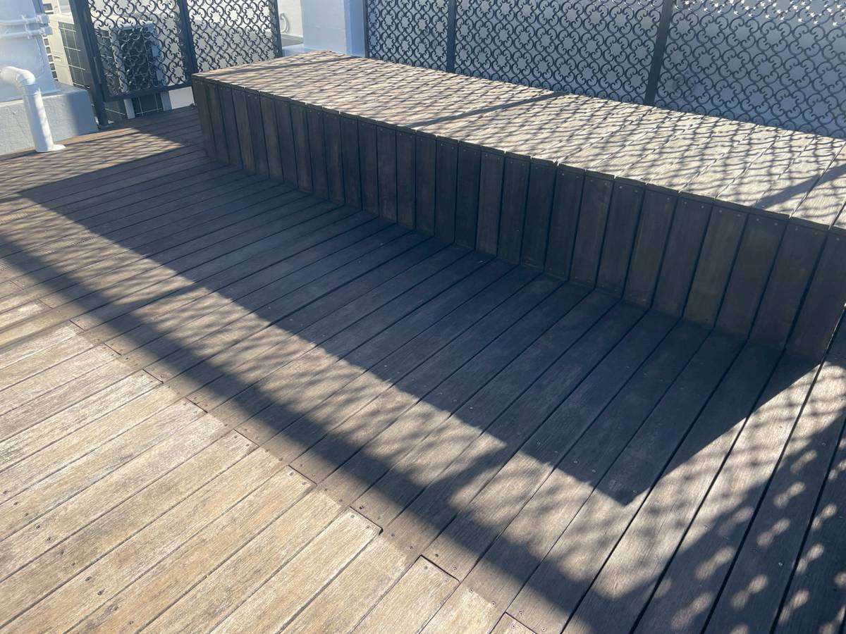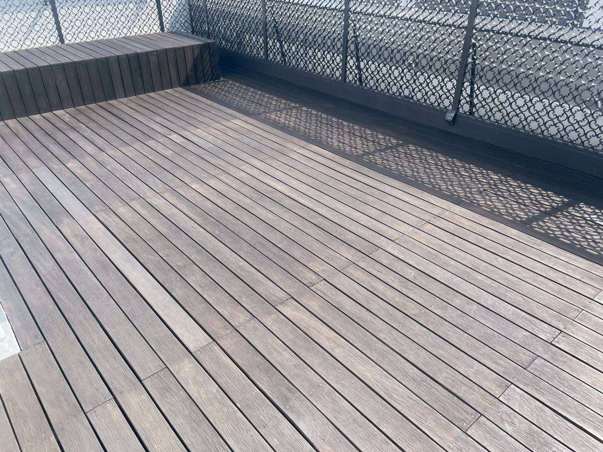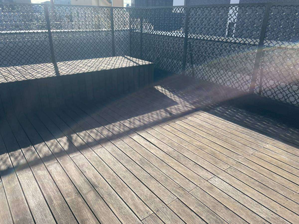 Jビル様の昨日の作業は、屋上ウッドデッキの塗装作業・ビル入口の集合看板(テナントサイン)の取付け作業を行いました。