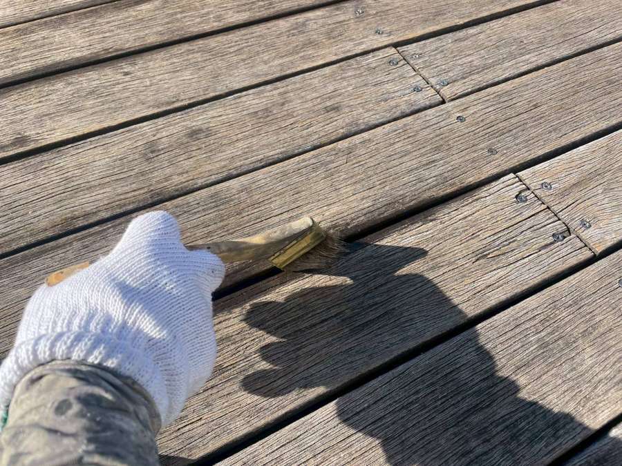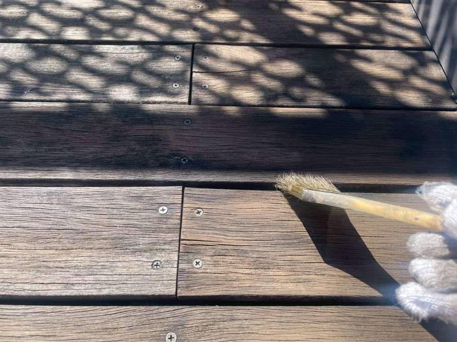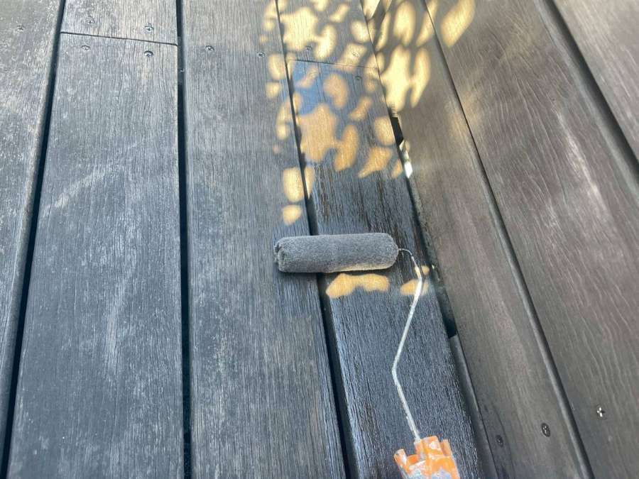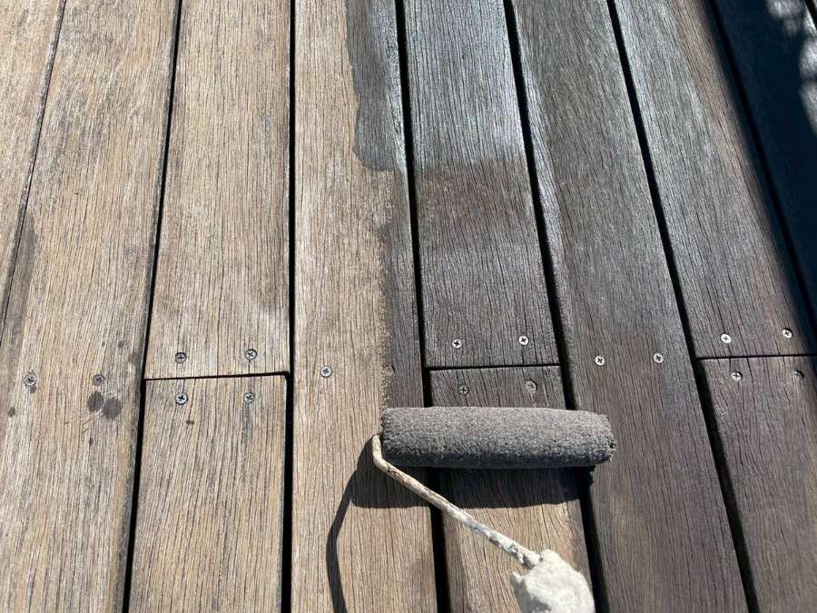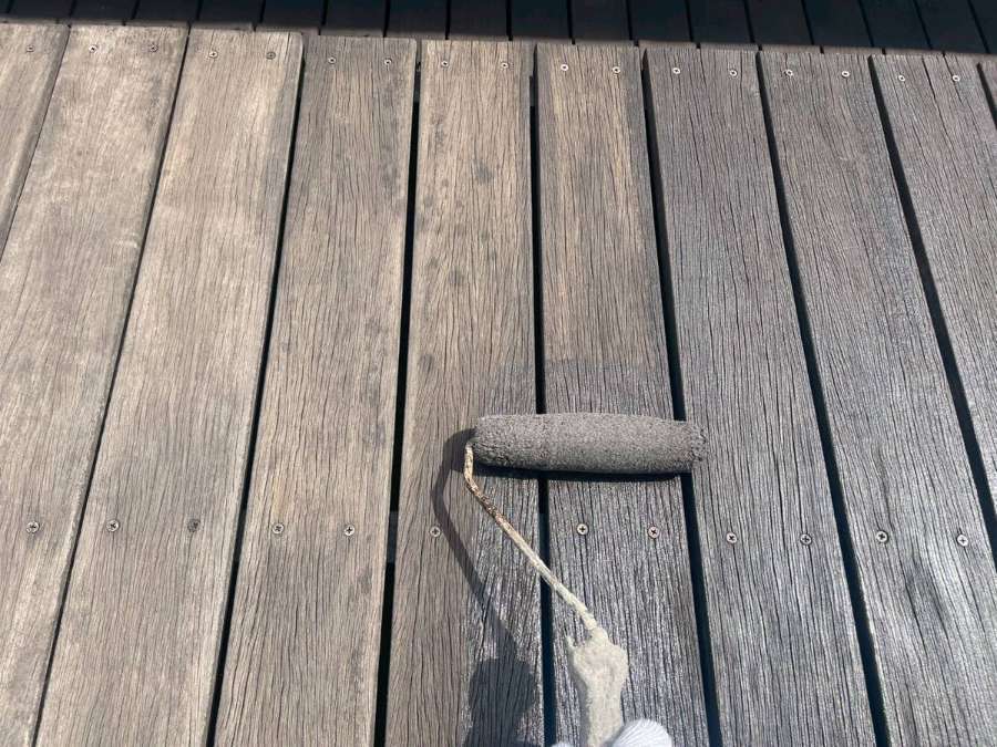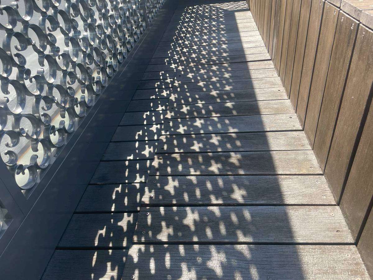 Jビル様の昨日の作業は、屋上ウッドデッキの塗装作業・ビル入口の集合看板(テナントサイン)の取付け作業を行いました。