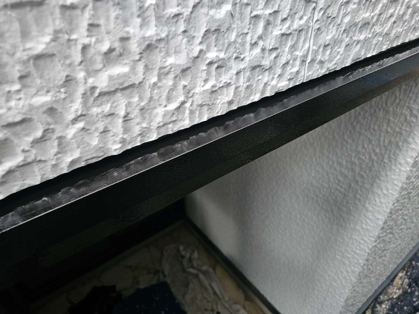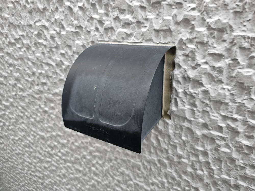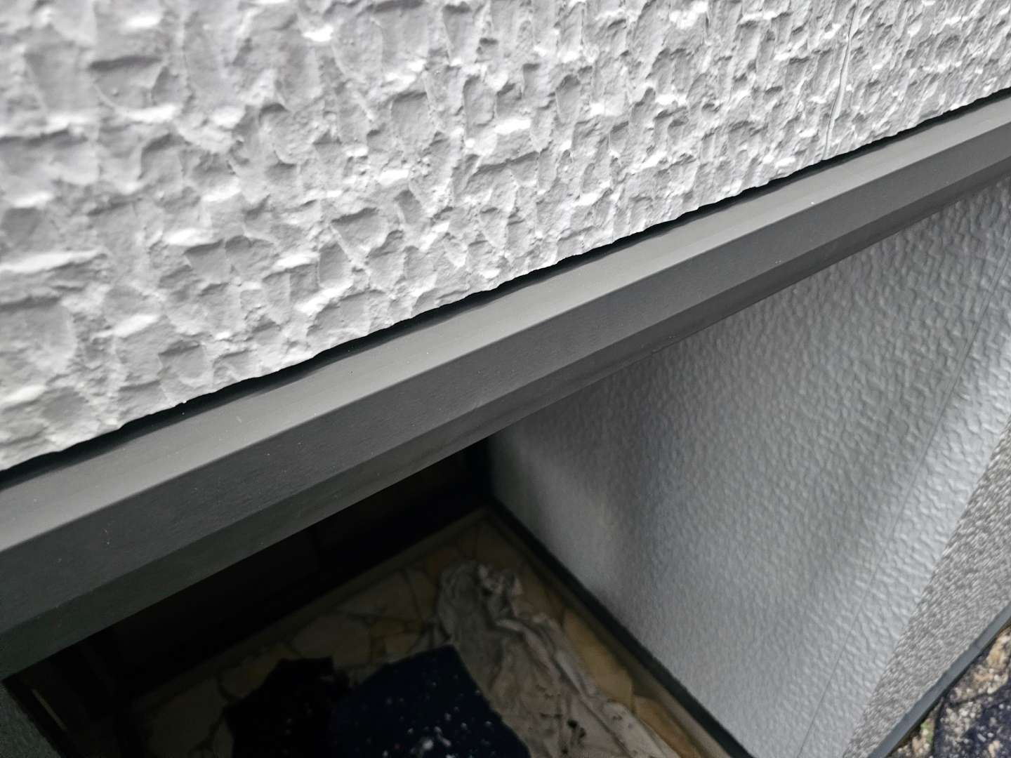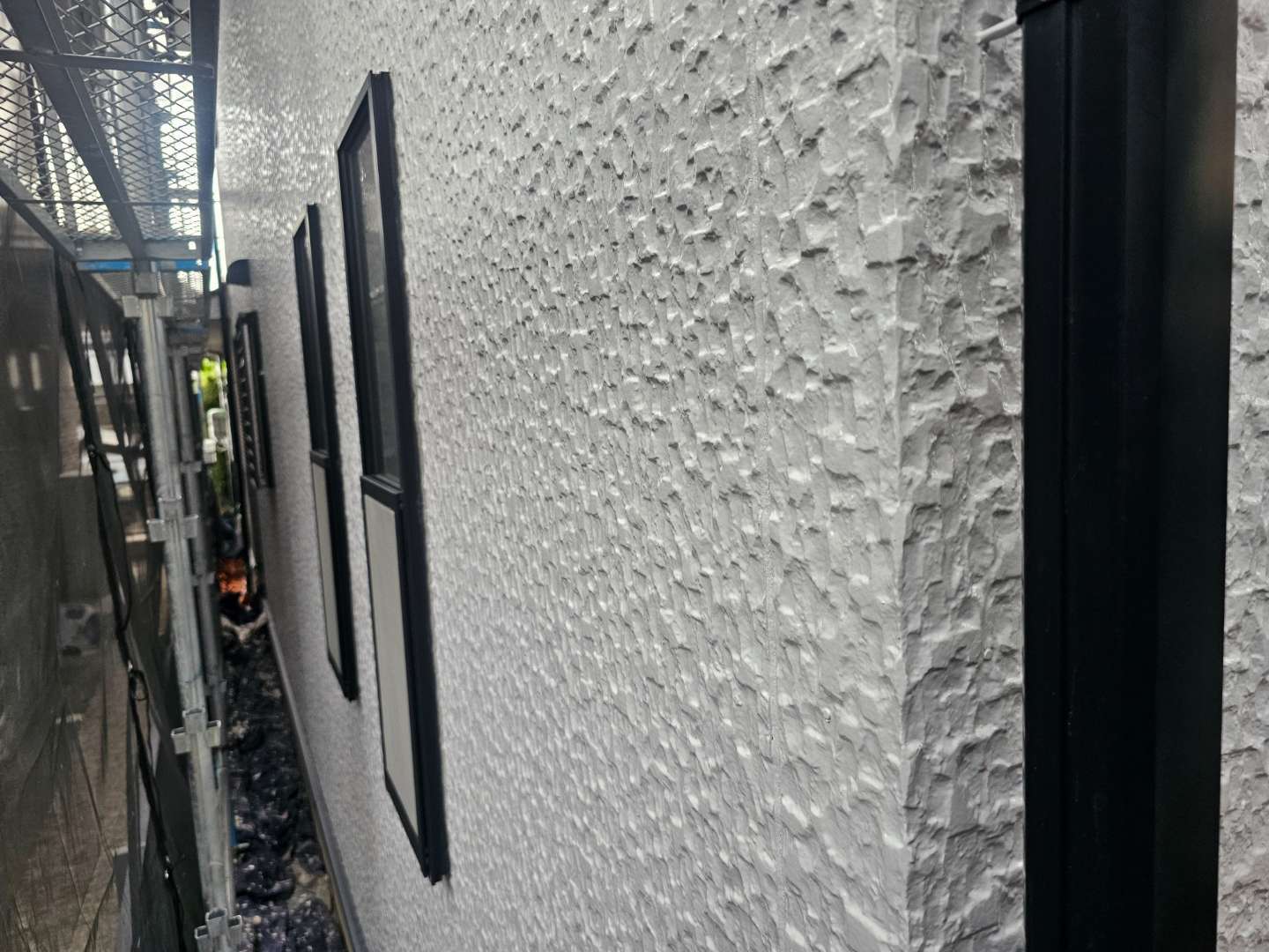 守山区K様邸の昨日の作業は、外壁の上塗り塗装、付帯部(水切り・換気フード・庇)の下塗り作業を行っています。