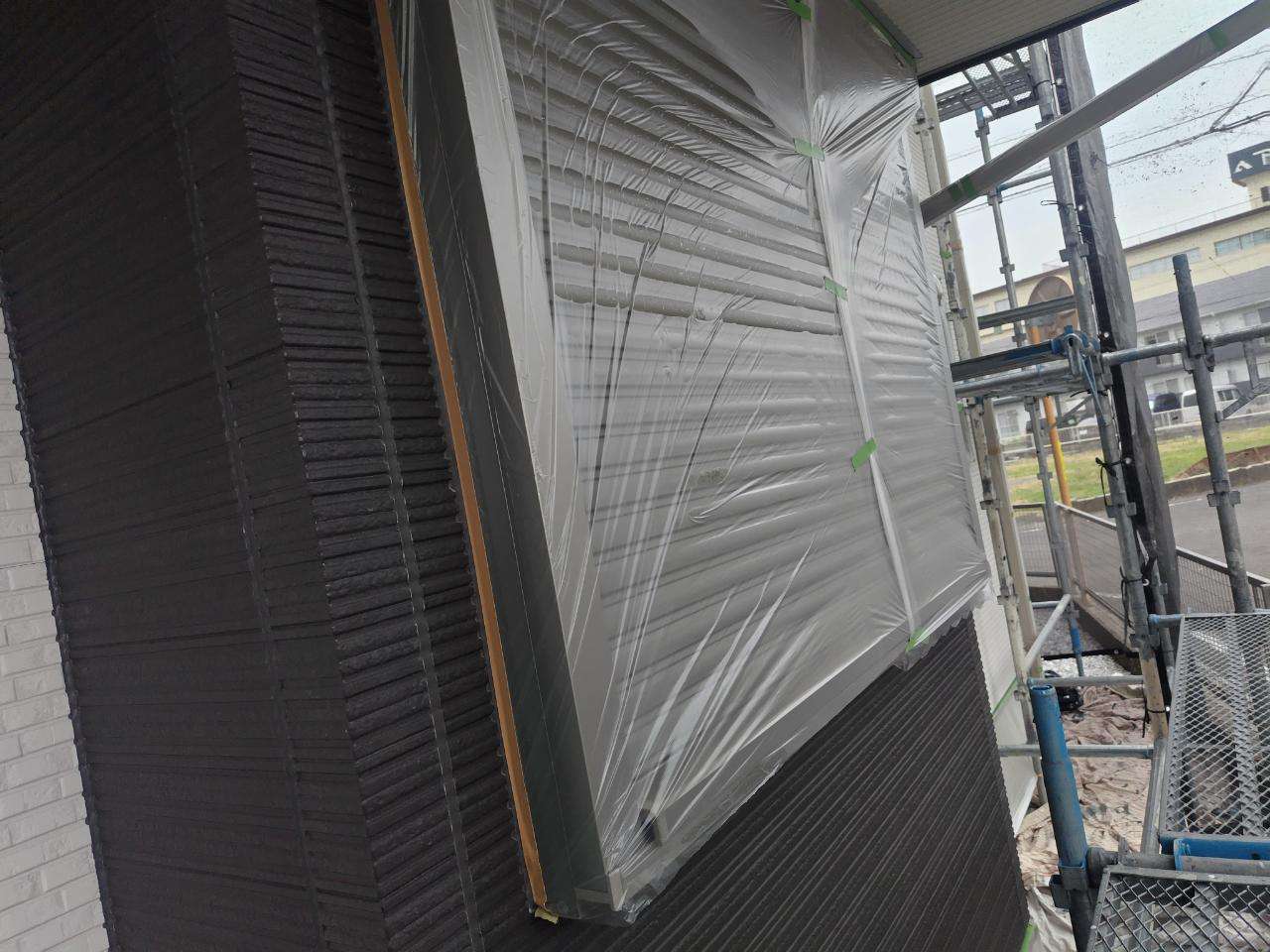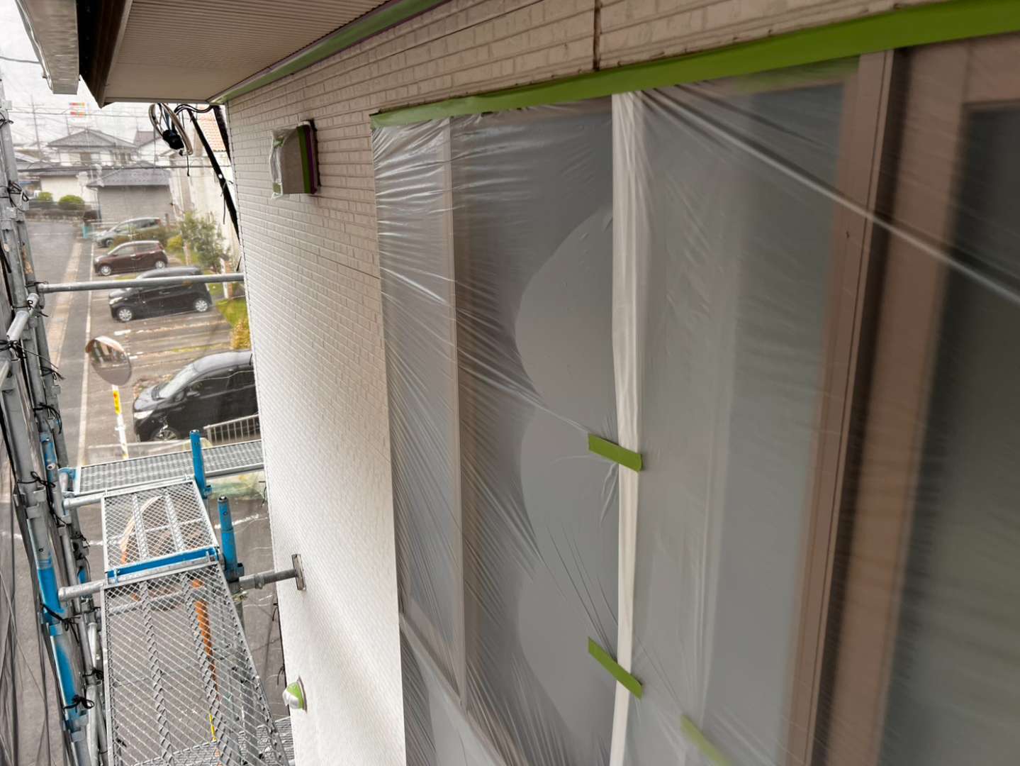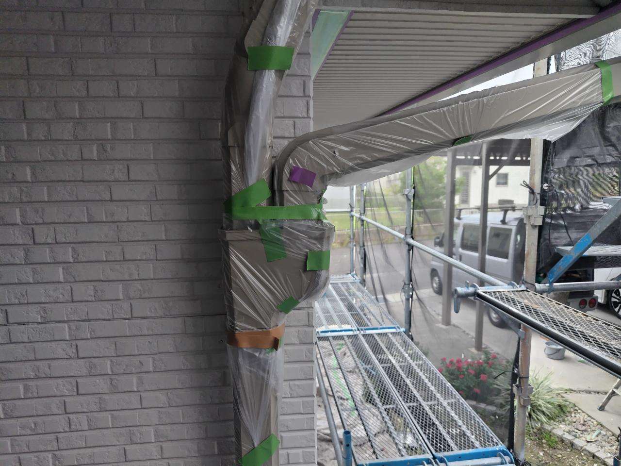 岐阜市M様邸の昨日の作業は、養生(塗装時に塗料が付かないようにマスキングします。)作業はを行っています。