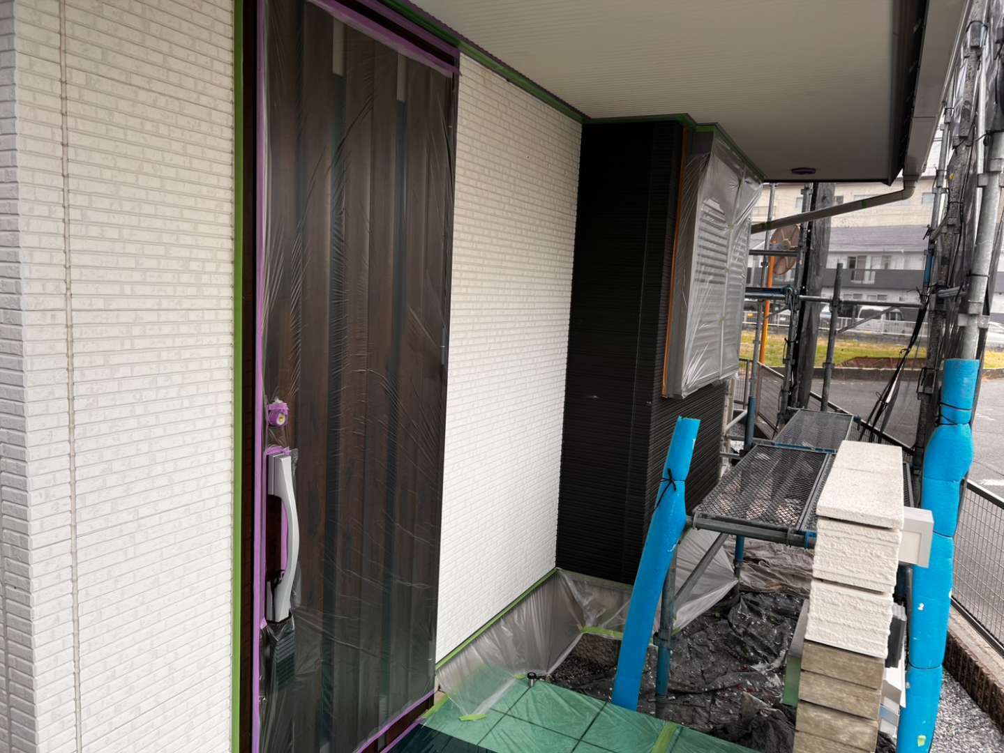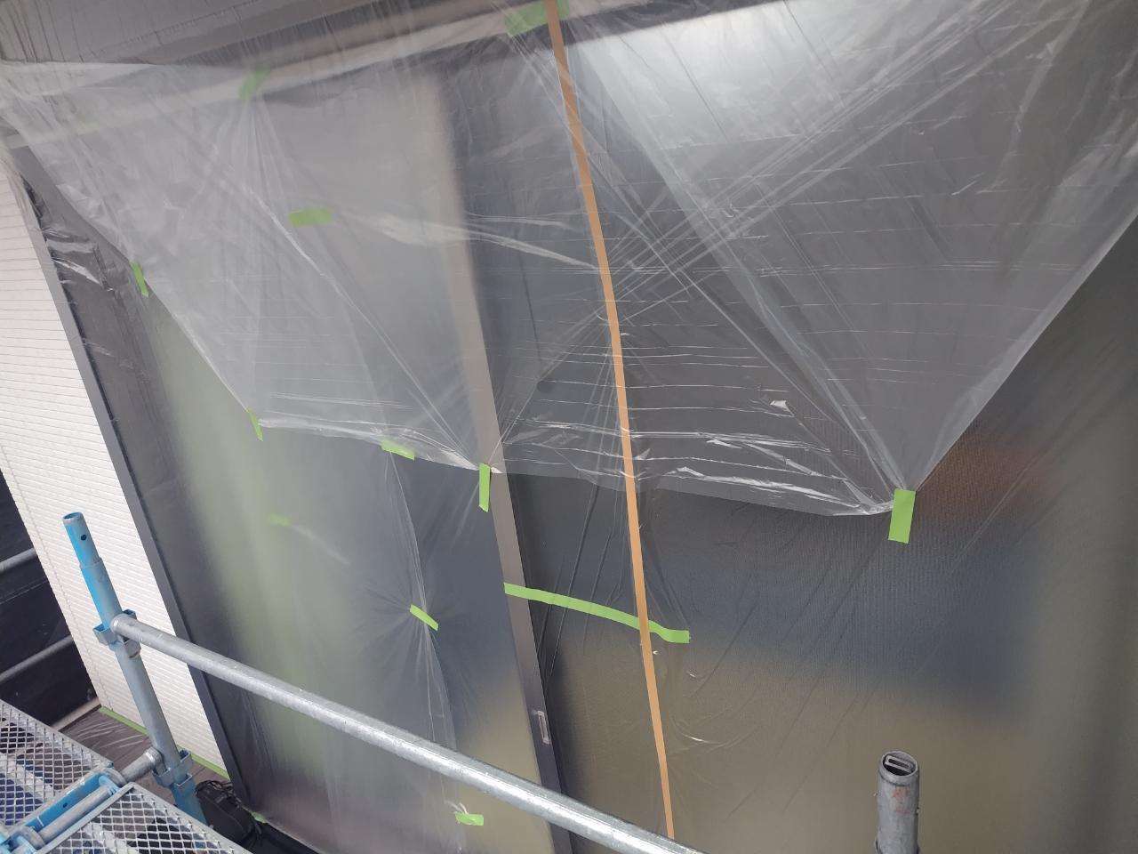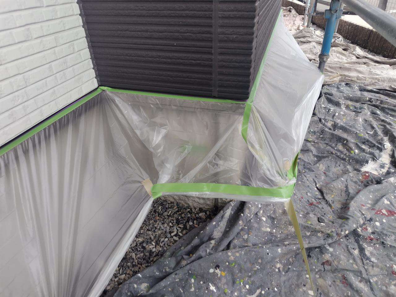 岐阜市M様邸の昨日の作業は、養生(塗装時に塗料が付かないようにマスキングします。)作業はを行っています。