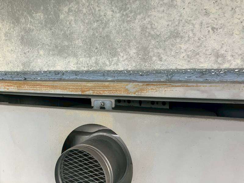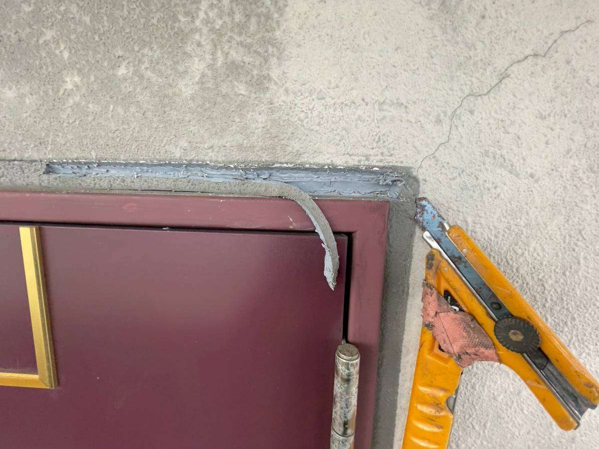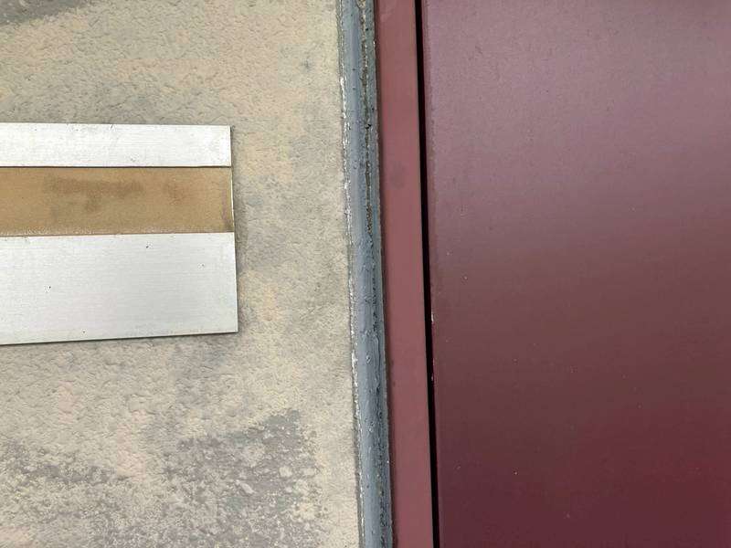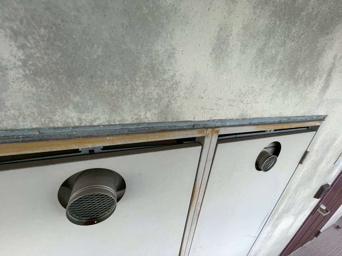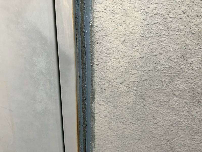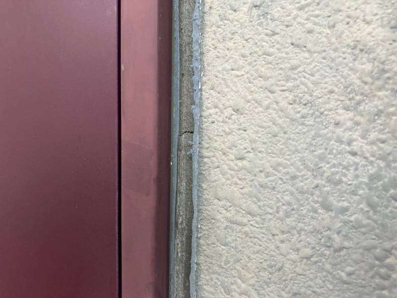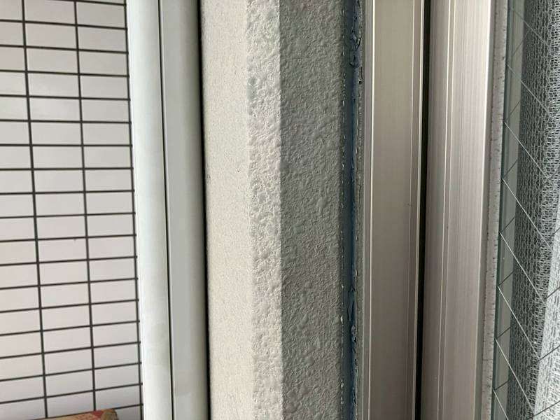 清須市Kマンション様の昨日の作業は、通路、ベランダ面のドア廻り、窓サッシ廻りの目地補修(旧シーリング材撤去)と屋上防水工事の為の太陽光パネルの移動作業を行っています。