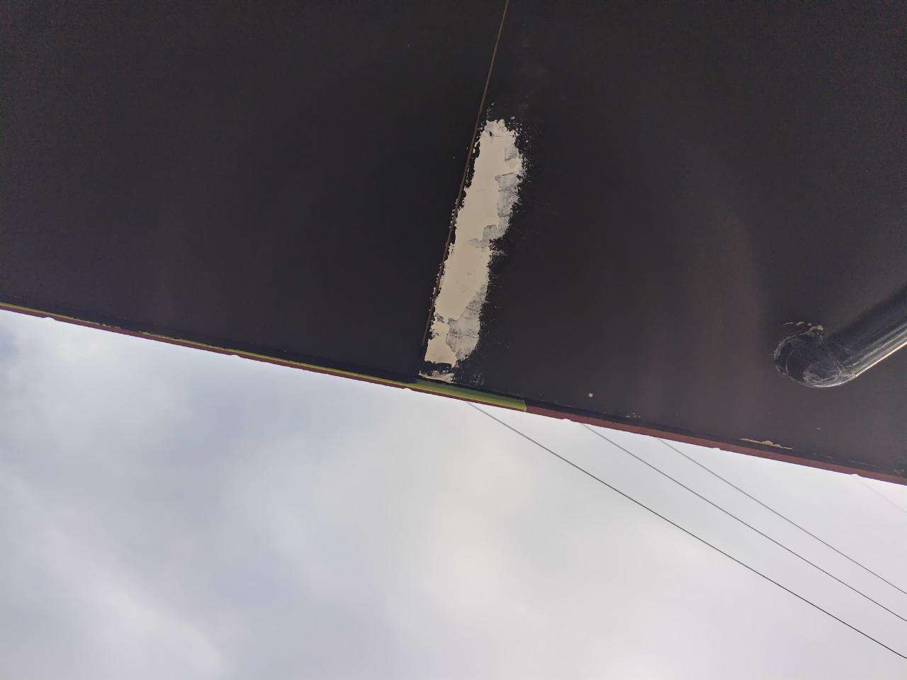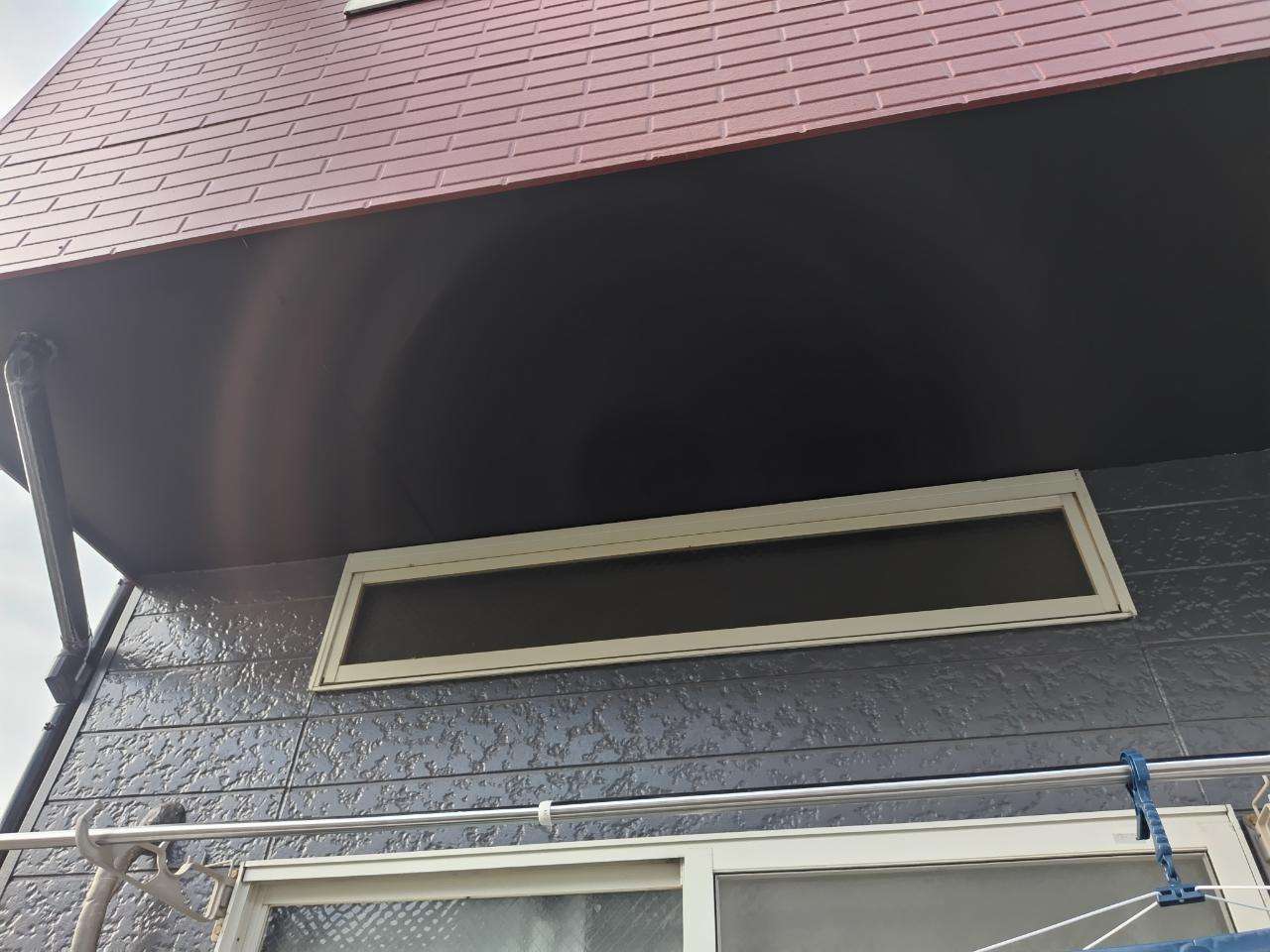 軒天の2箇所の腐食していた木部を取替えて張替え後・パテ補修し塗装をしています。