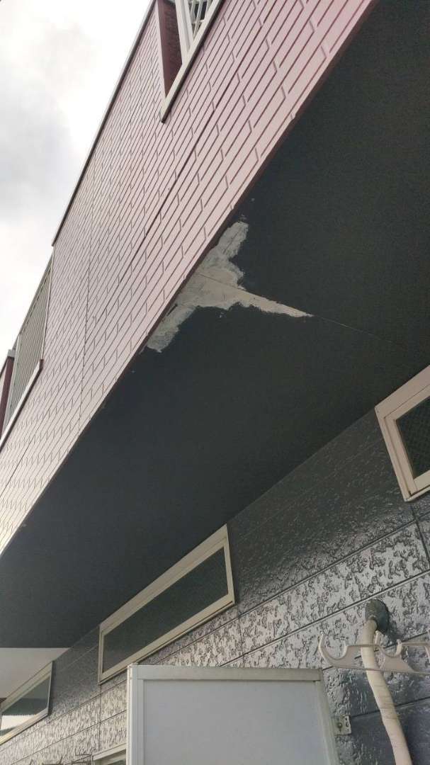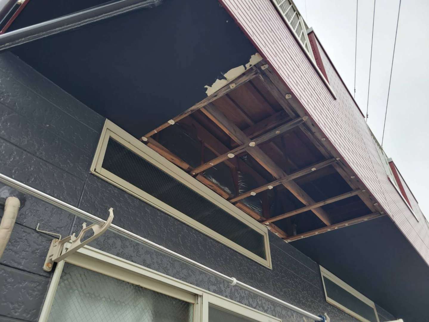小牧市のPコーポ様の1階軒天の腐食部補修工事を行いました。