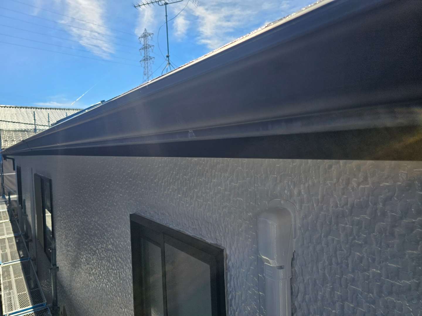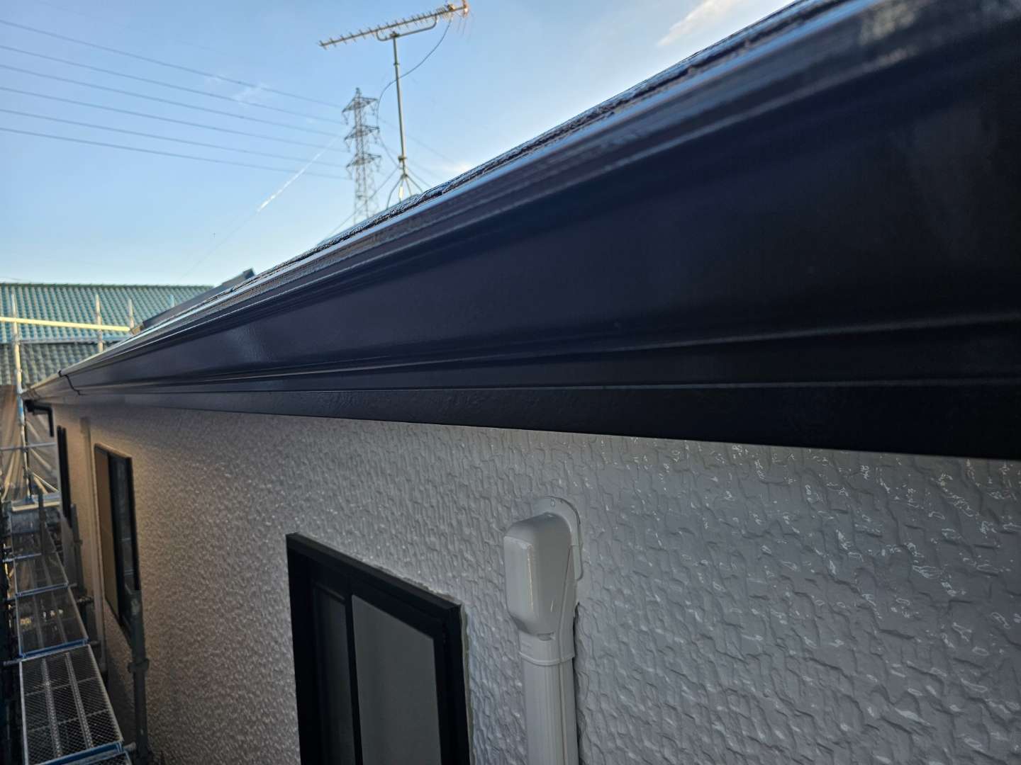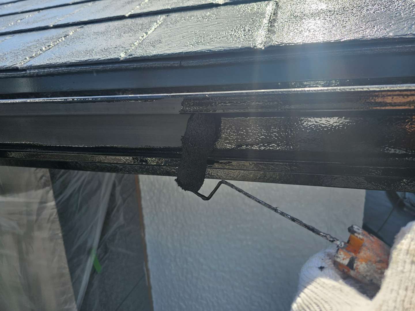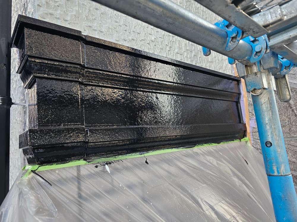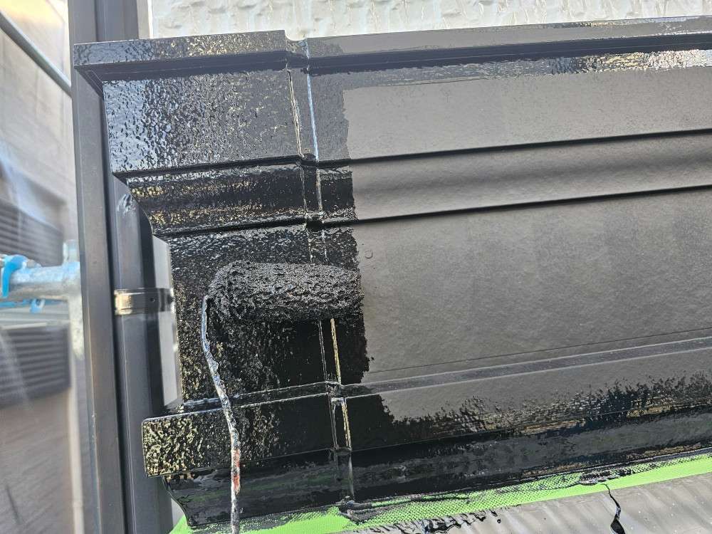 K様邸の昨日の作業は、付帯部塗装の雨樋・鉄部の上塗り1回目塗装作業と