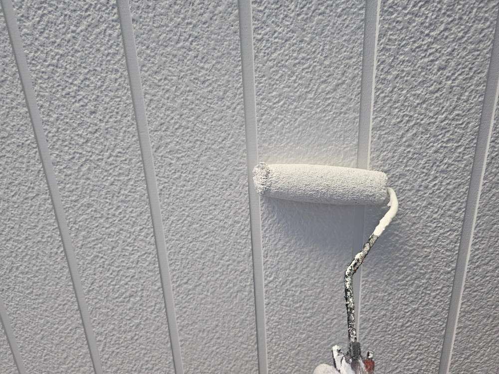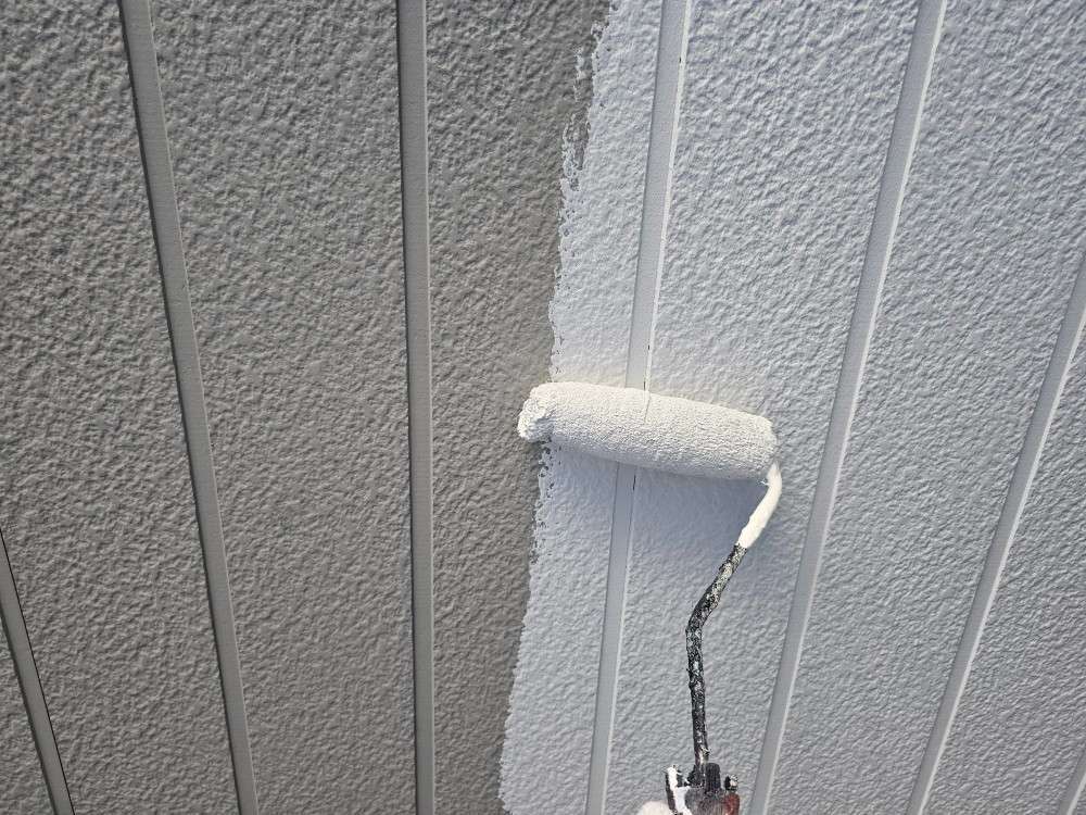 玄関天井の上塗り1回目・2回目塗装作業を行っていました。