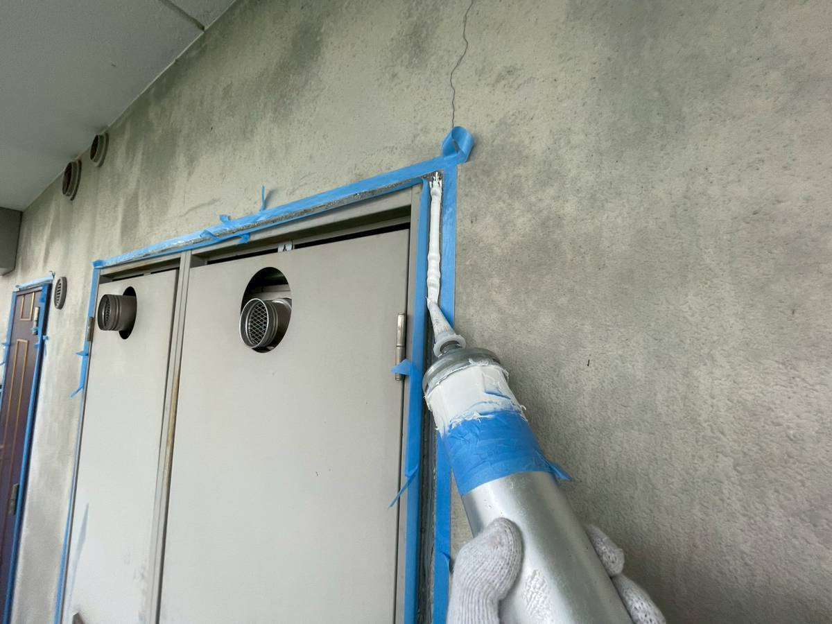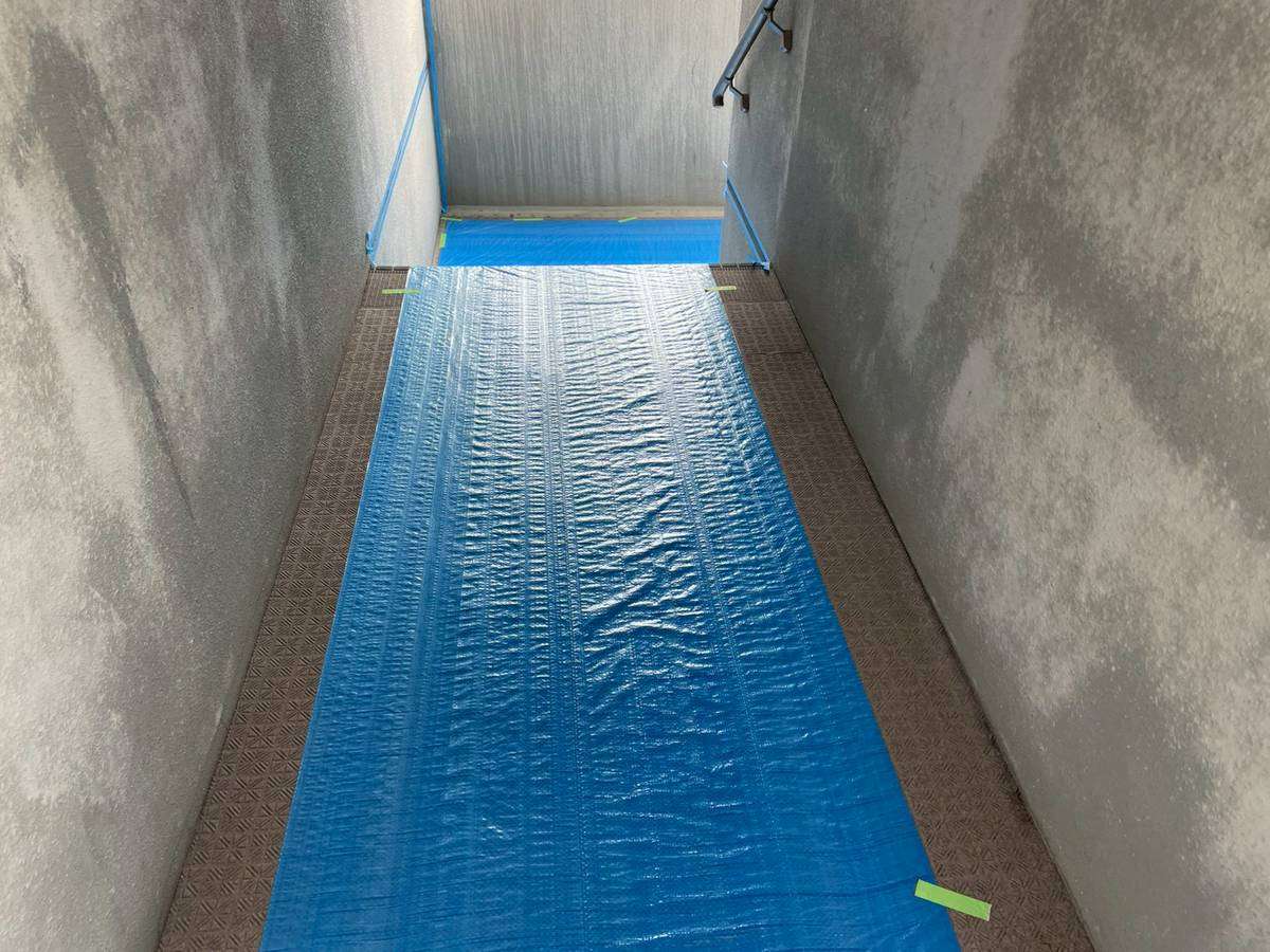 Kマンション様の昨日の作業は、2階・3階通路のコーキング(シーリング)の打替え作業・階段・通路の養生作業を行っていました。