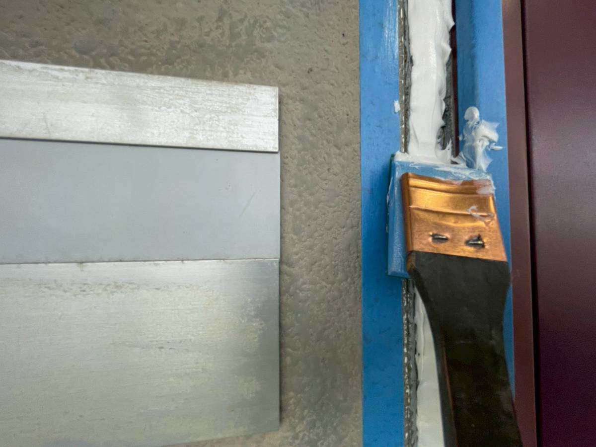 今日の作業は、引き続き、コーキング(シーリング)作業・屋上の防水作業を予定しています。