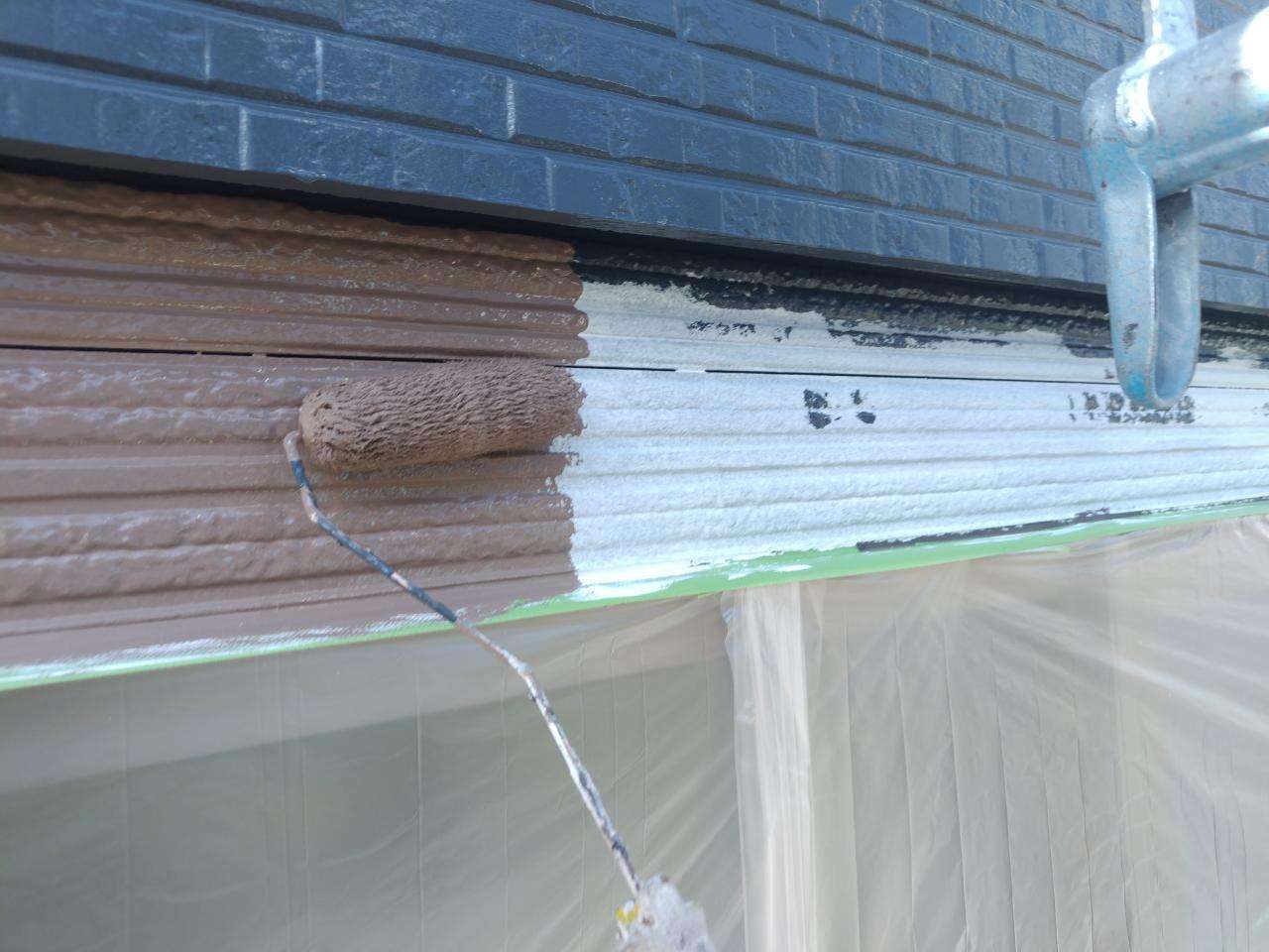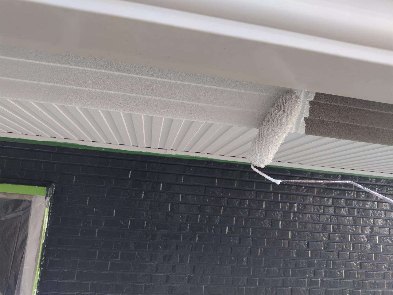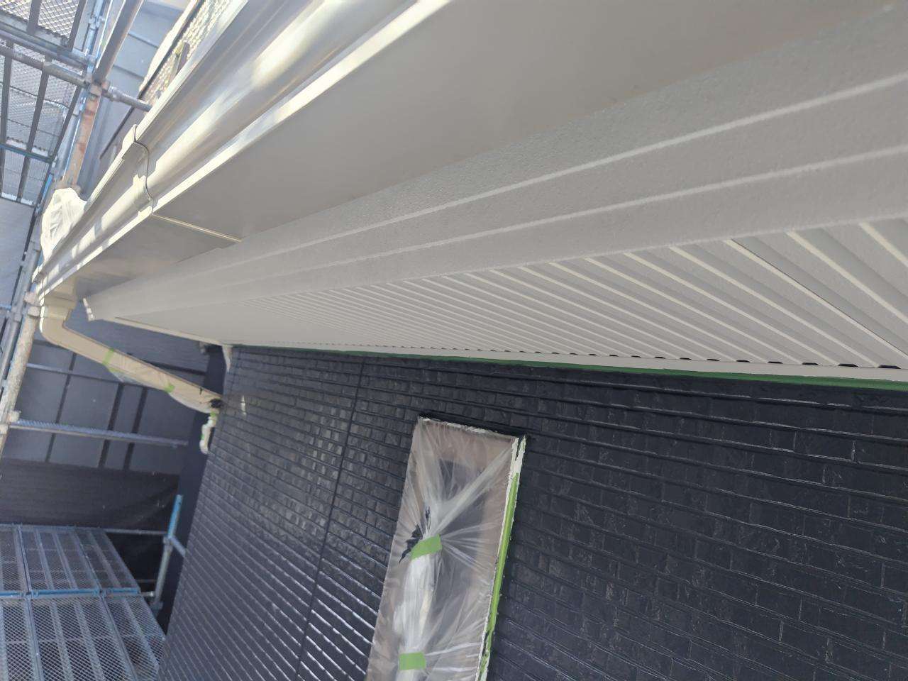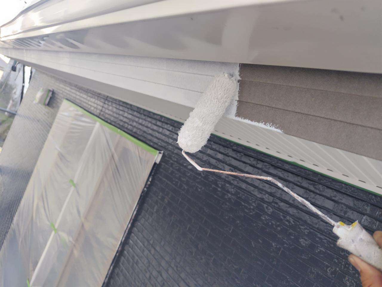 鼻隠し板・軒樋上塗り1回目塗装作業