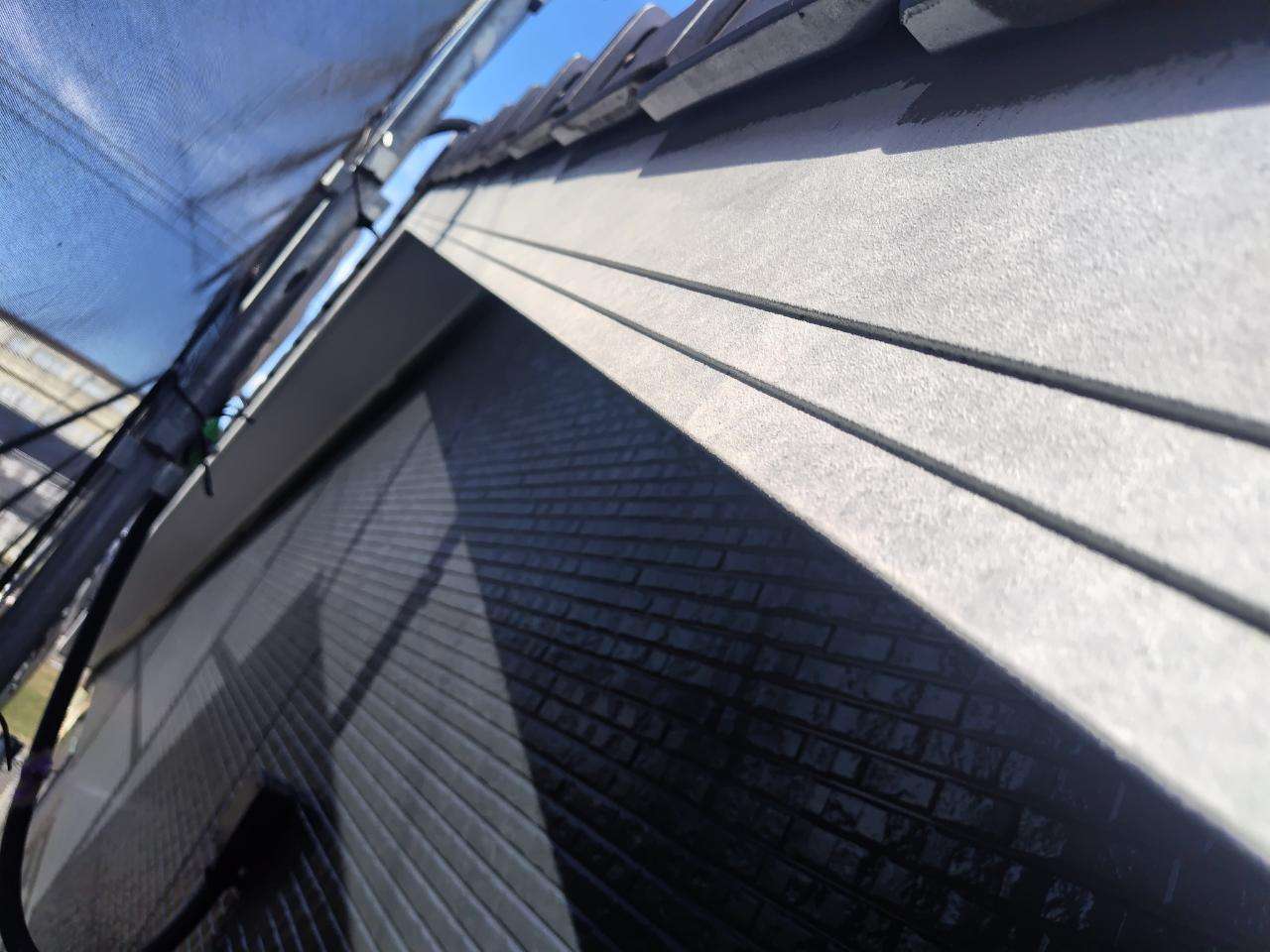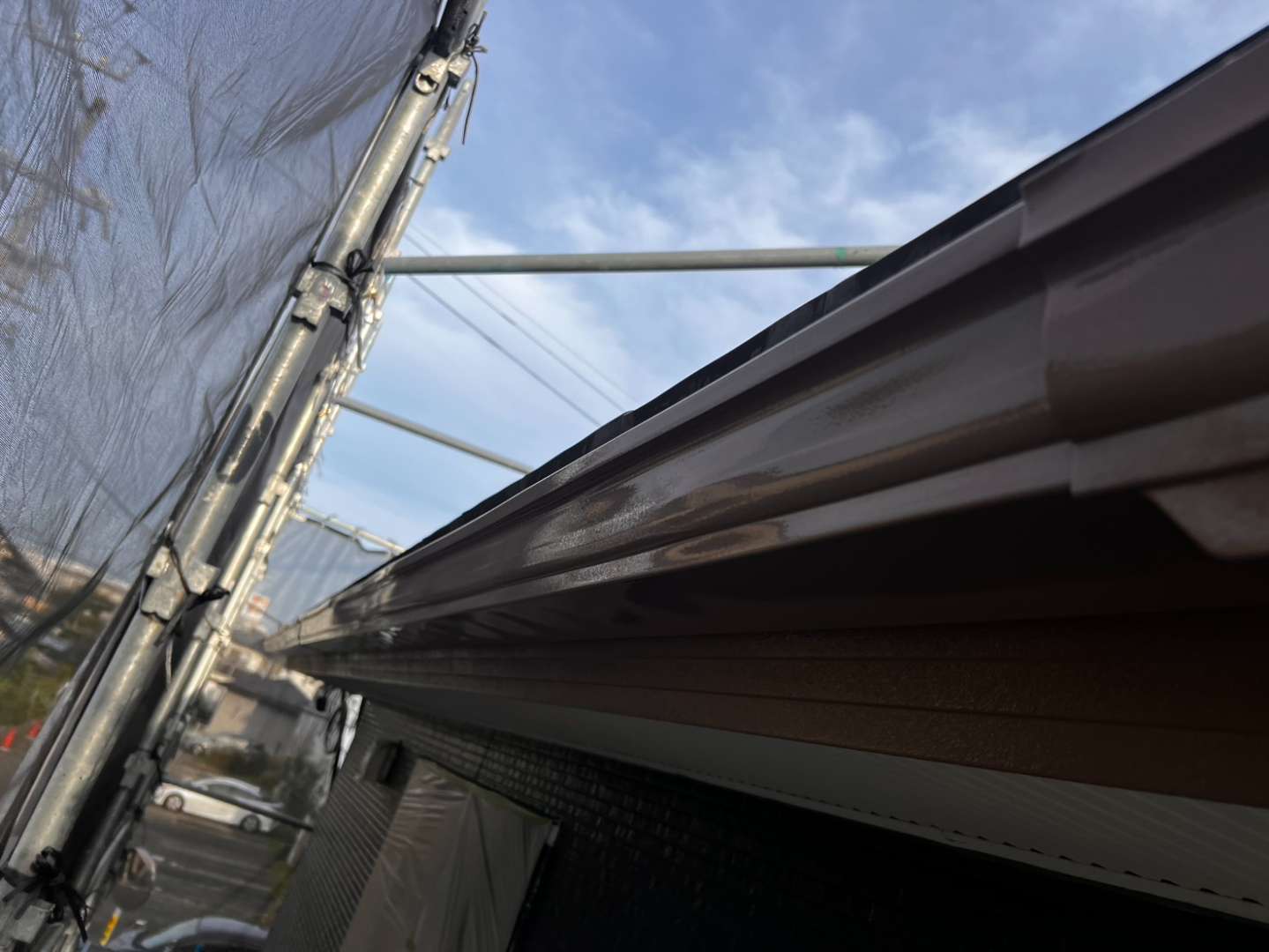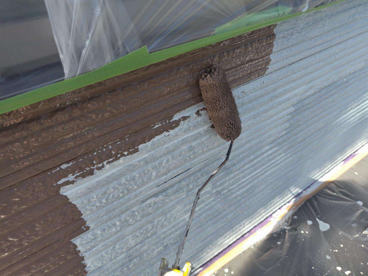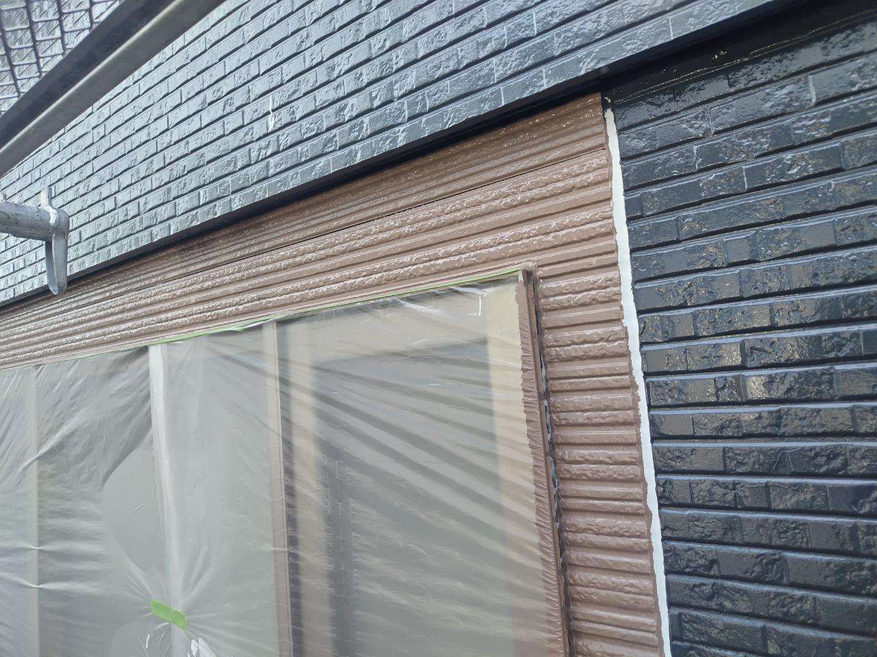 鼻隠し板・軒樋上塗り1回目塗装作業