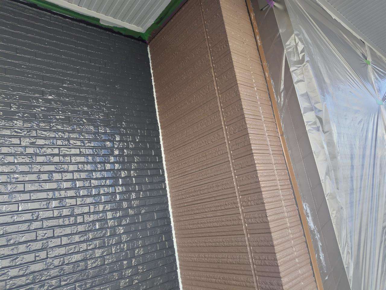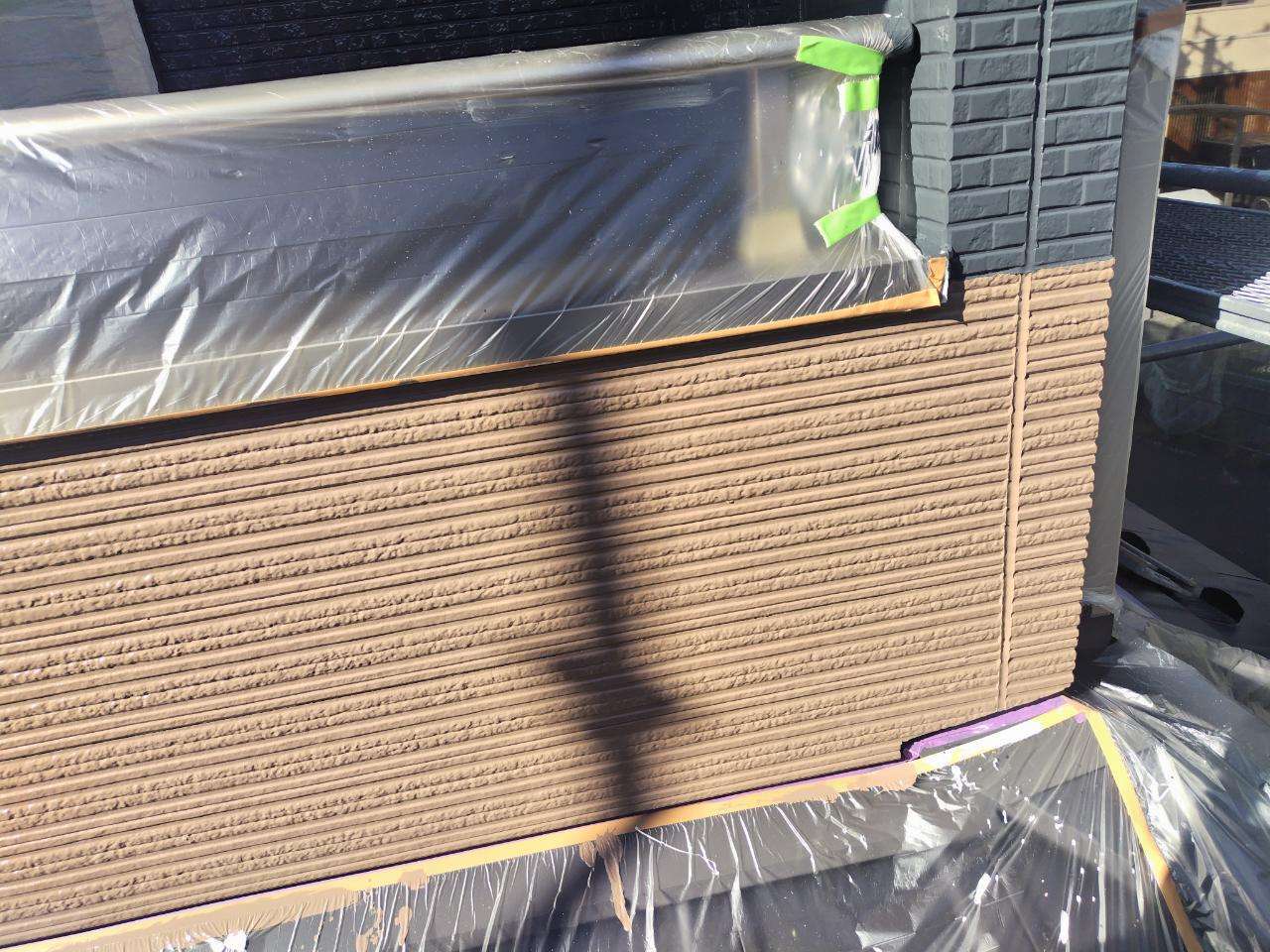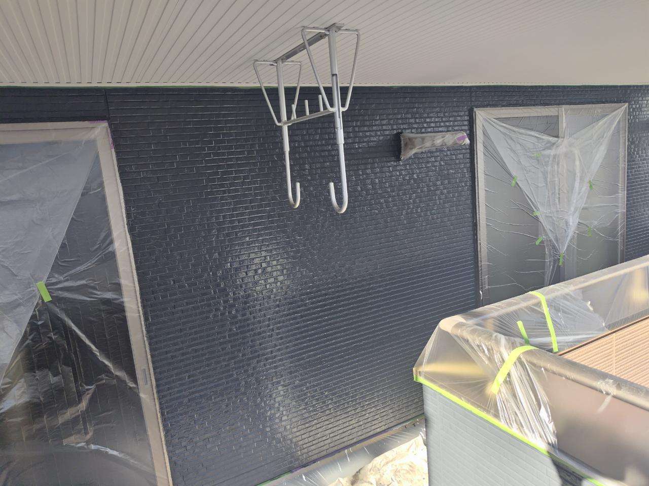 今日の作業は、外壁の上塗り塗装を予定しています。