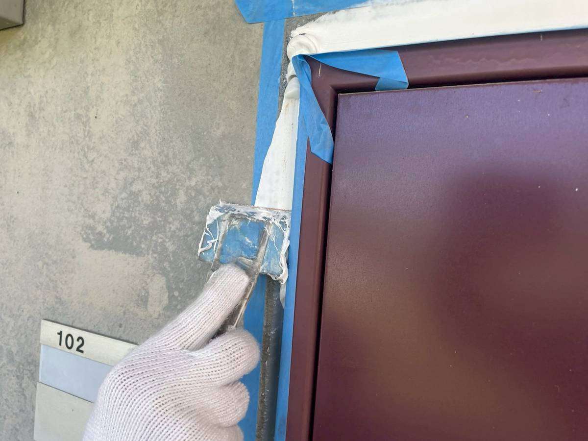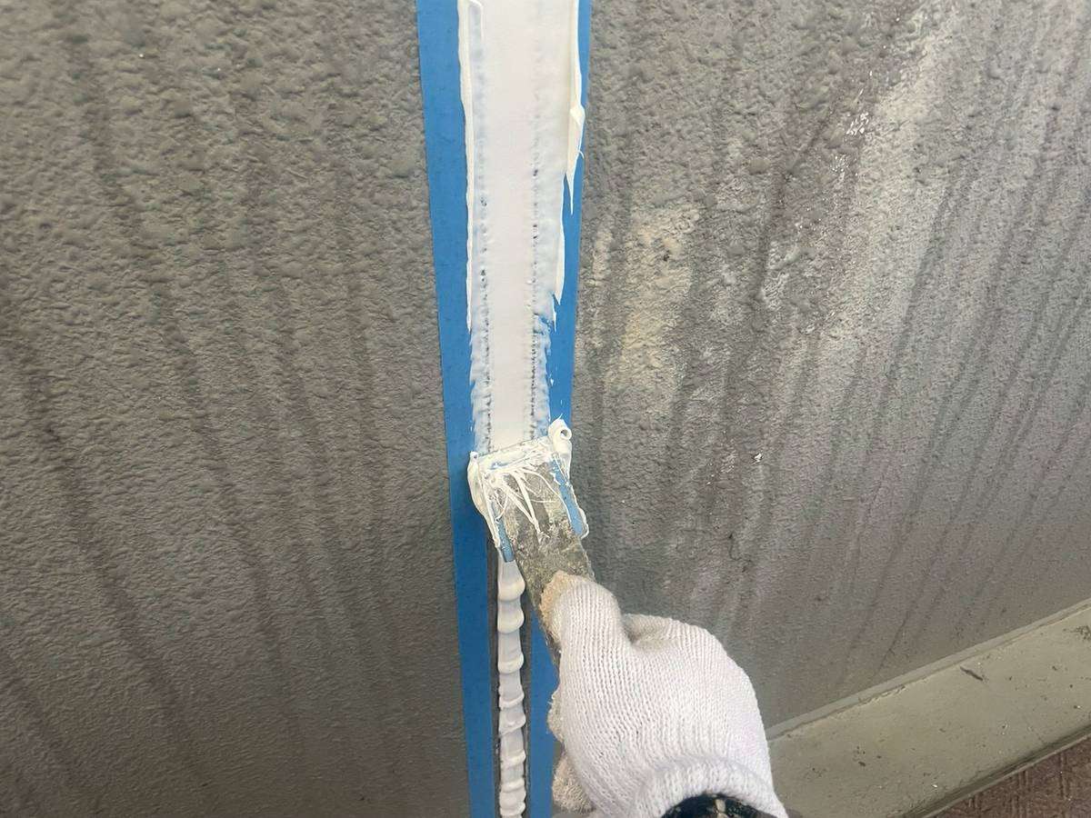 1階通路コーキング(シーリング)作業