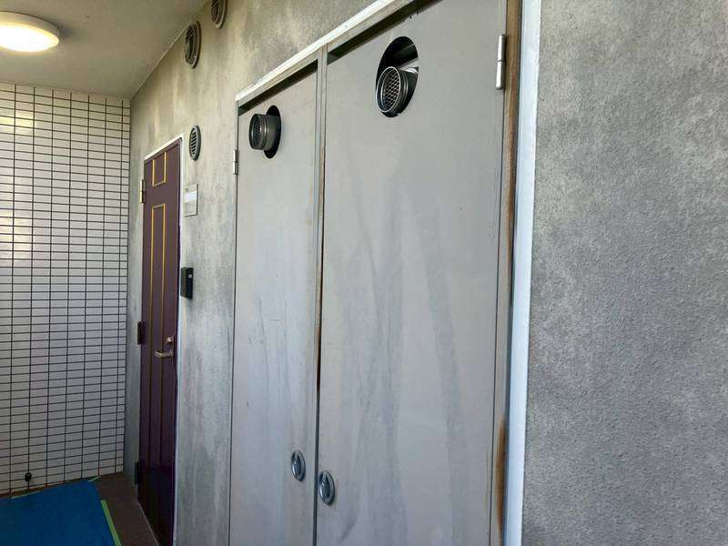 ベランダ側養生作業