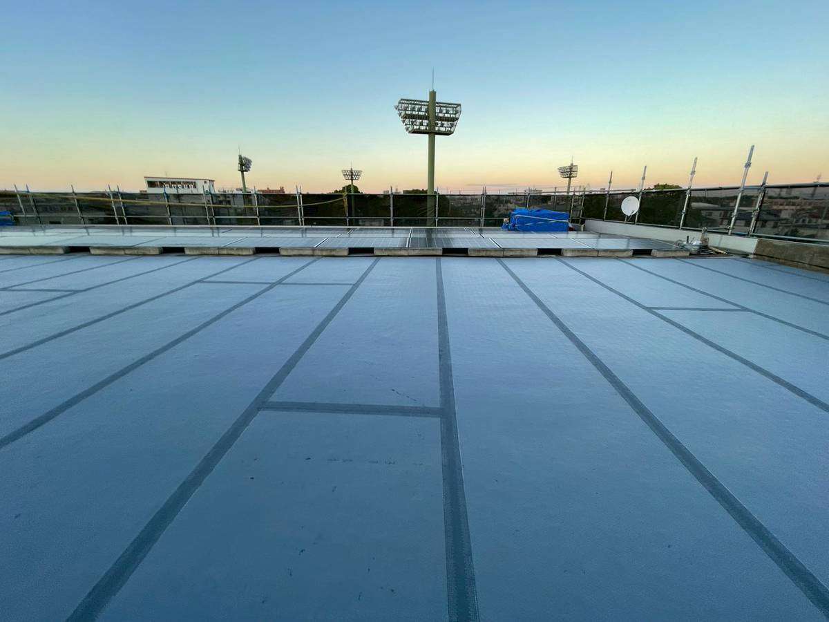 今日の作業は、屋上の脱気筒・改修ドレン取付け、ウレタン樹脂1層目塗装作業を予定しています。