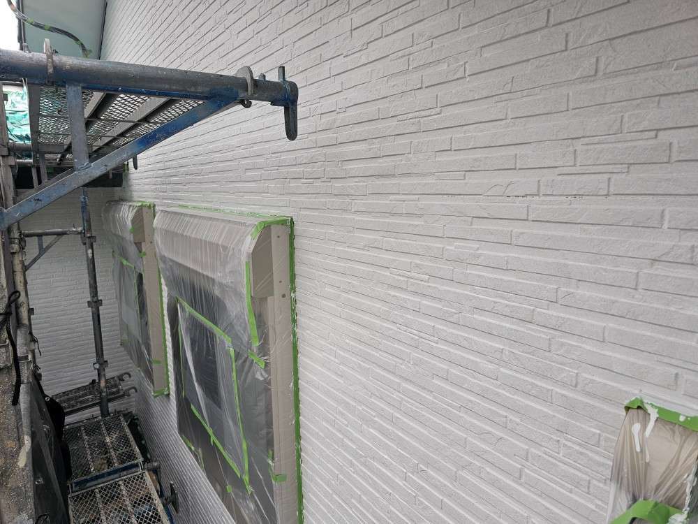 O様邸の昨日の作業は、外壁の下塗り塗装作業を行っていました。