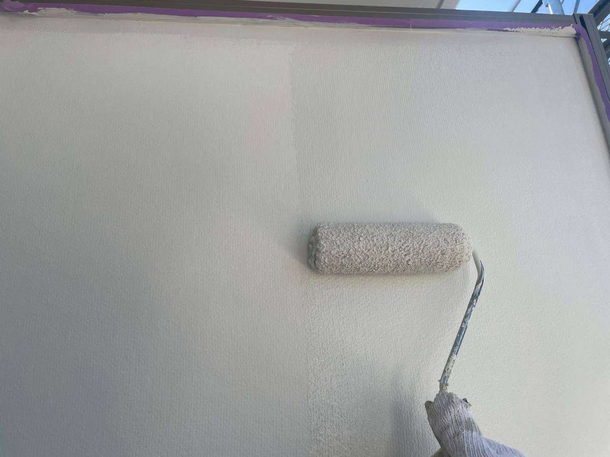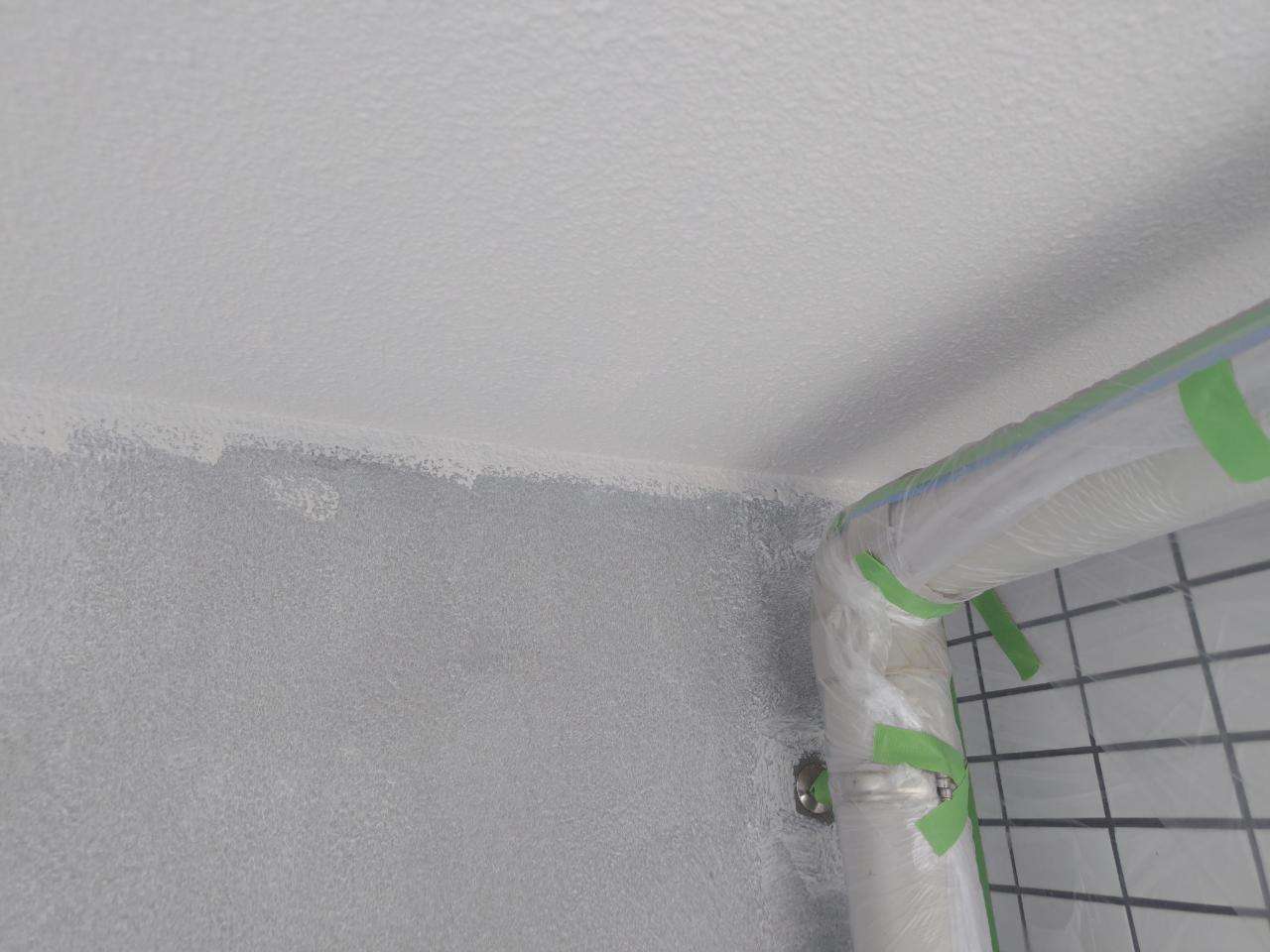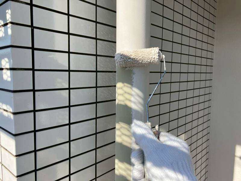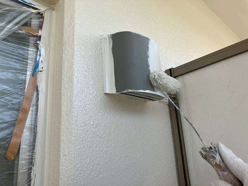 清須市のKマンション様の昨日までの作業内容は、ベランダ面の付帯部(隔て板)下塗り・上塗り1回目・2回目塗装、付帯部(フード・物干し金物・雨樋)の下塗り塗装と上塗り1回目塗装と1階ベランダ下部の上塗り1回目・2回目塗装作業行っています。