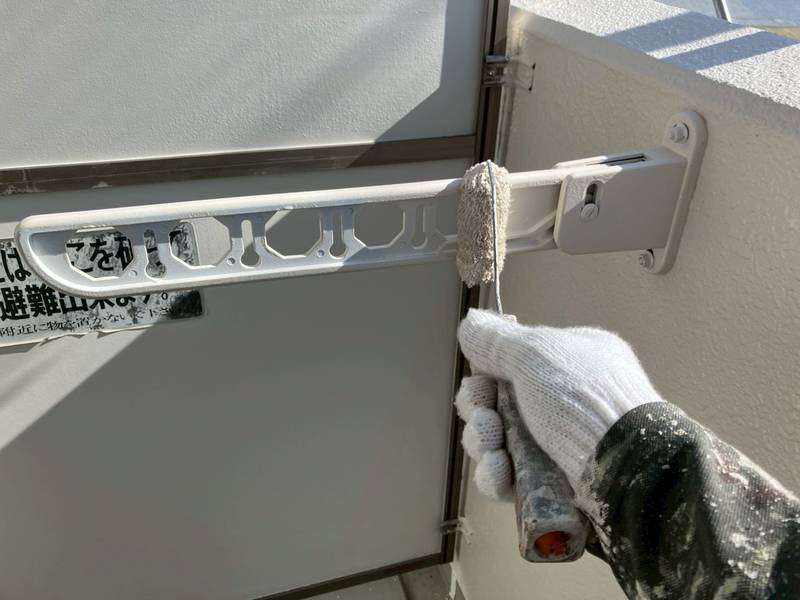 清須市のKマンション様の今日の作業は、付帯部上塗り塗装作業を予定しています。