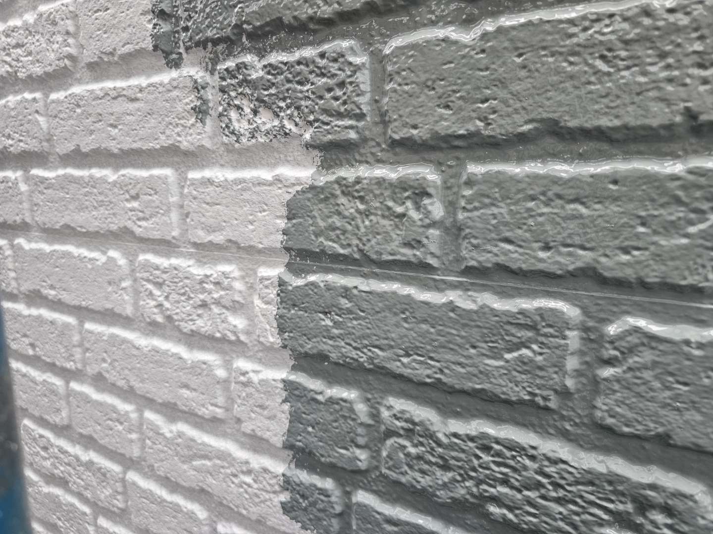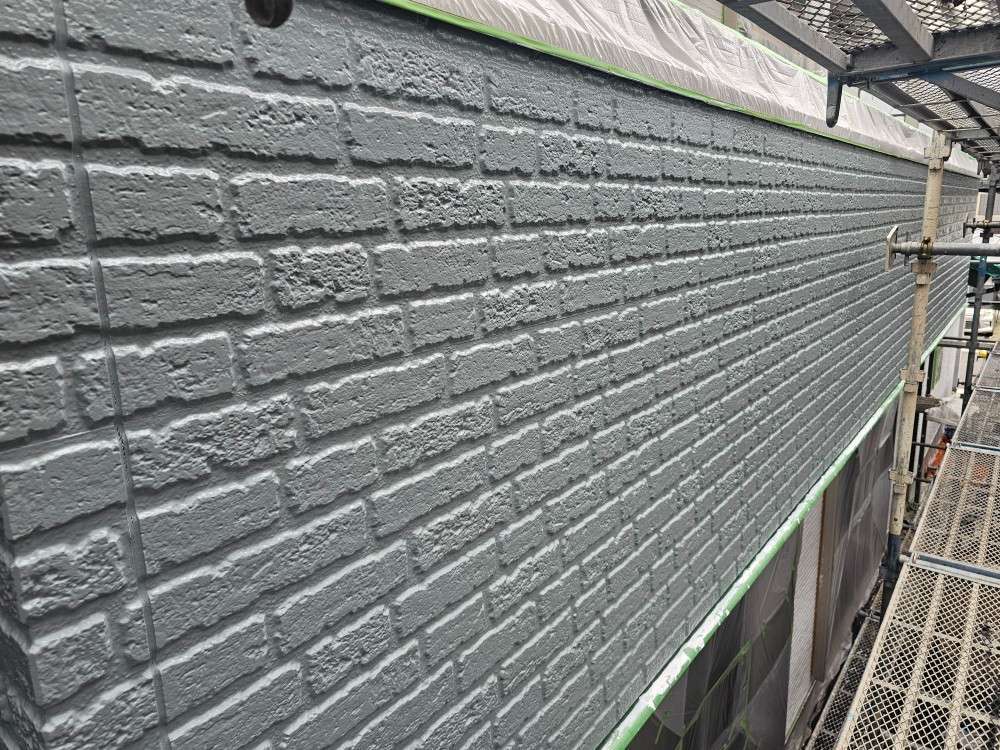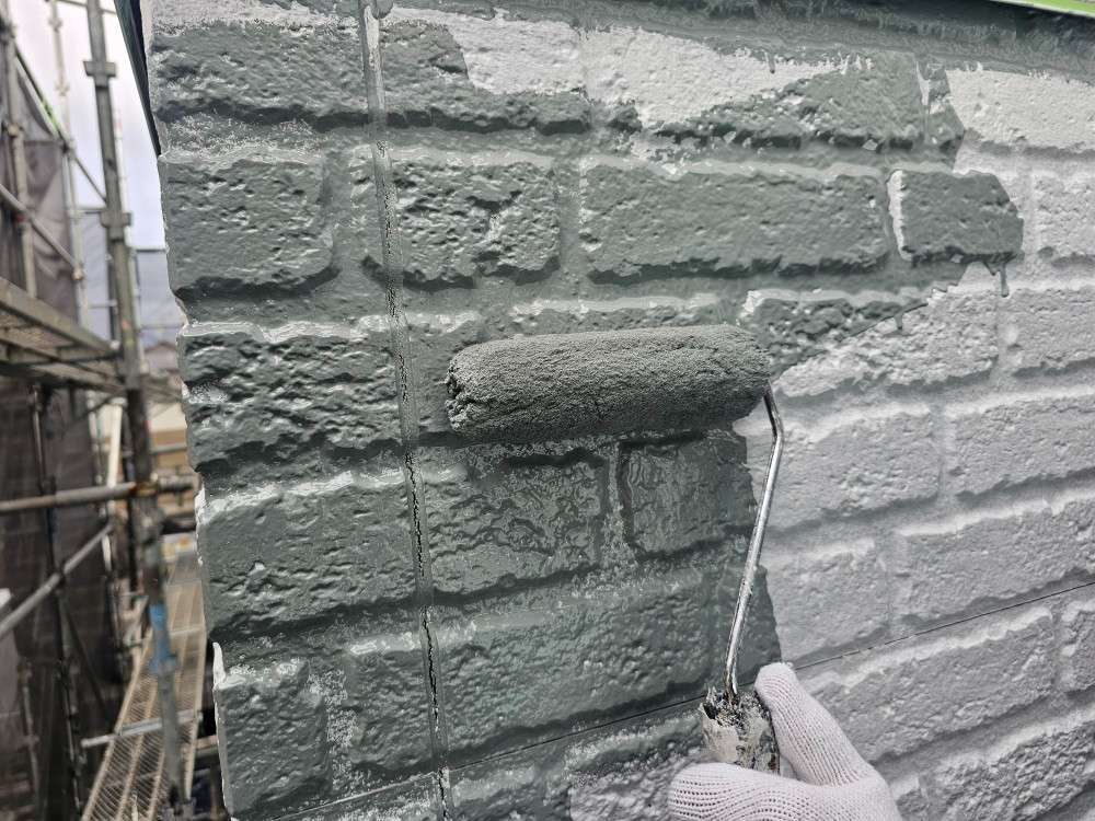 今日の作業も引き続き、外壁の中塗り塗装作業を行っています。