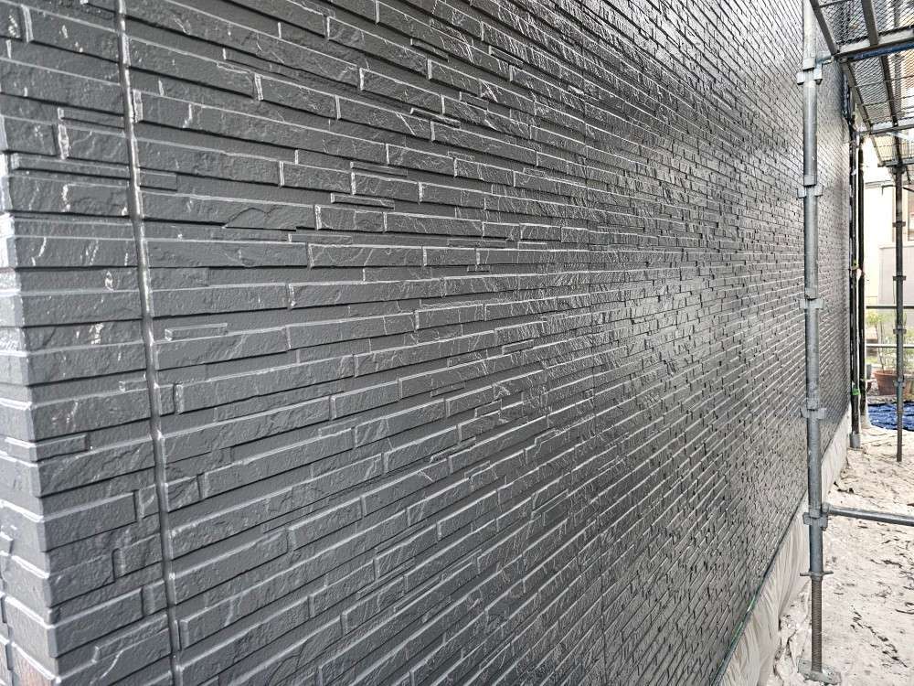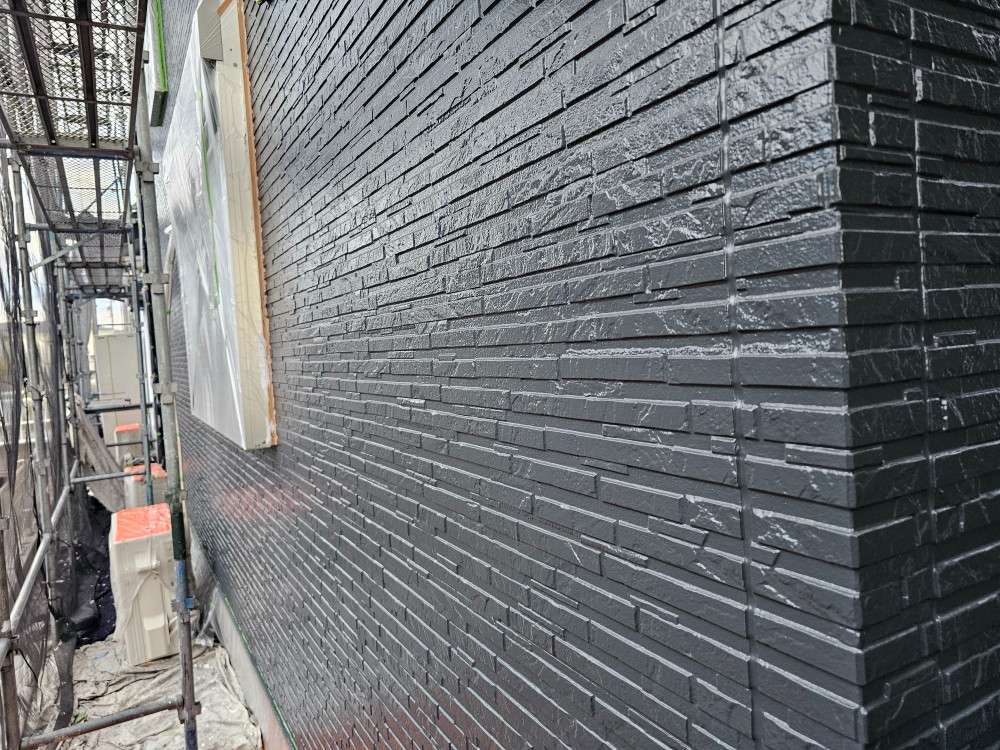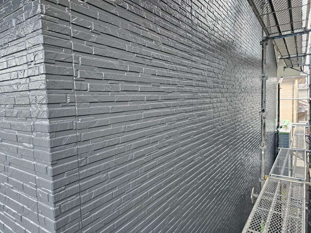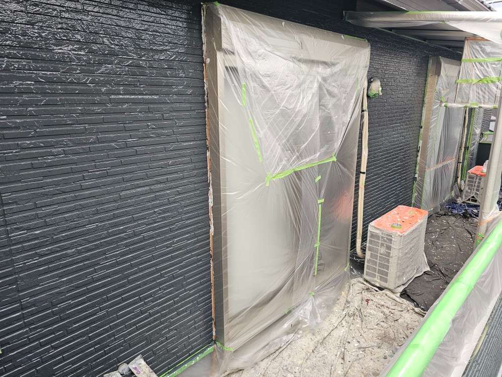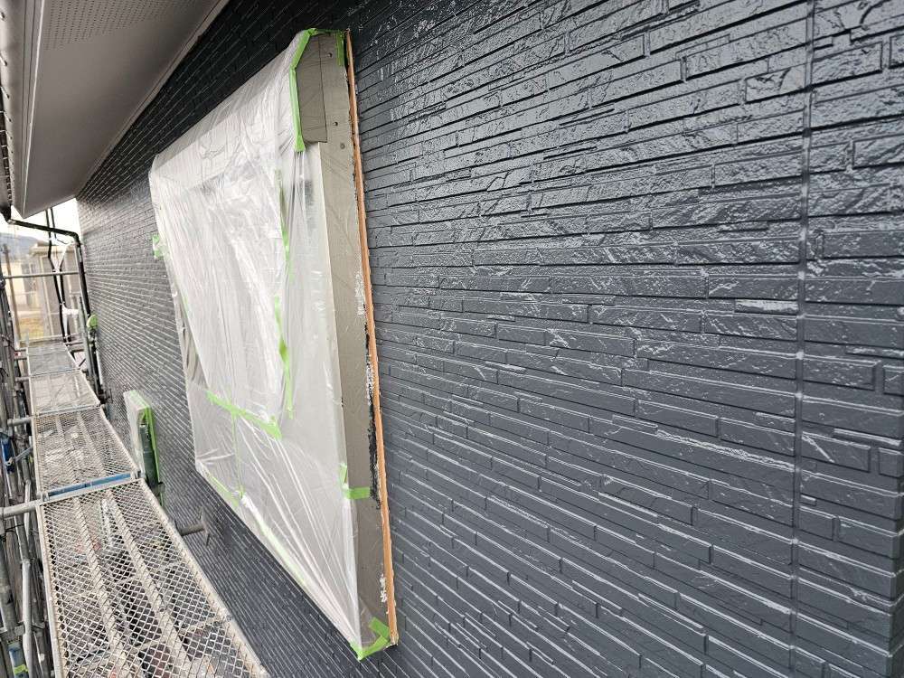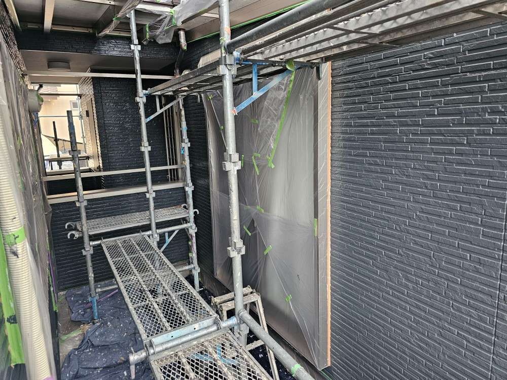 今日の作業は、外壁の上塗り塗装作業を予定しています。