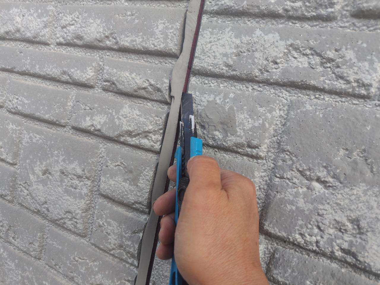 T様邸の昨日の作業は、コーキング(シーリング)の旧シーリング材の撤去作業を行っていました。