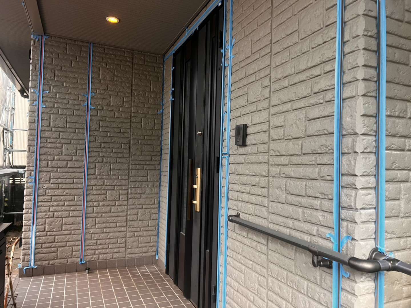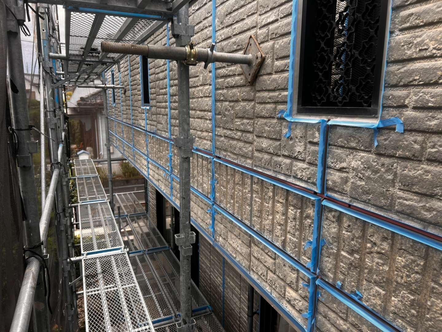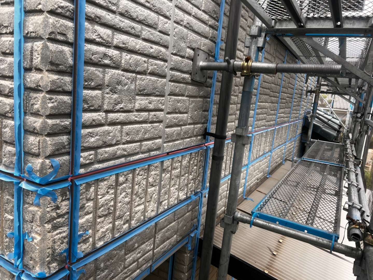 T様邸の昨日の作業は、コーキング(シーリング)打替えの旧シーリング材撤去後のテープ養生作業を行っていました。