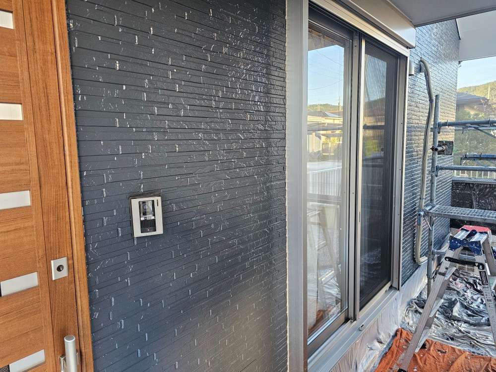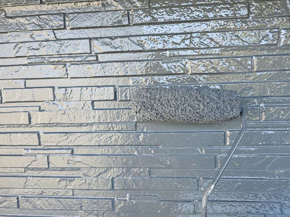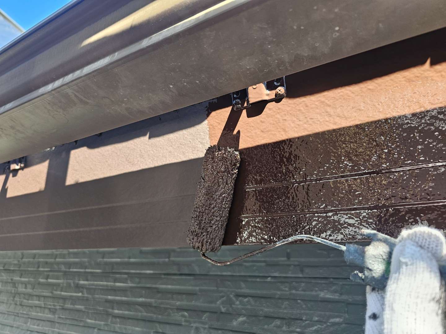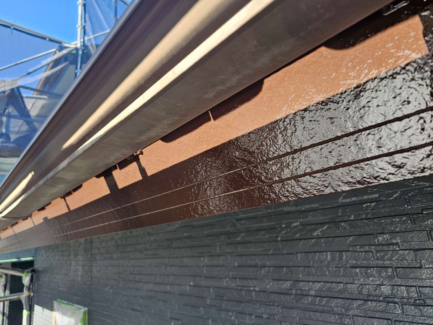 O様邸の昨日の作業は、外壁の上塗り塗装作業と破風板・鼻隠し板の上塗り1回目塗装作業を行いました。