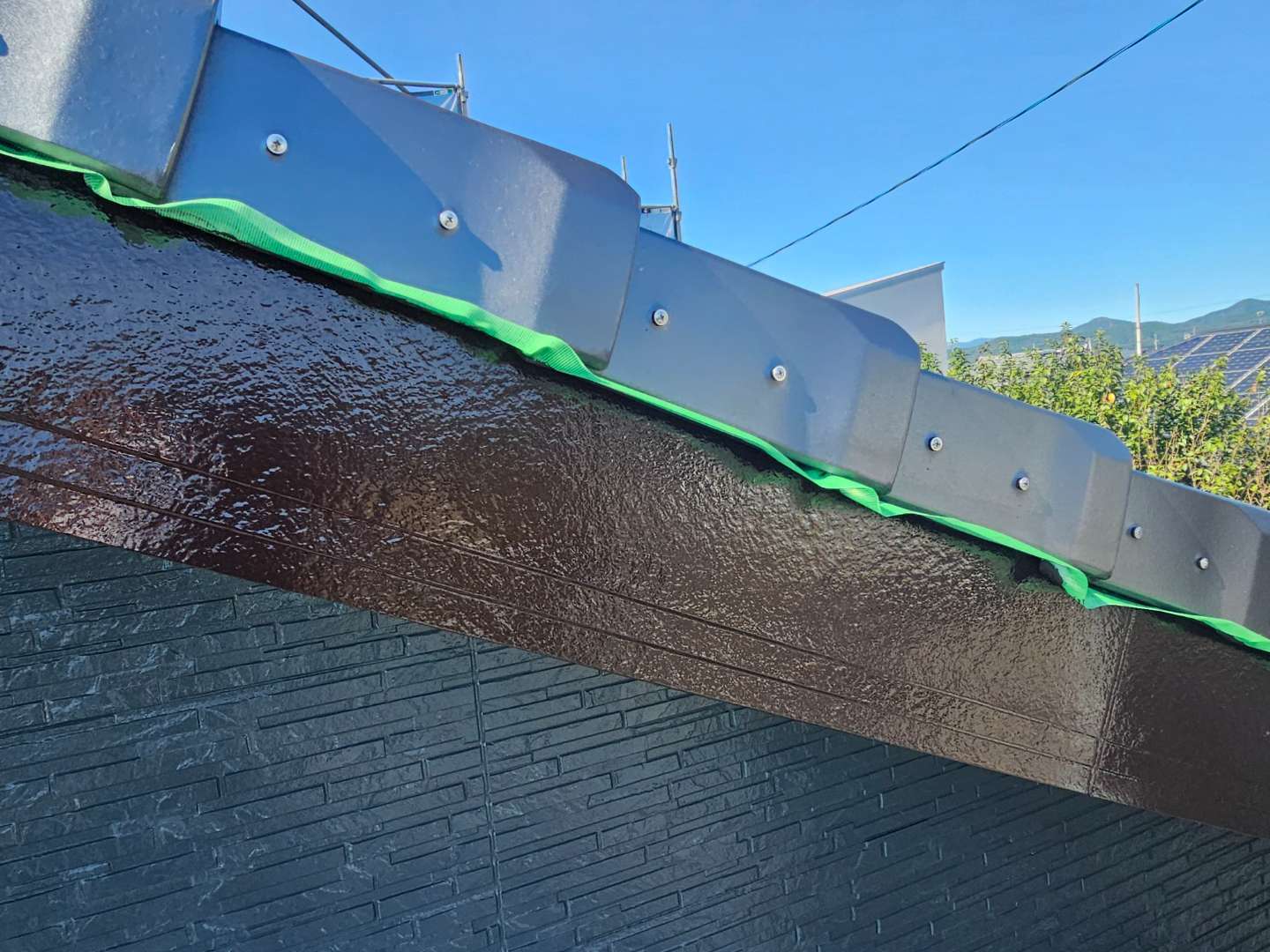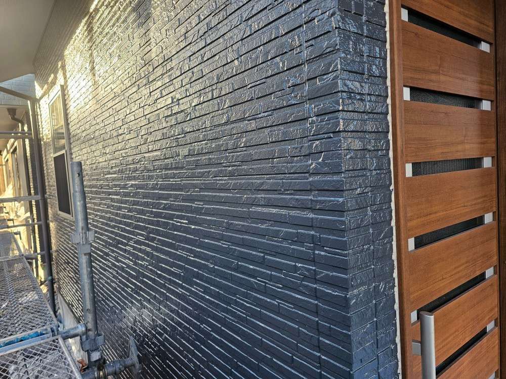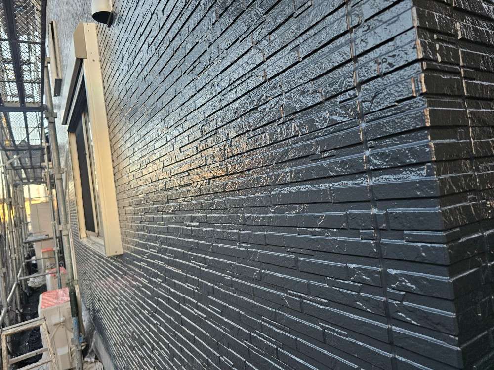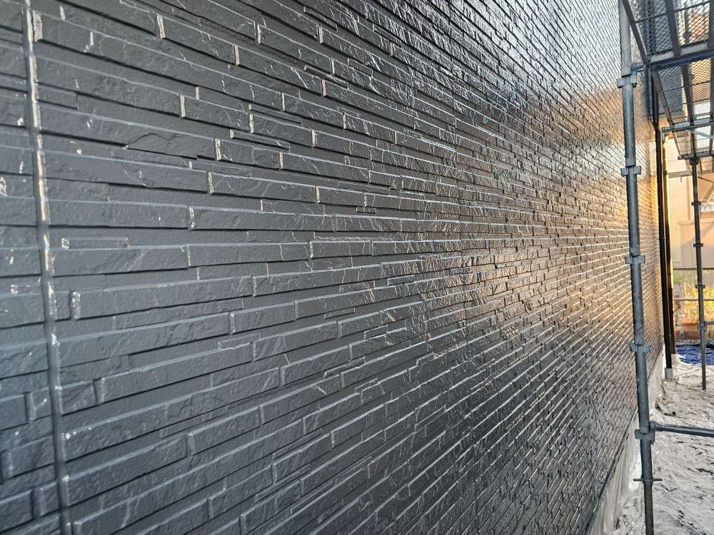 O様邸の昨日の作業は、外壁の上塗り塗装作業と破風板・鼻隠し板の上塗り1回目塗装作業を行いました。
