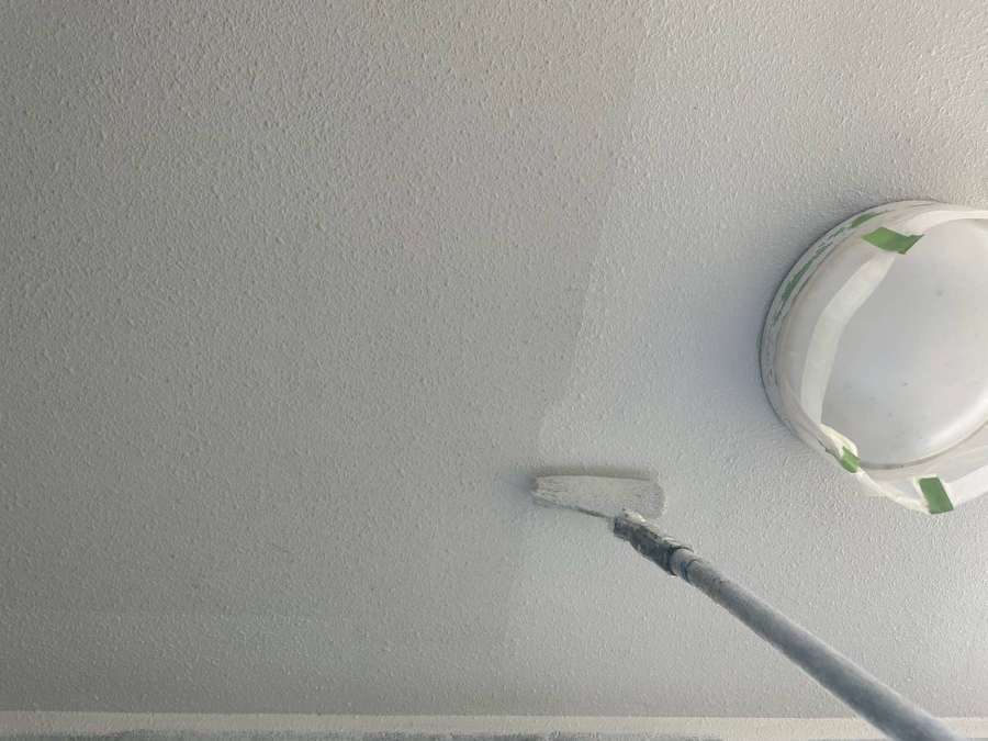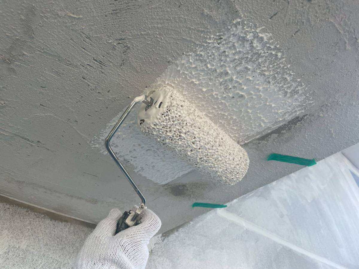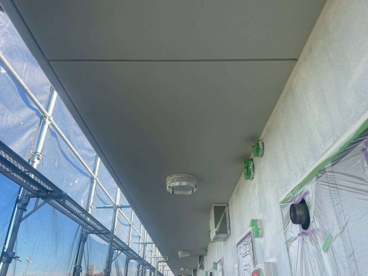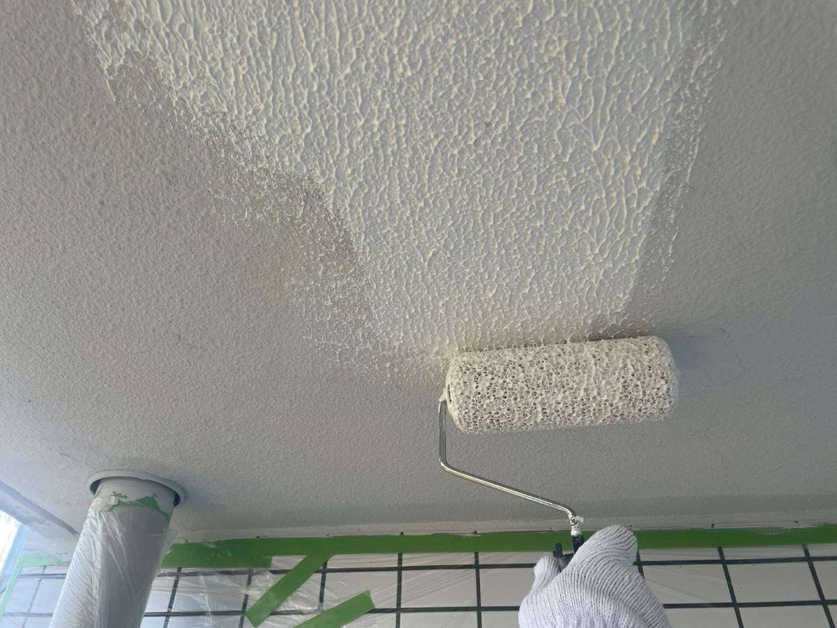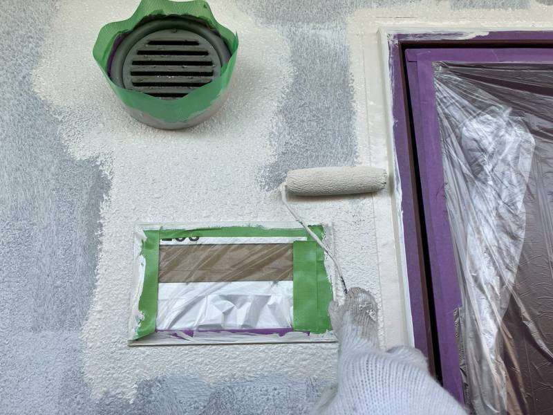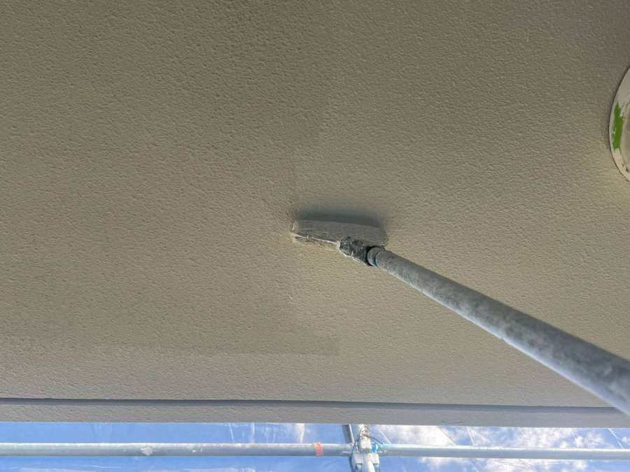 軒天上塗り1回目塗装作業
