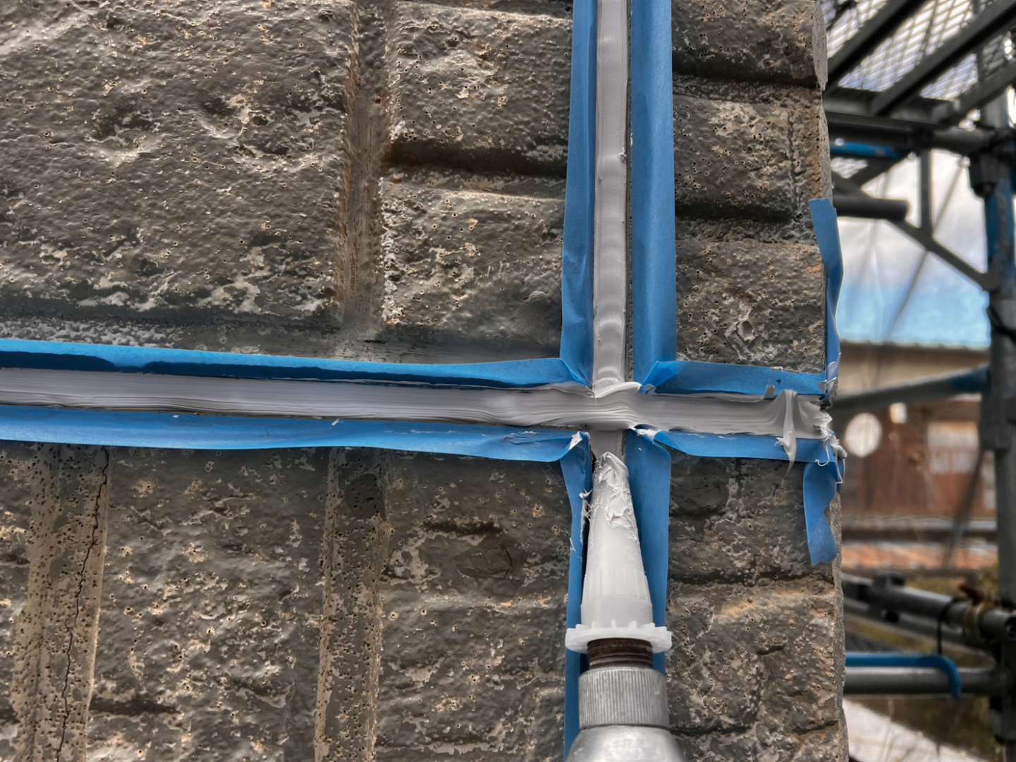 春日井市のT様邸の昨日の作業は、目地コーキング(シーリング)打替え作業を行っています。