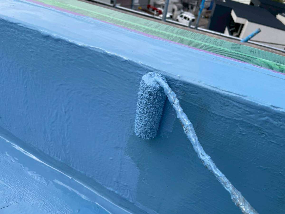立上り部ウレタン樹脂2層目塗装作業