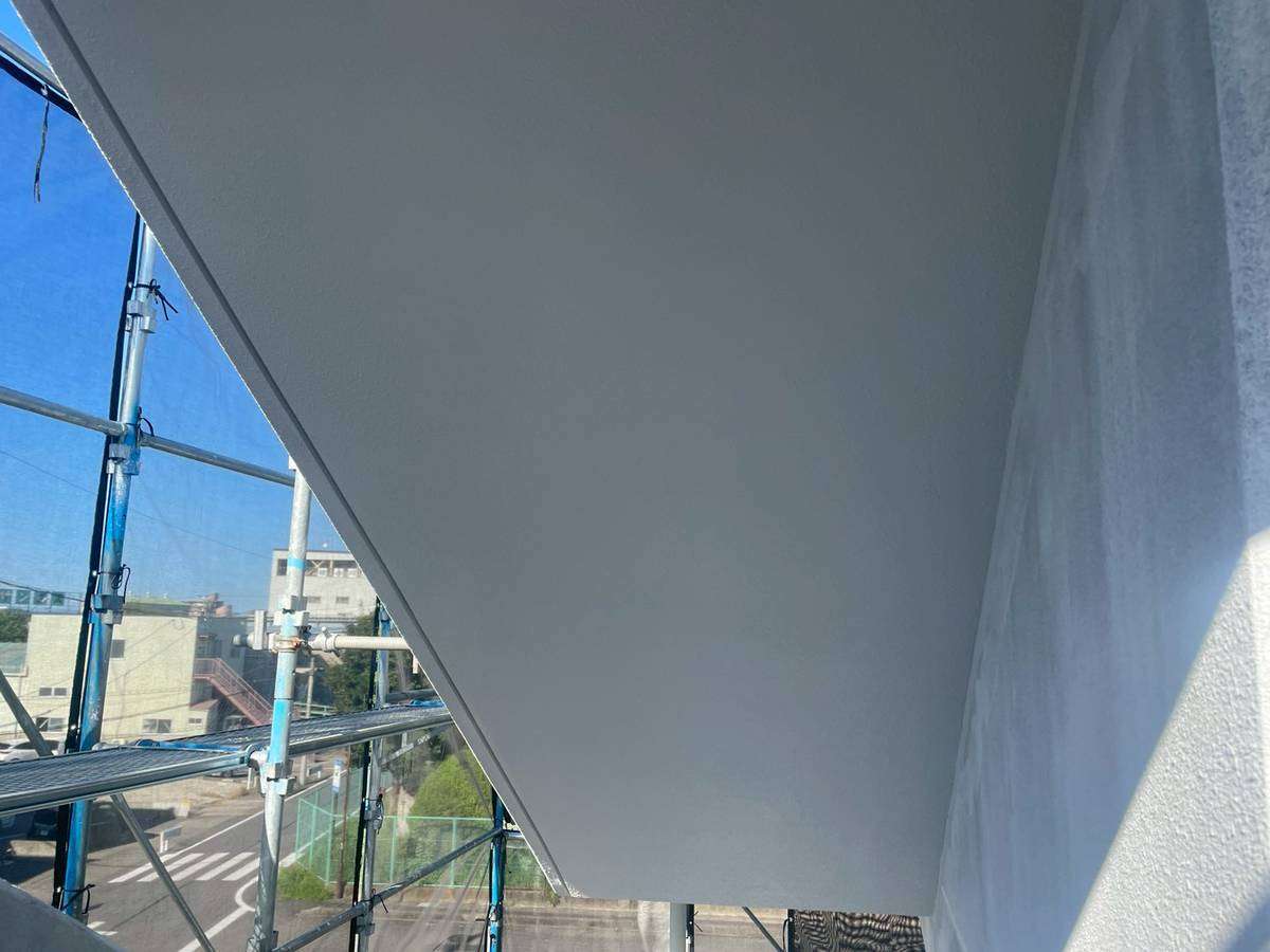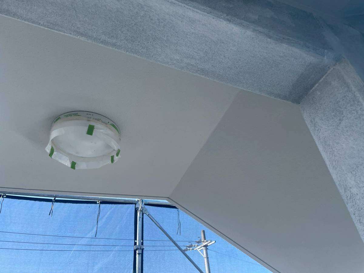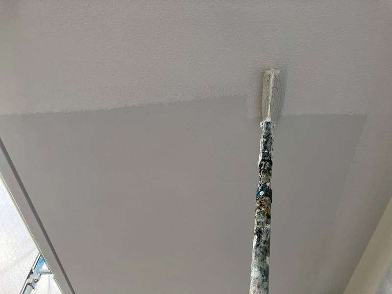 通路・階段軒天2回目塗装作業