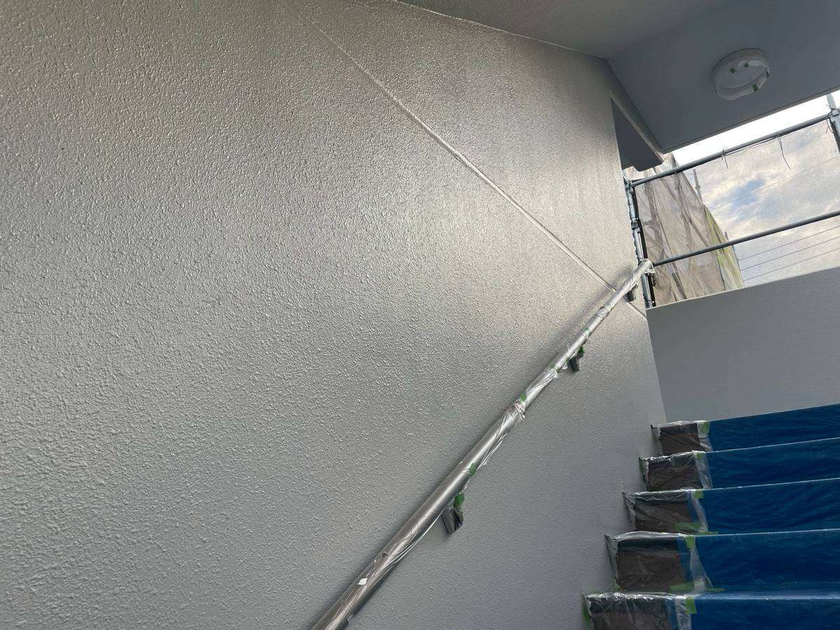通路・階段部中塗り塗装作業