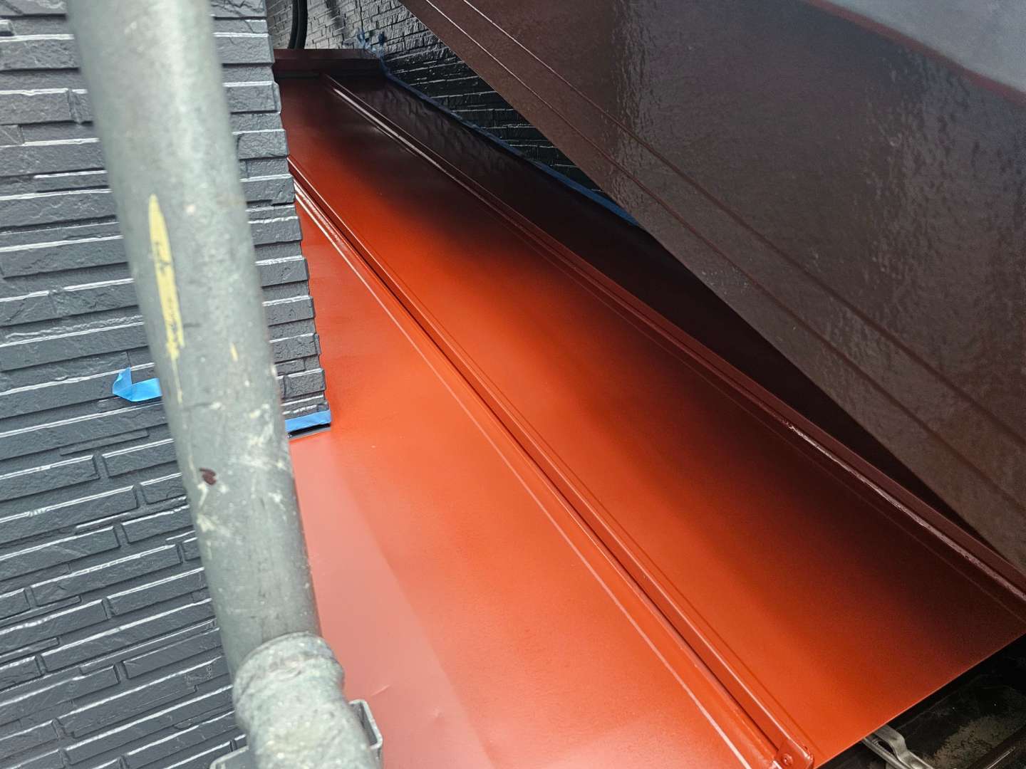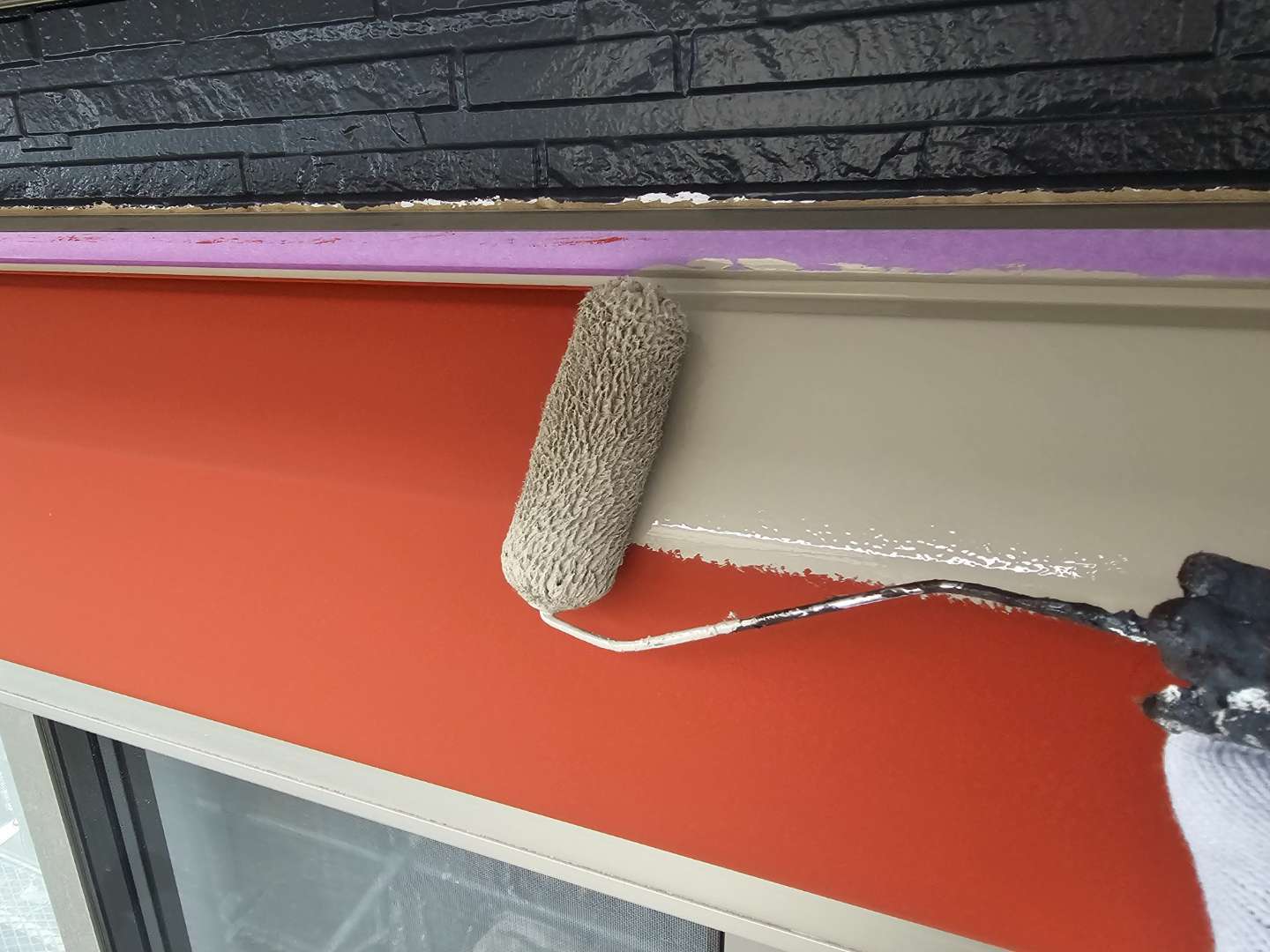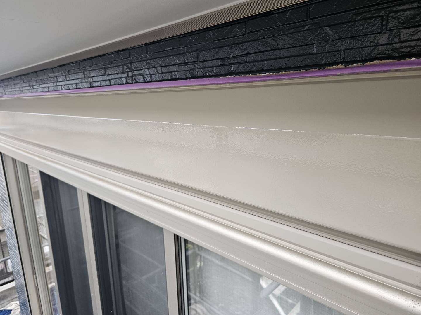 O様邸の作業は、板金屋根の下塗り塗装・付帯部塗装でシャッターボックスの上塗り1回目2回目塗装作業まで進んでいます!